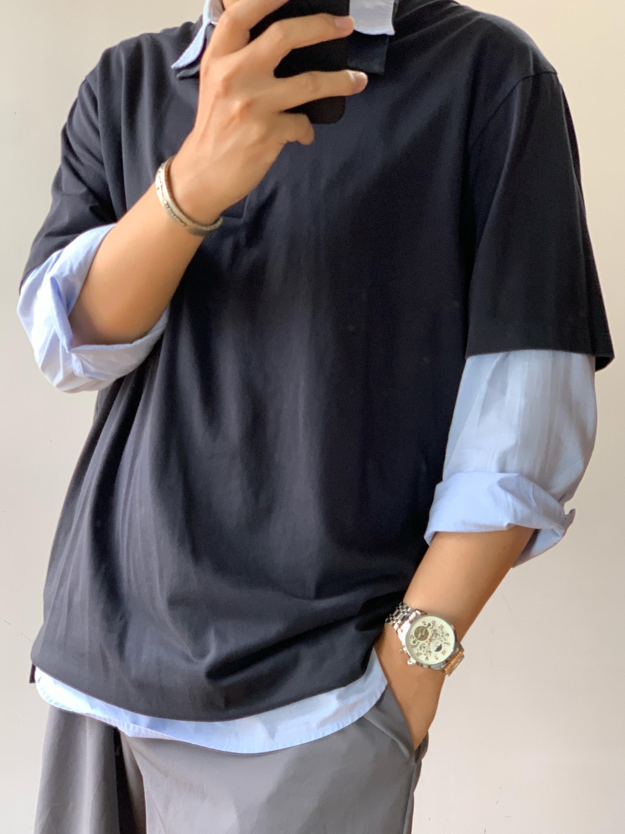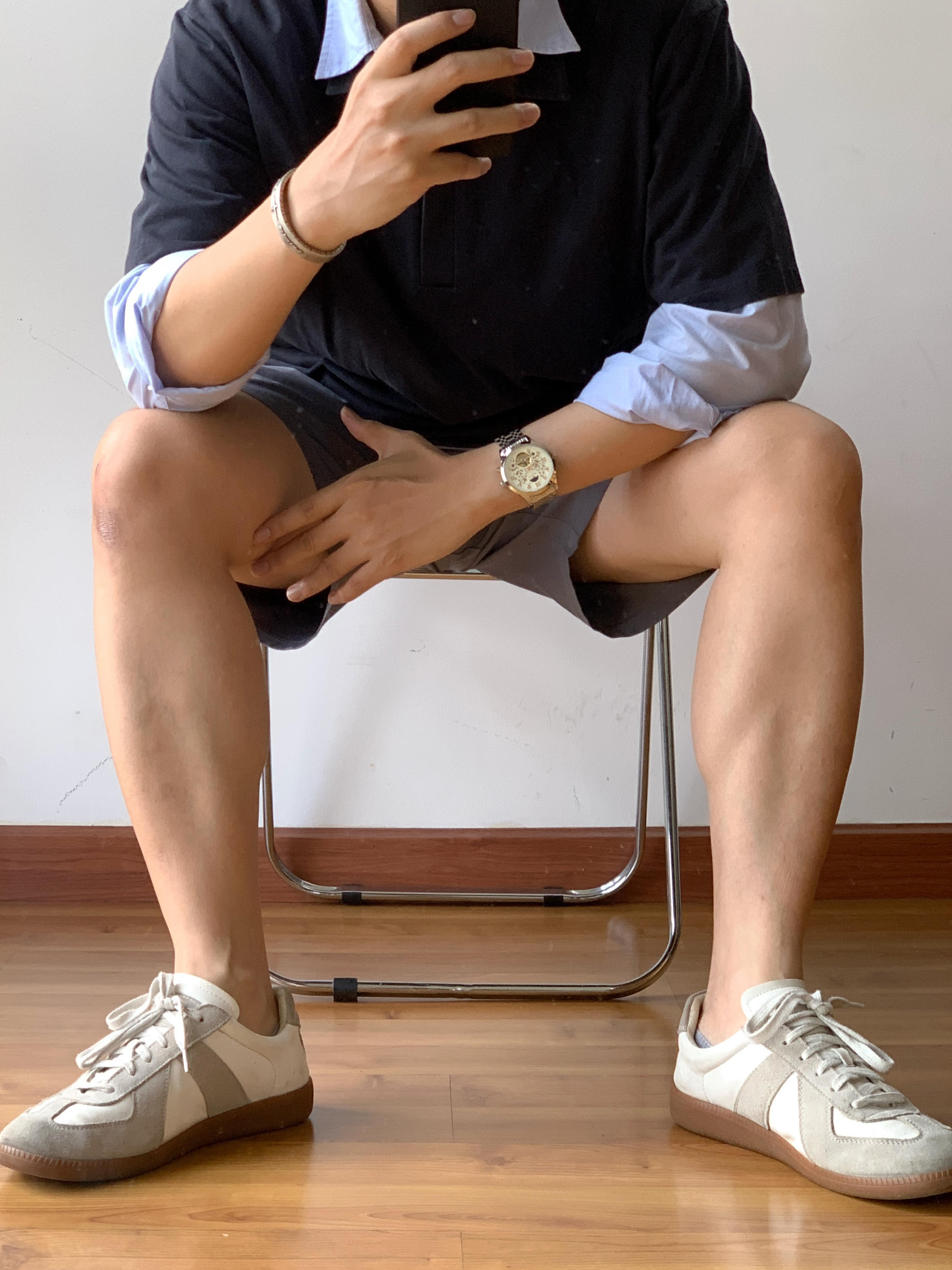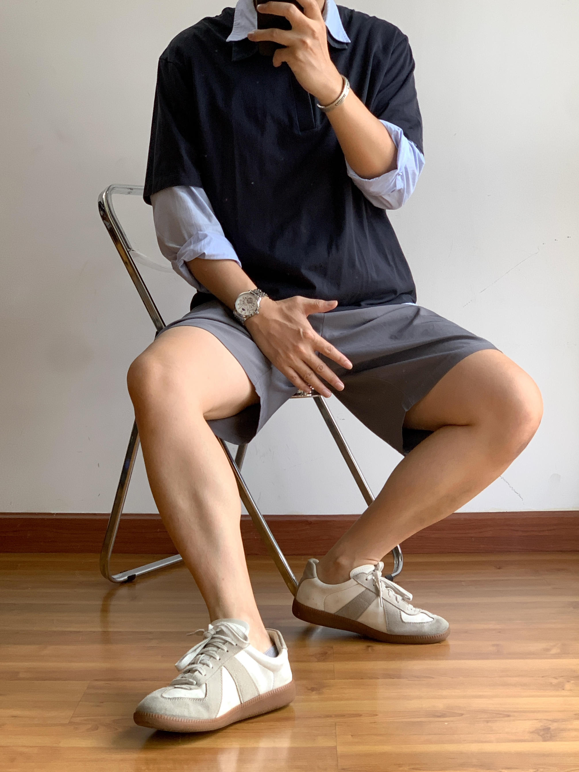 嘿😎,家人们!今天我来给大家分享一下我的高智感 miumiu 风穿搭。咱就是说,浅蓝衬衫👕叠穿藏蓝 POLO 衫,这搭配简直绝绝子👏。蓝色系的碰撞,让我感觉自己瞬间化身韩剧男主,主打一个气质拿捏得死死的😏。下半身一条深灰色短裤🩳,简约又时尚。这短裤的版型超赞,显腿长那是杠杠的。再看看我的鞋子,马吉拉德训鞋👟,这可是我的时尚利器。穿上它,走路都带风🚶♀,感觉自己能去走秀了。咱这一身穿搭,走在街上,...