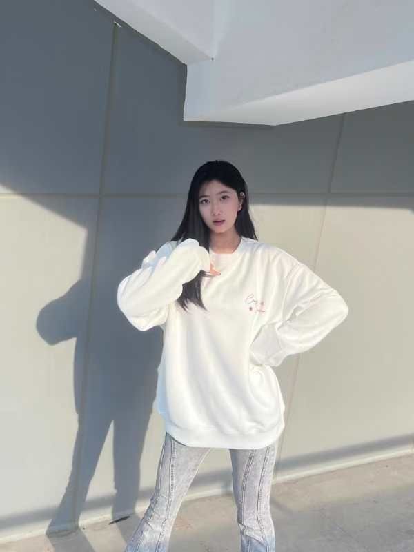 哈喽美女们。这件卫衣宽宽大大的穿起来舒适,版型好看🌸 过两天天气凉了穿它正好, 好看又百搭,休闲又出片儿