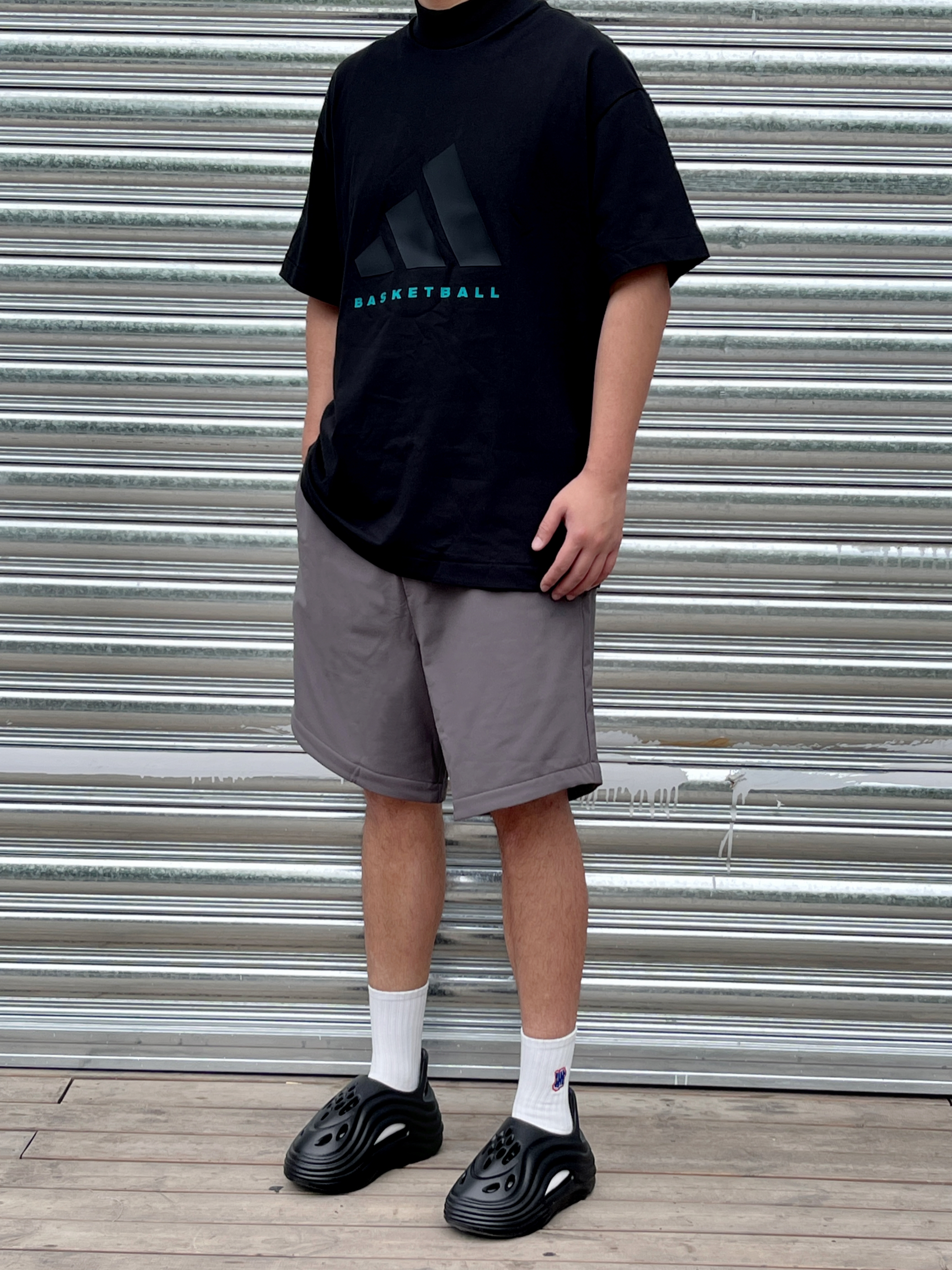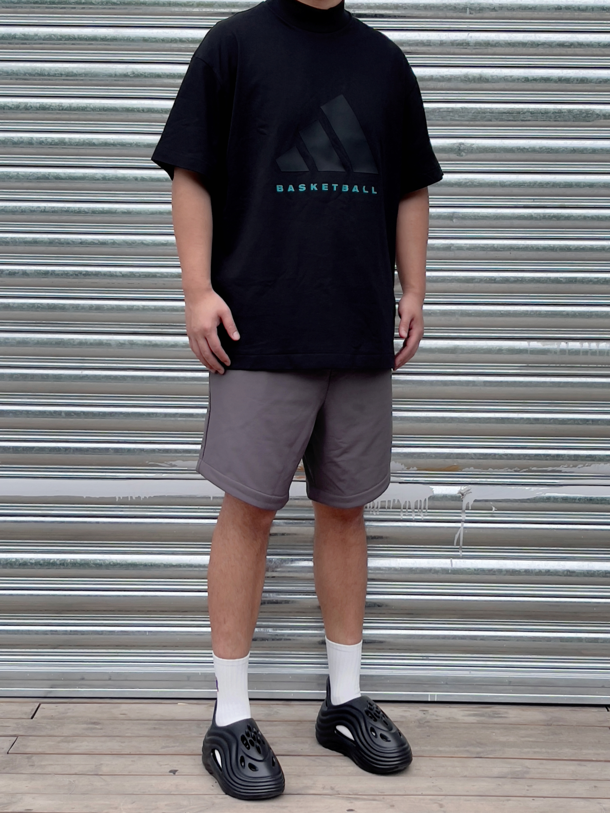 今日份ootd分享 👔 黑色阿迪短袖T恤 半高领设计 上身挺括有型 🩳 炭灰色短裤 不过膝版型显腿长 简约宽松 👟 亚束 外星人系列镂空洞洞鞋 百搭配色 踩屎感很强很软弹 尺码偏小 建议大一码即可✔️