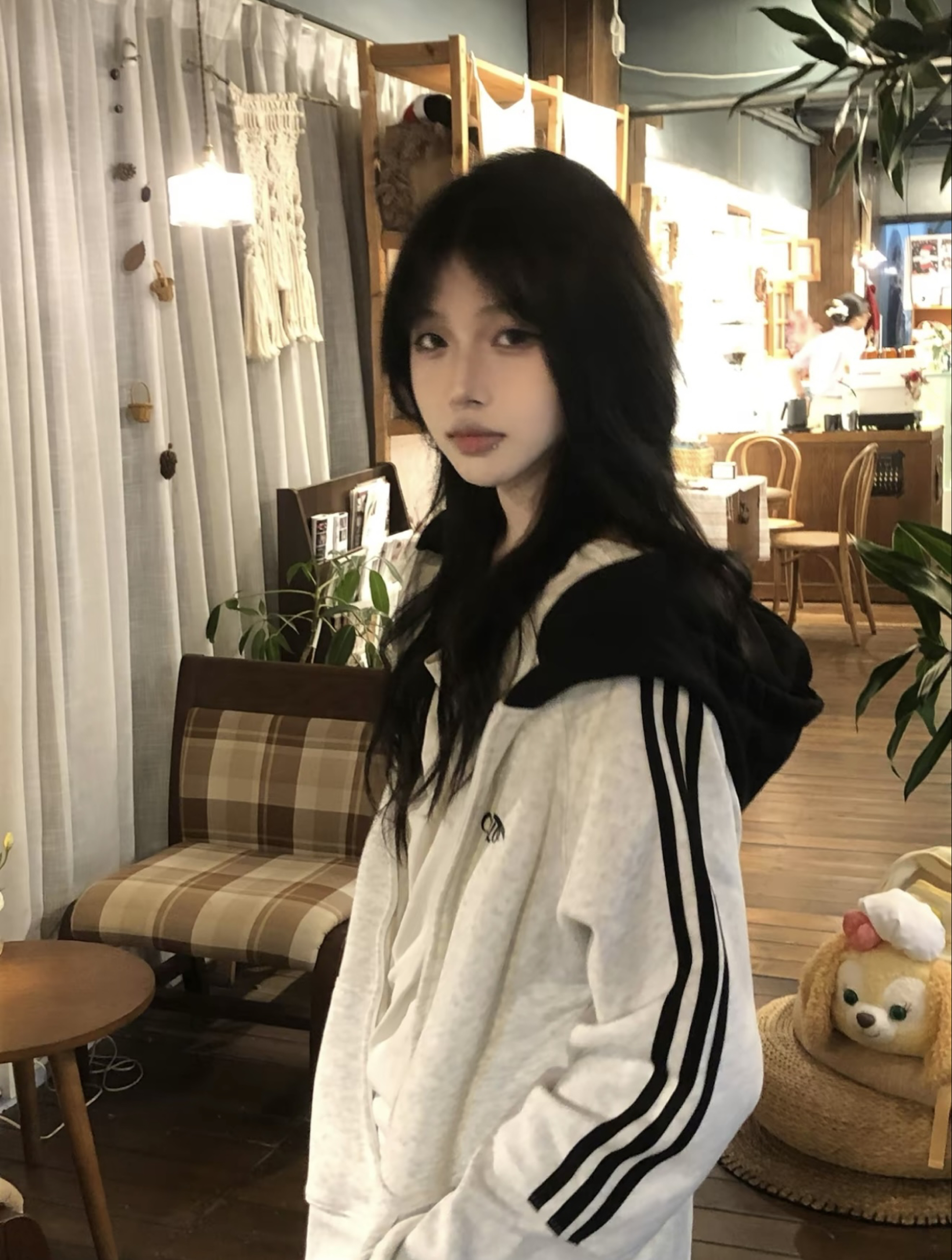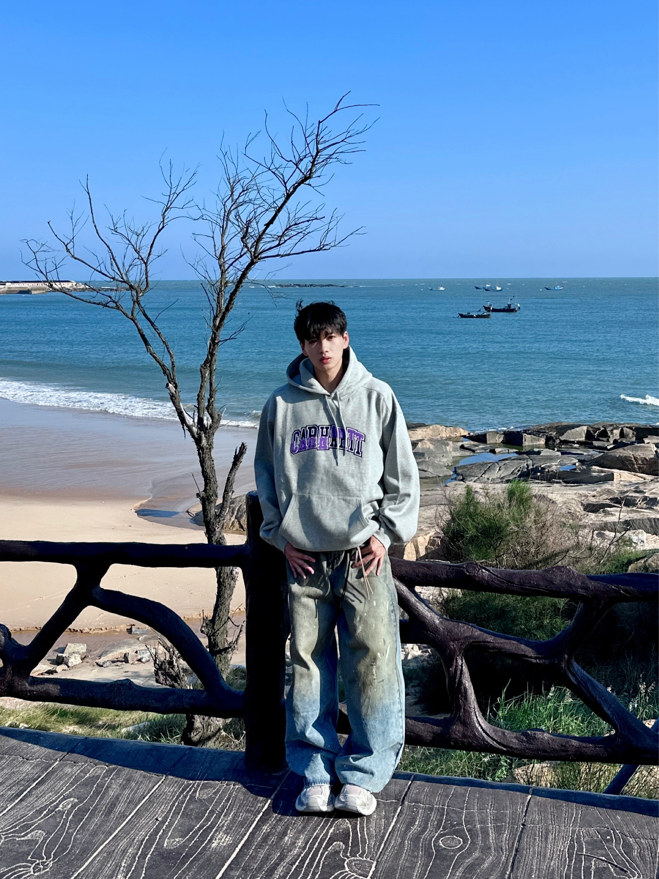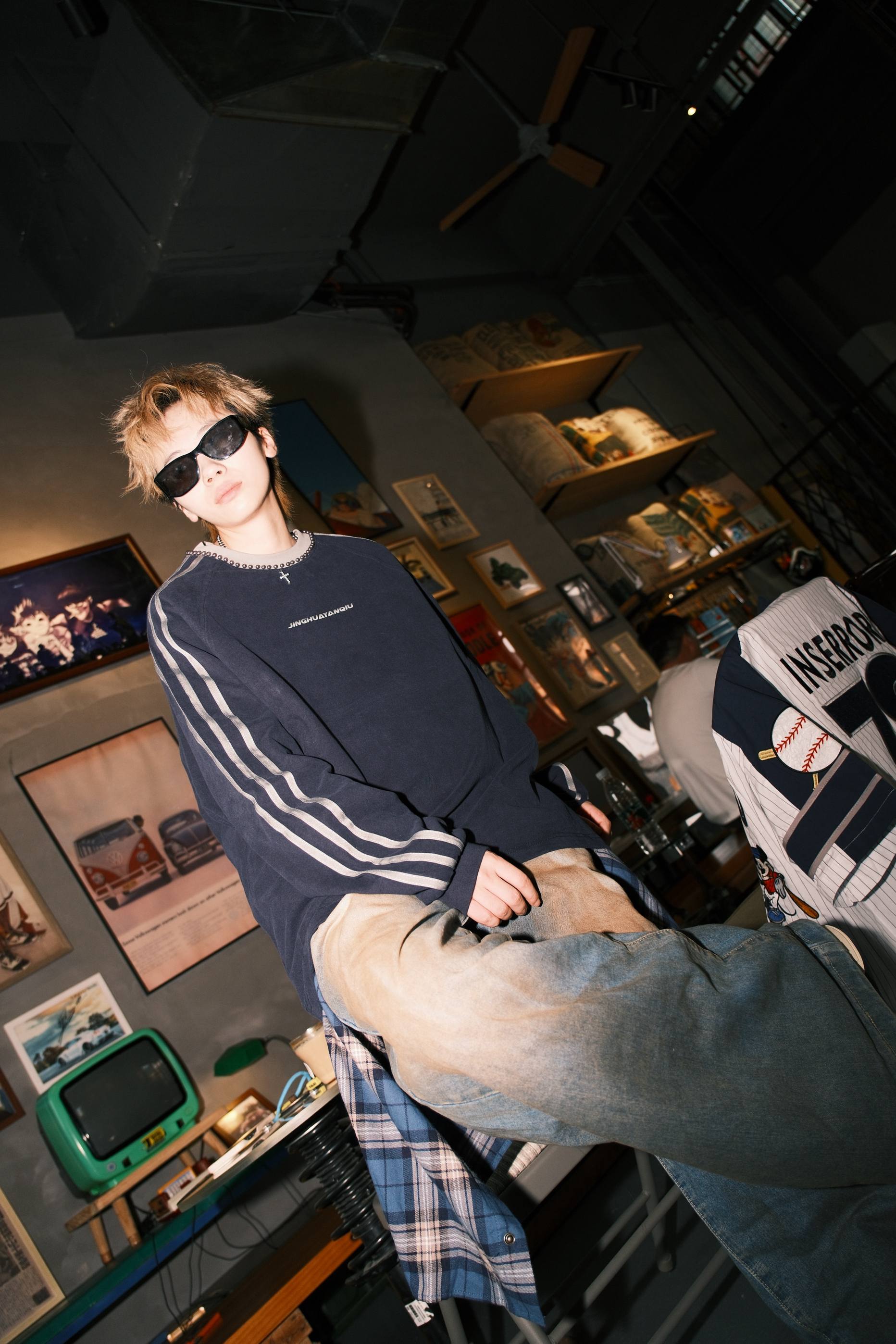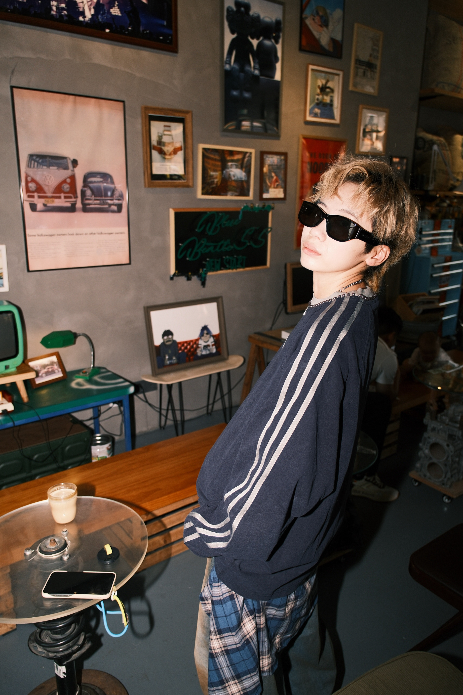 平时不爱喝美式☕,穿搭必须整美式风 今天上身一件藏青色长袖T恤 袖子的三条杠设计,就有点复古运动风 领口处加了串珠项链的小细节 省去了配饰的烦恼 下身搭配一条做旧的阔腿牛仔裤 黄色的锈迹,蛮有美式街头感那个味道 最后来一双Ro匡威联名的板鞋 👕: JHYQ 尺码参考:163cm/45kg 上身S码