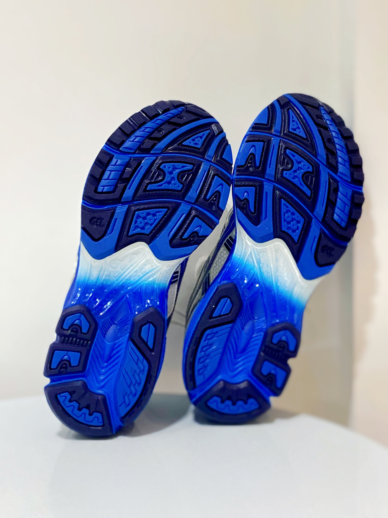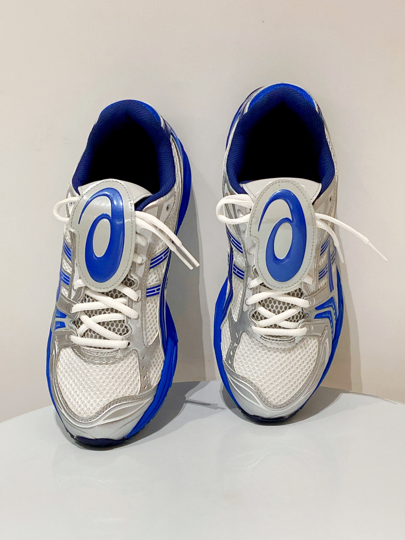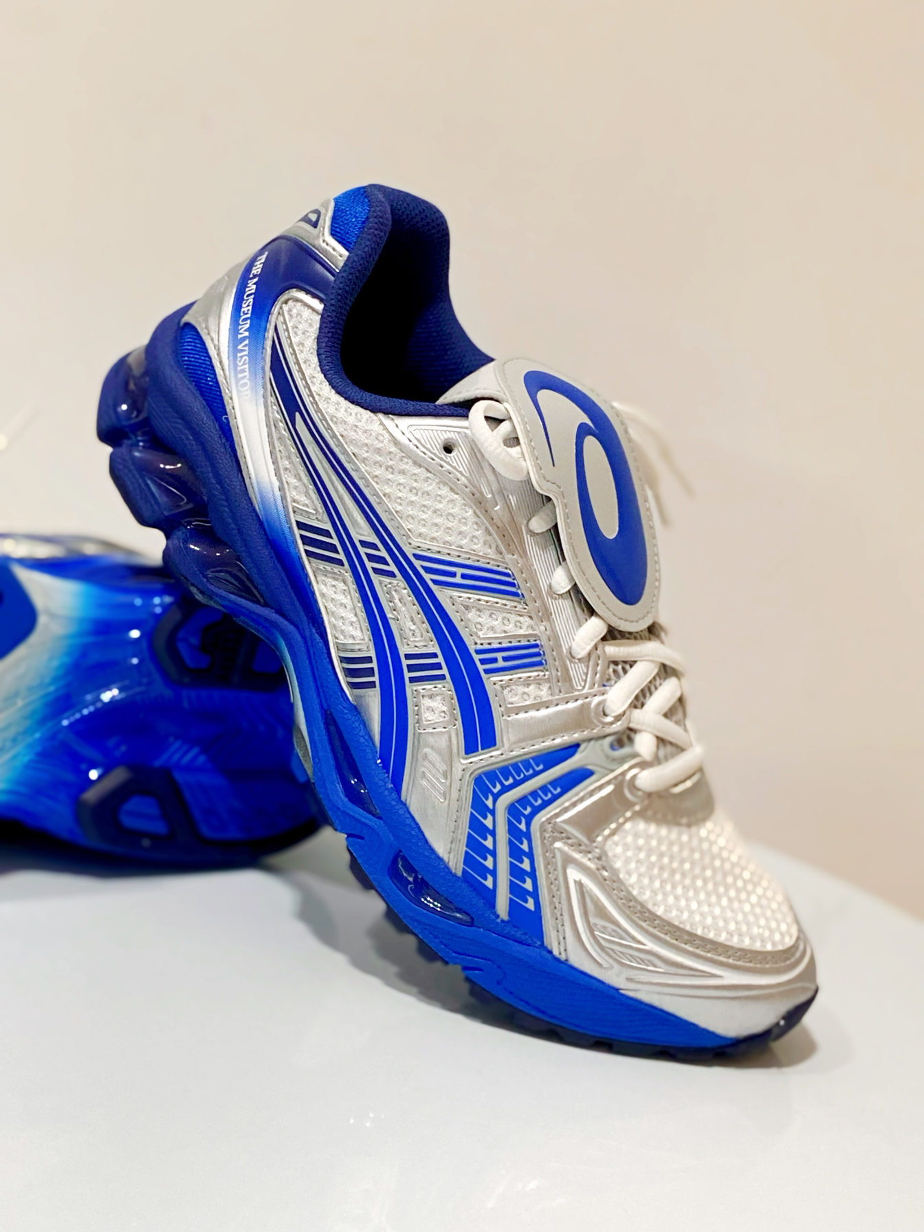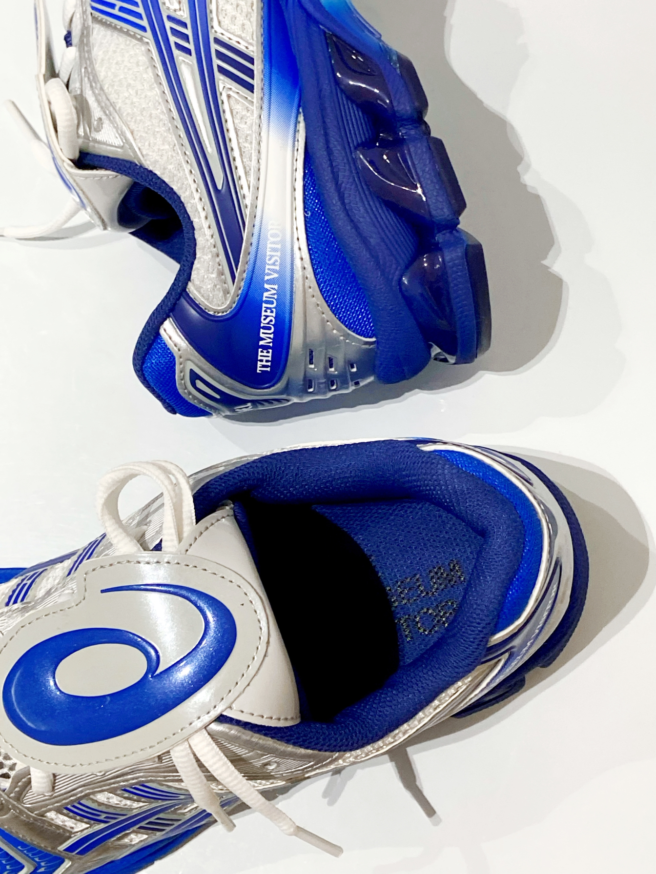 这是 ASICS 和 THE MUSEUM VISITOR 的首个联名 总共有三个配色,我入手的这款是白蓝 鞋面白色为主,搭配银色和蓝色细节 侧面和鞋底的渐变处理 让整双鞋足够惊艳 ! 鞋盒也是渐变设计 还带了一个鞋盖,正面大大的 a 字 LOGO 不过不能拆掉 Kayano 14 的脚感自然不用多说啦 !