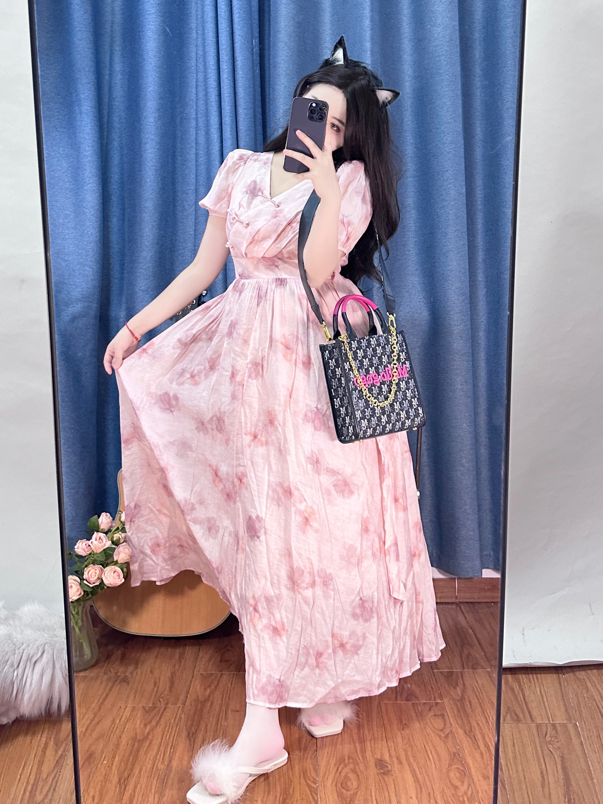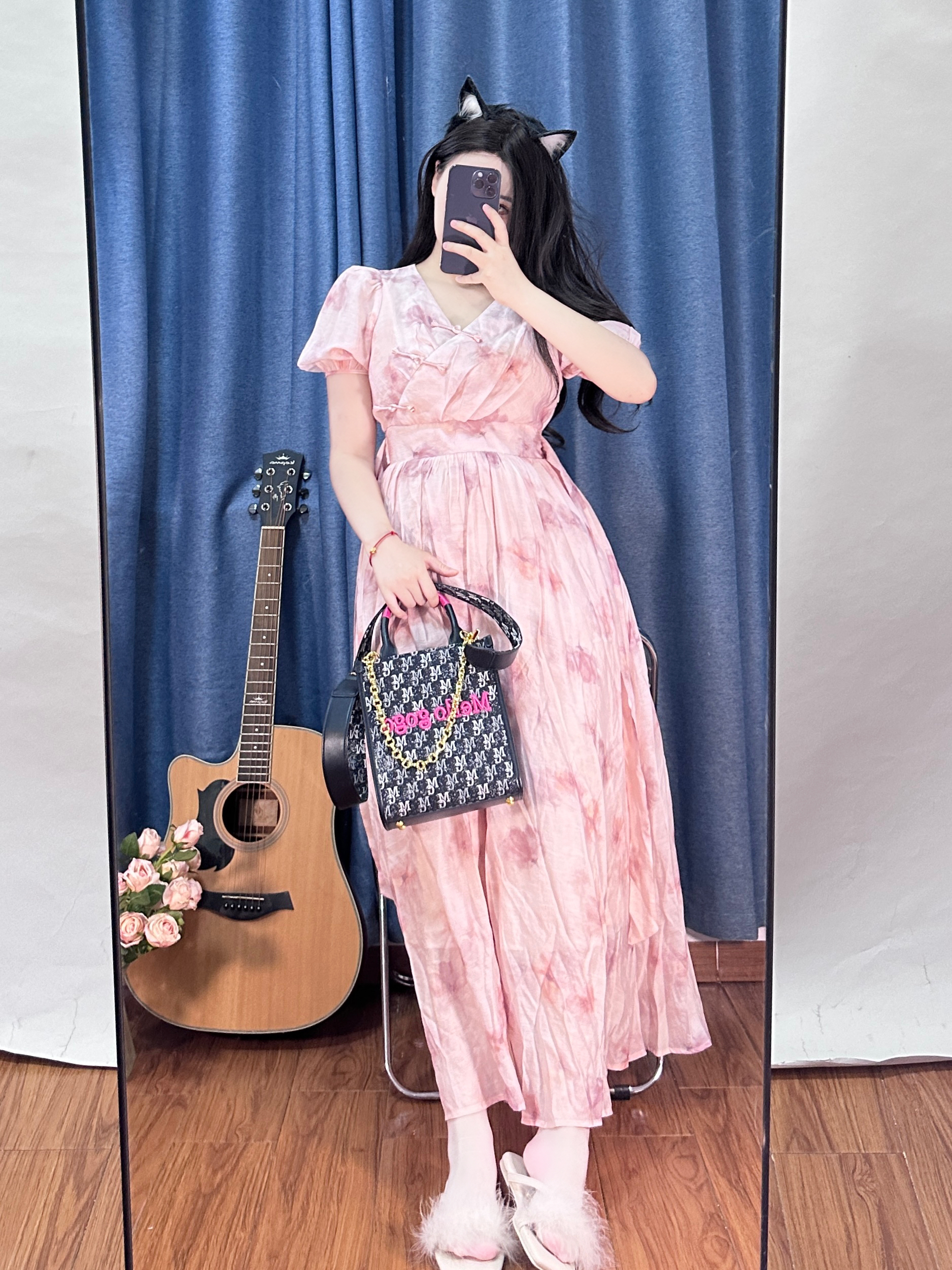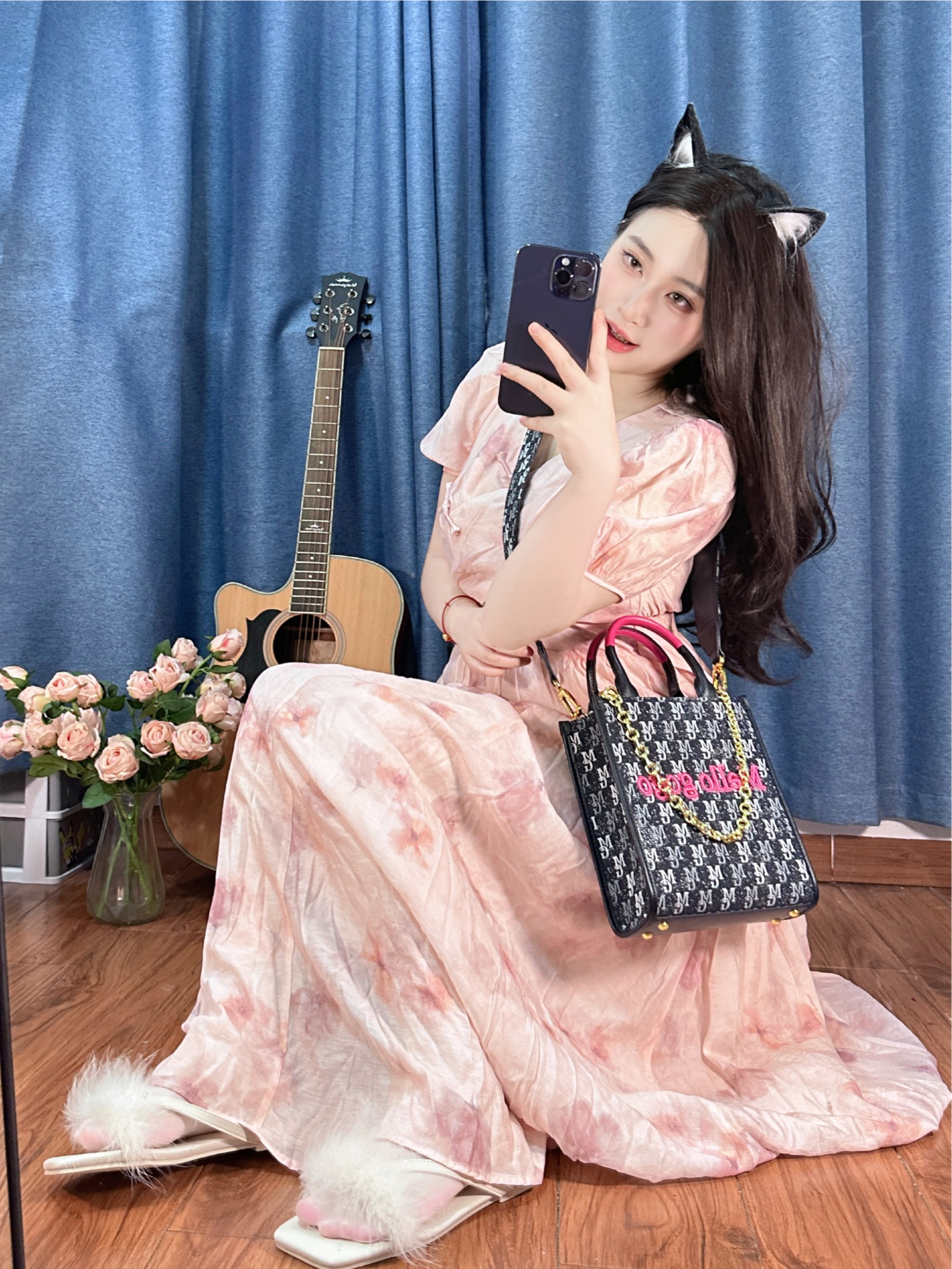 今天Kiki穿这条粉色的连衣裙👗 下面搭配一个羽毛人字拖鞋 ,开学这样穿温柔又大气,感觉再搭配上这个的黑玫配色包包hin不错哦 平时搭配这个大小的包包,小巧又便捷 容量也是够的 而且可以斜挎单肩和手提 平时斜挎着背hin舒服方便呦。 复古感的老花满印图案加上这个经典的玫红色的logo,又酷又甜的感觉😝