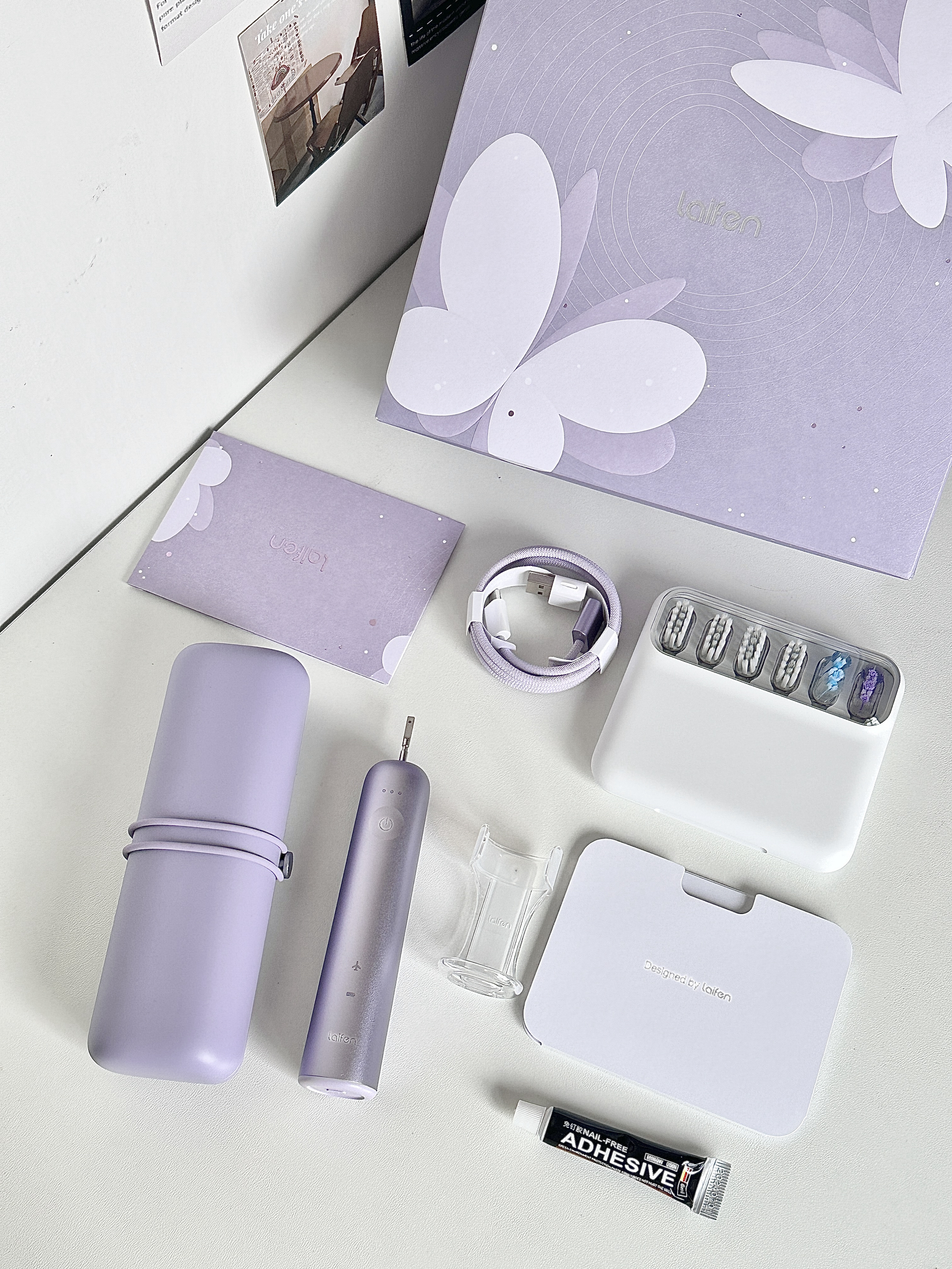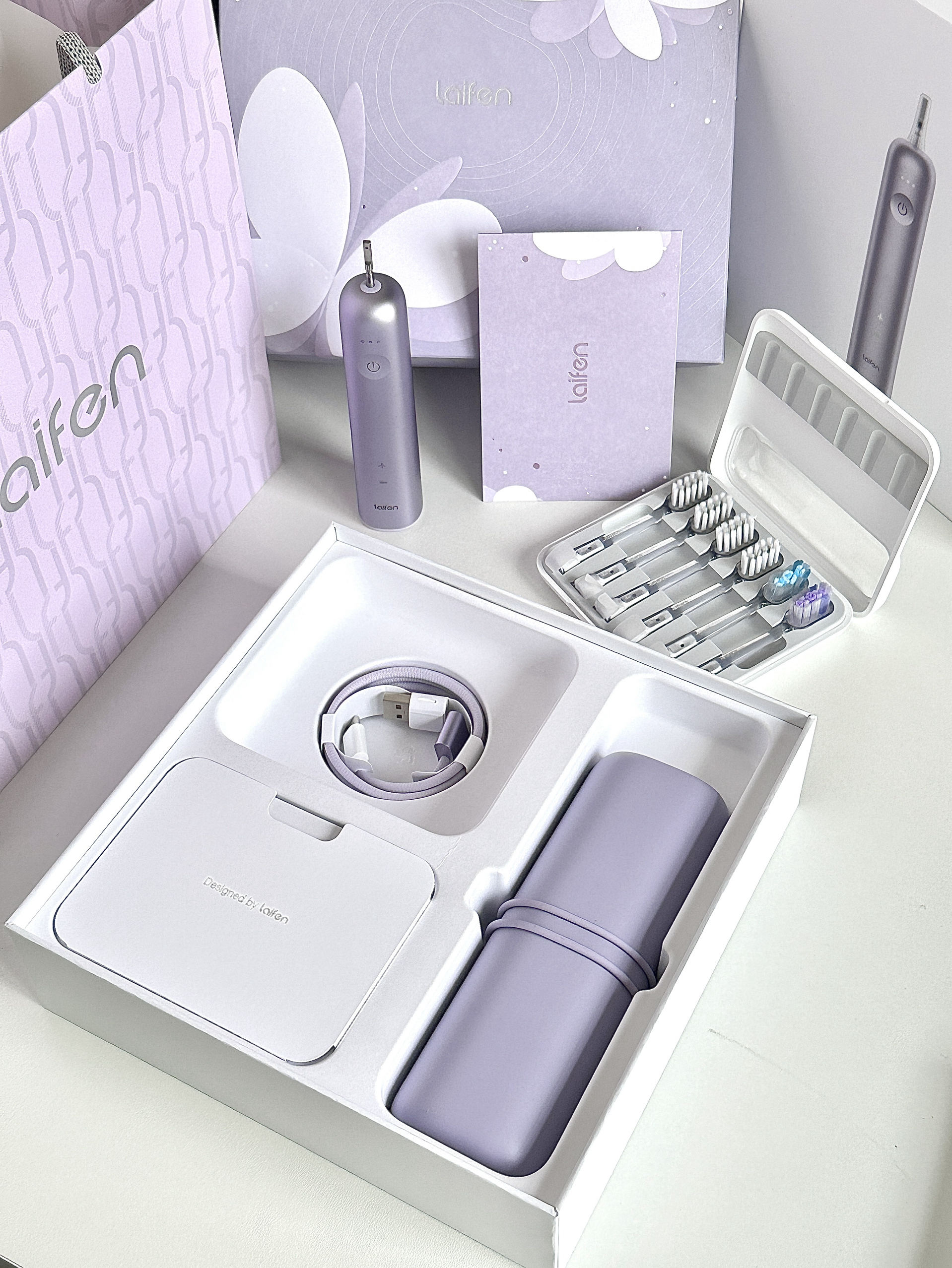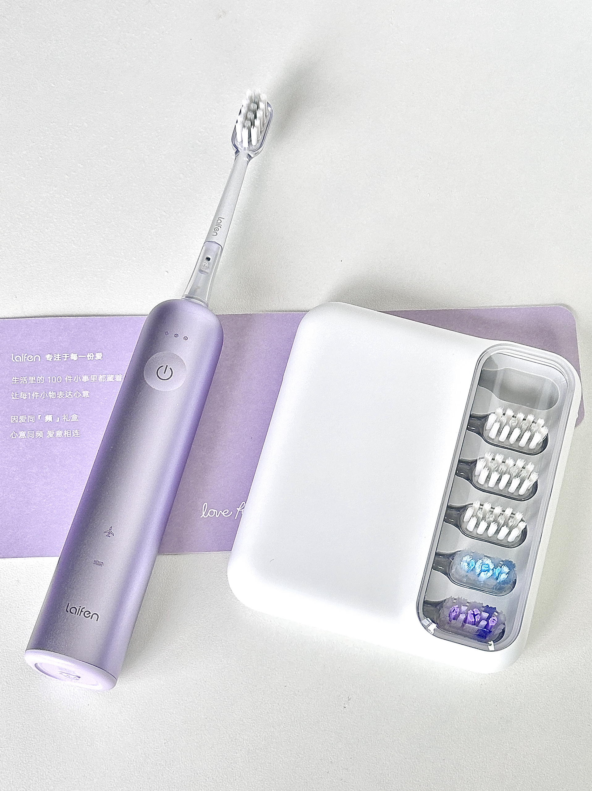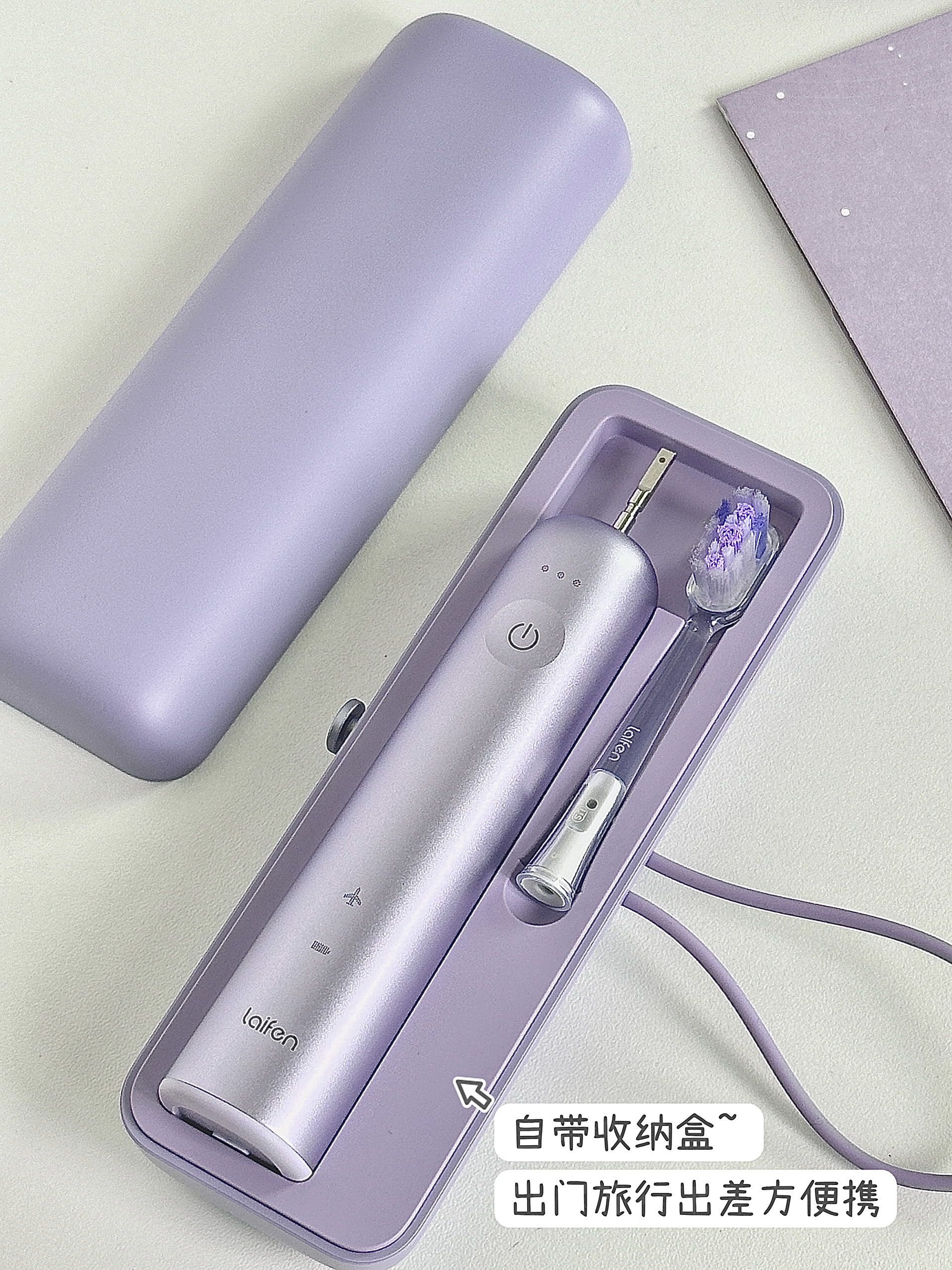 马上就要开学啦啦~ 你们准备好礼物了吗 我觉得我新买的Laifen因爱同频牙刷礼盒 敲适合当礼物 这个是新出的仙女浪漫紫色 是真的好看…… 我觉得整体颜值好高~~ 新的礼盒的牙刷替换头有防尘收纳盒 而且替换头有6支 我觉得可以用好久好久了 💜还送了一个紫色的便携收纳盒~ 我出差旅游之类的就带着出门 方便又卫生啦 而且介个紫色滴礼盒还有蝴蝶敲美的! 七夕情人节/纪念日/生日送女生很推荐~