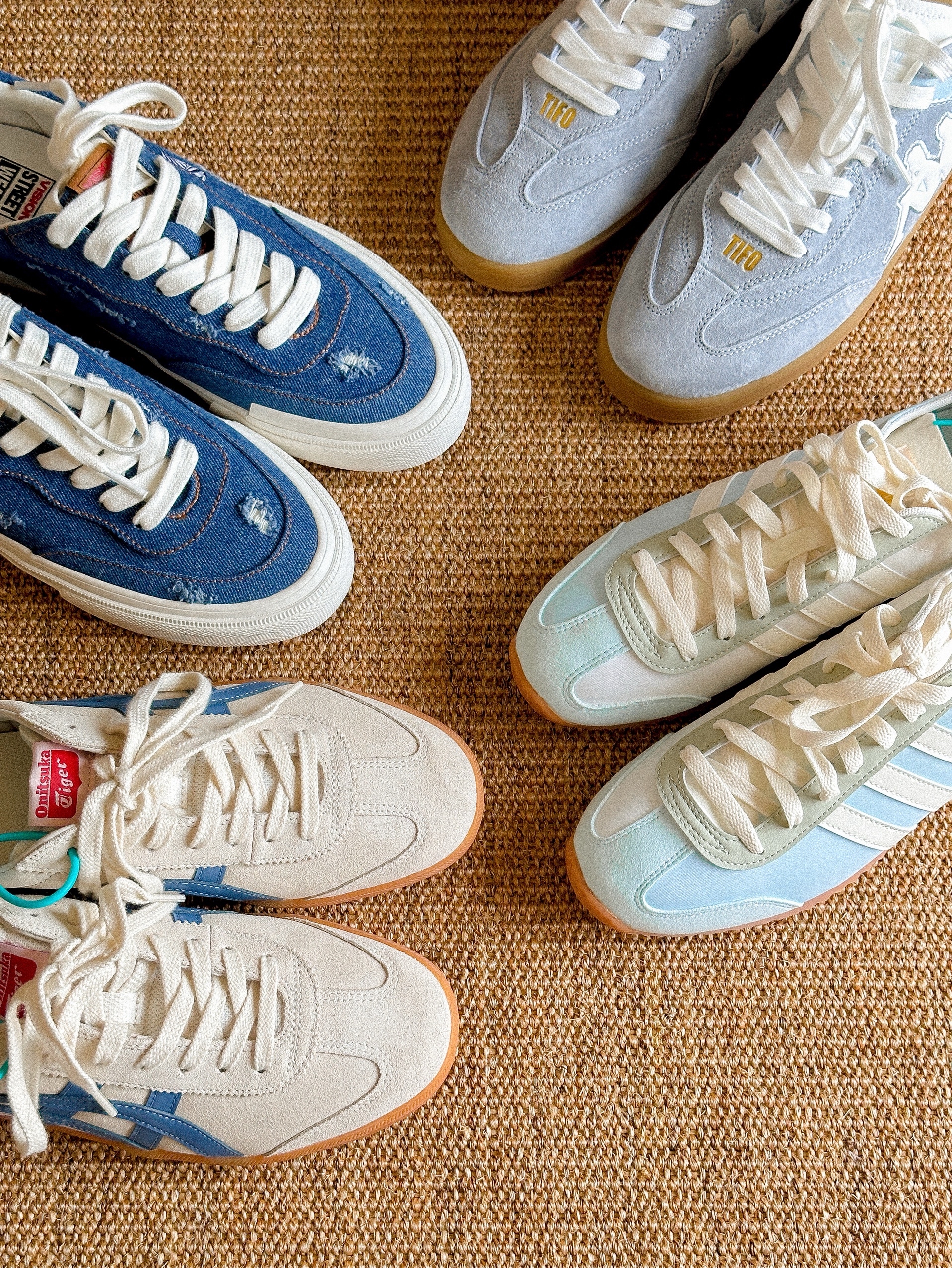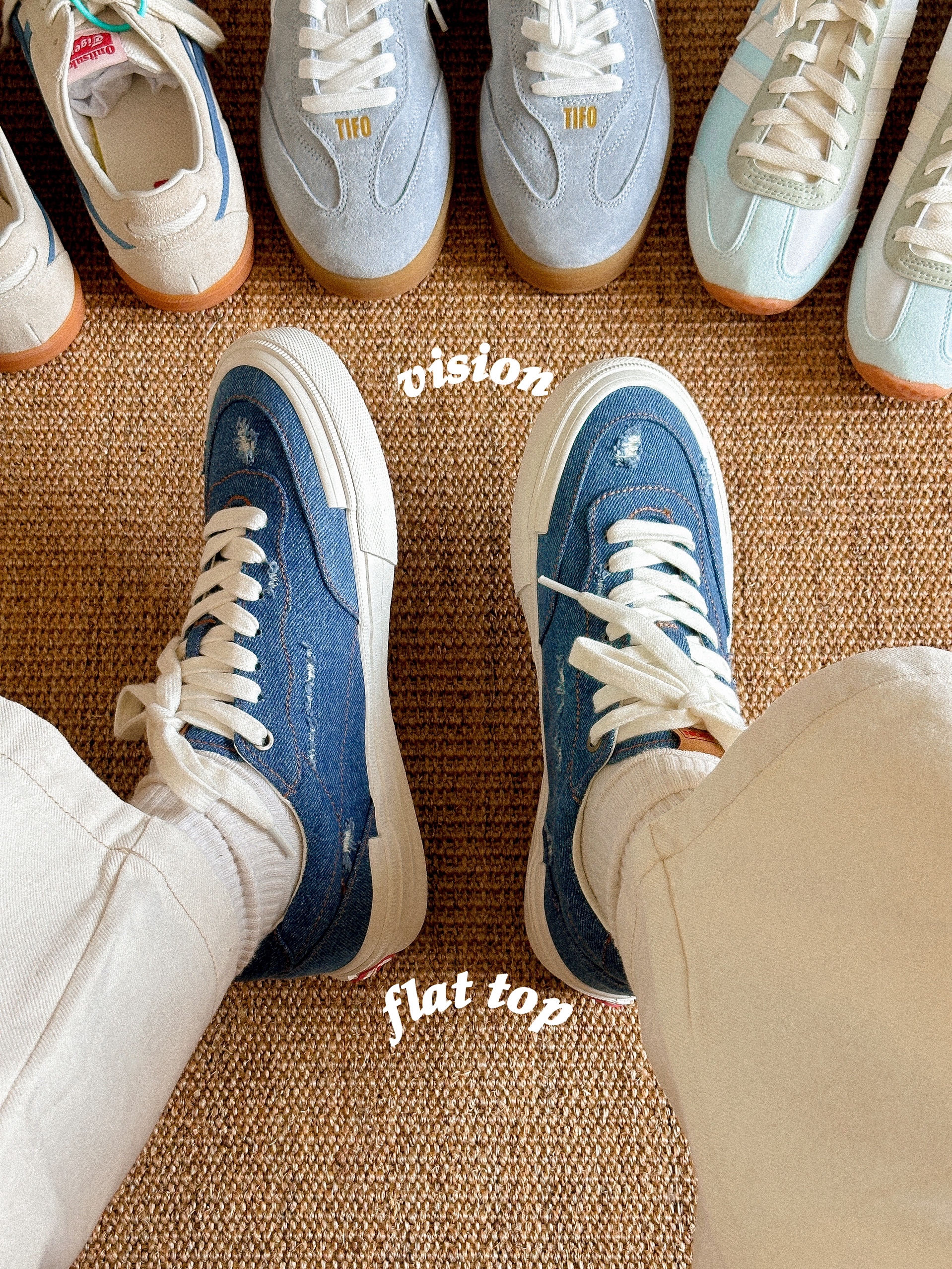 一直很喜欢蓝白配色 不仅配色干净显高级 也在情绪上给我一种稳定感 - 分享4双💙蓝色系通勤板鞋 鬼冢虎tokuten是网面鞋舌穿起来脚背触感很舒服 kappa德训鞋头看上去有点高级,这种蓝色也很特别,接近雾霾蓝的感觉 阿迪vs jog薄到没有重量感,偏日系一点的饱和度 vision牛仔蓝直给了一股不被约束的沉稳感,破洞加分! - 因为肤色偏黑我自己也不愿意穿蓝色系衣服,但还好有好看的蓝色系鞋子