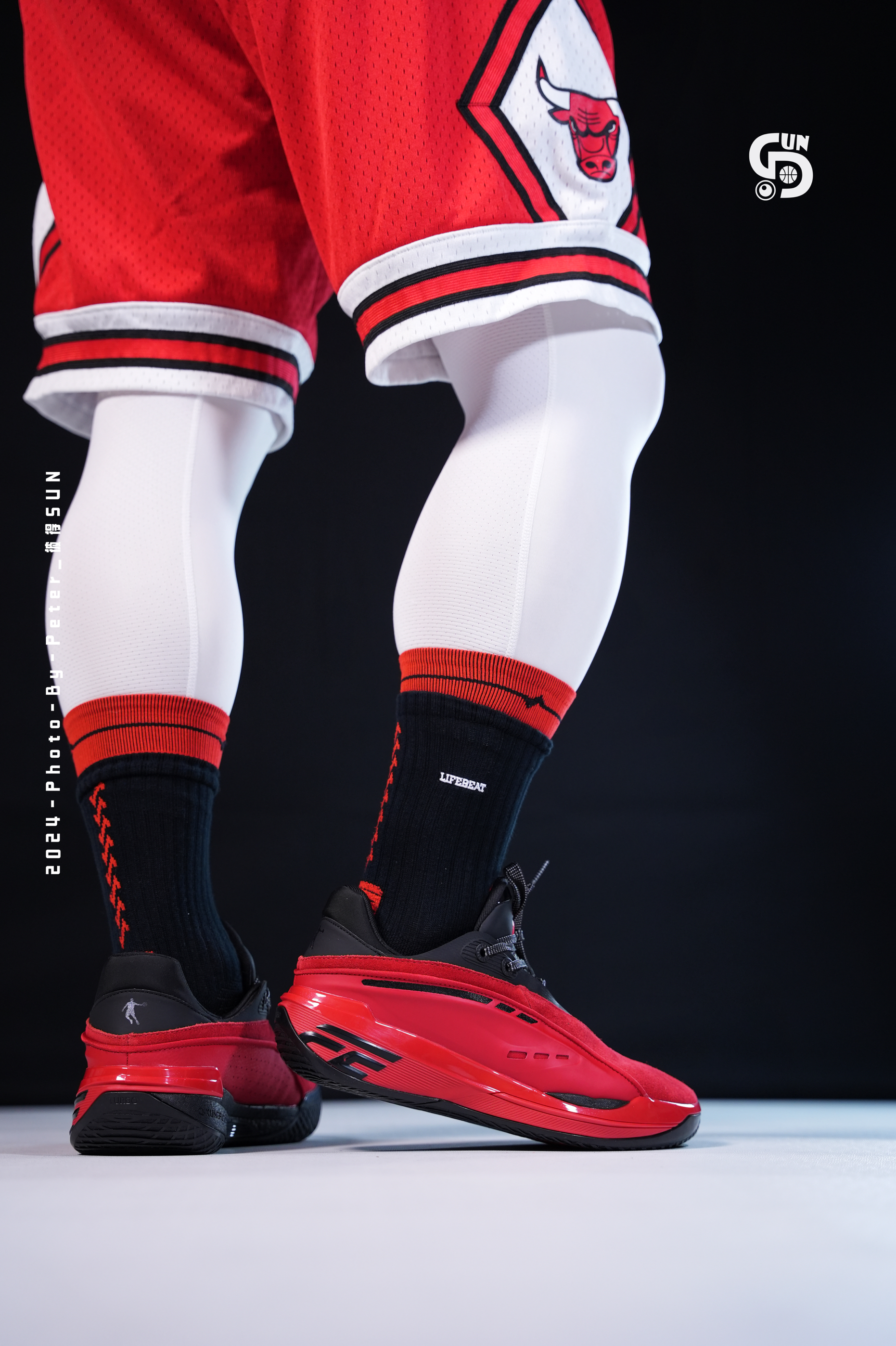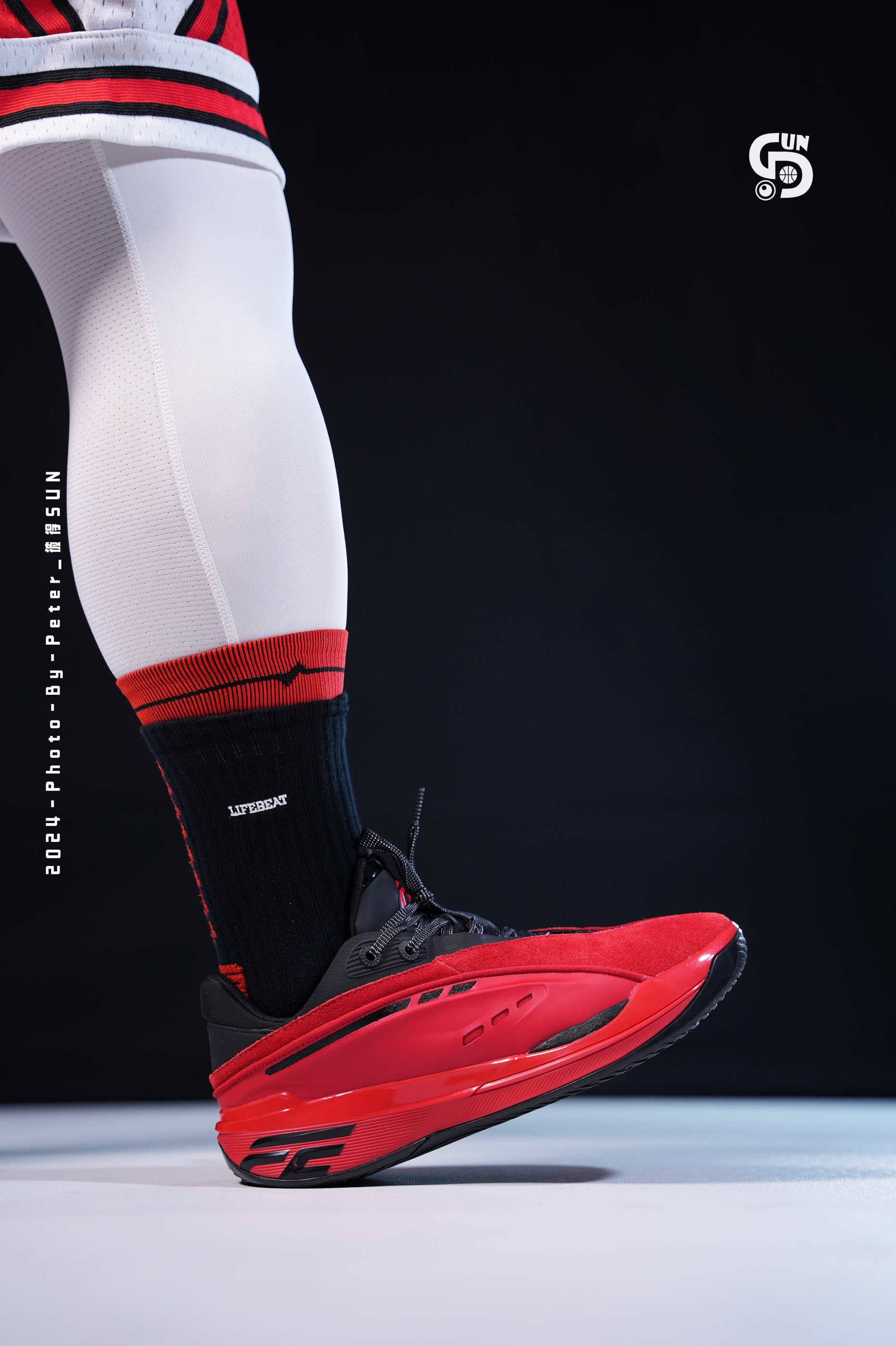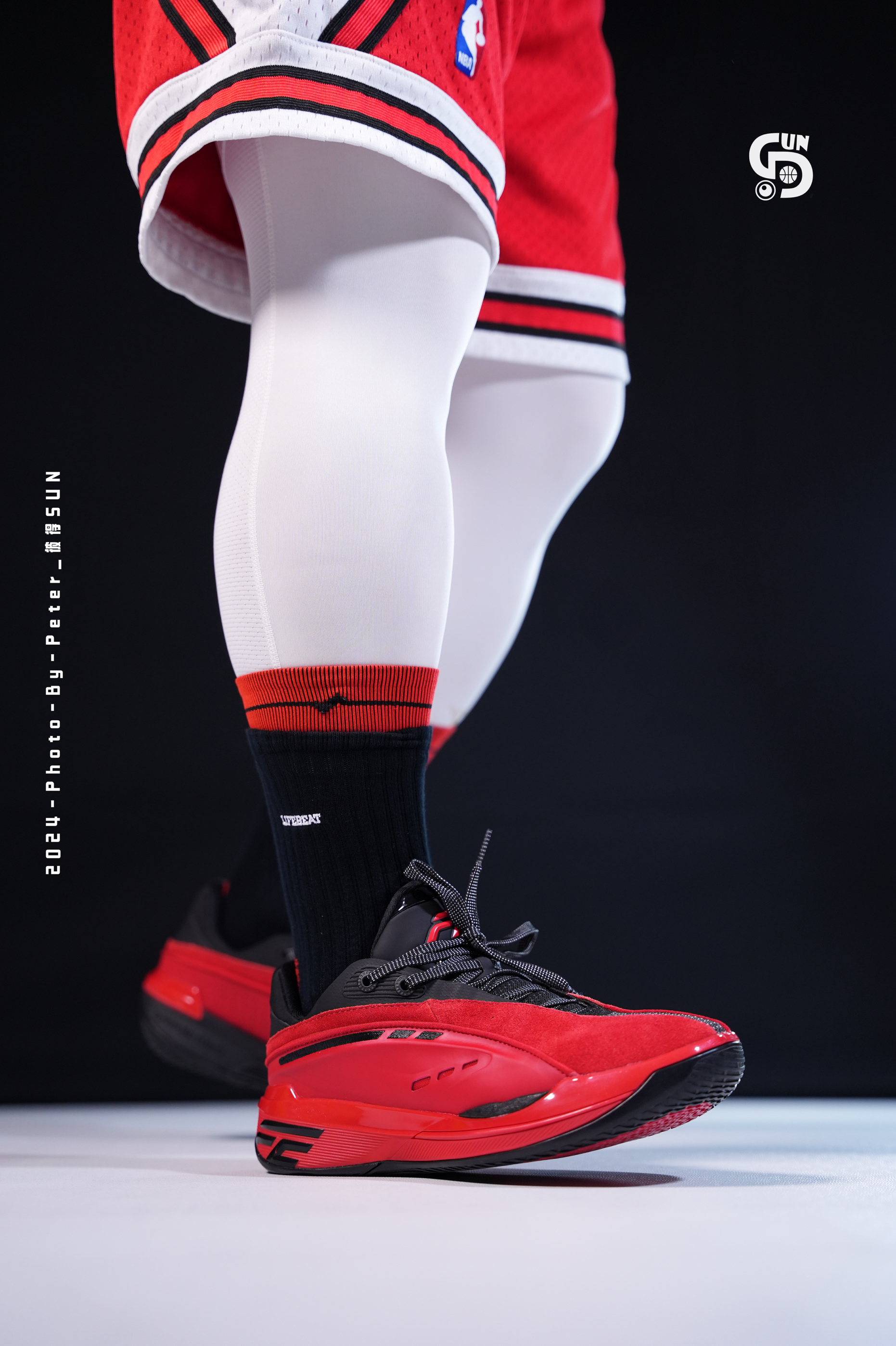 今天上脚展示中乔的FE2.5黑红配色 黑红配色到底是多少人的情怀 配合公牛的比赛短裤如何?