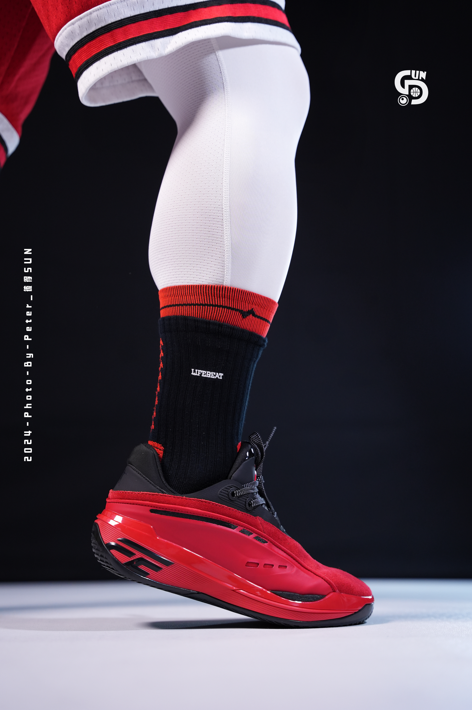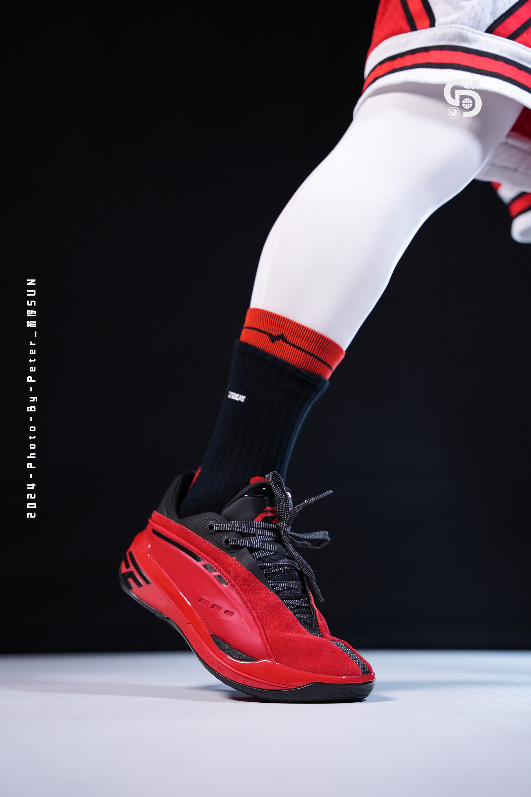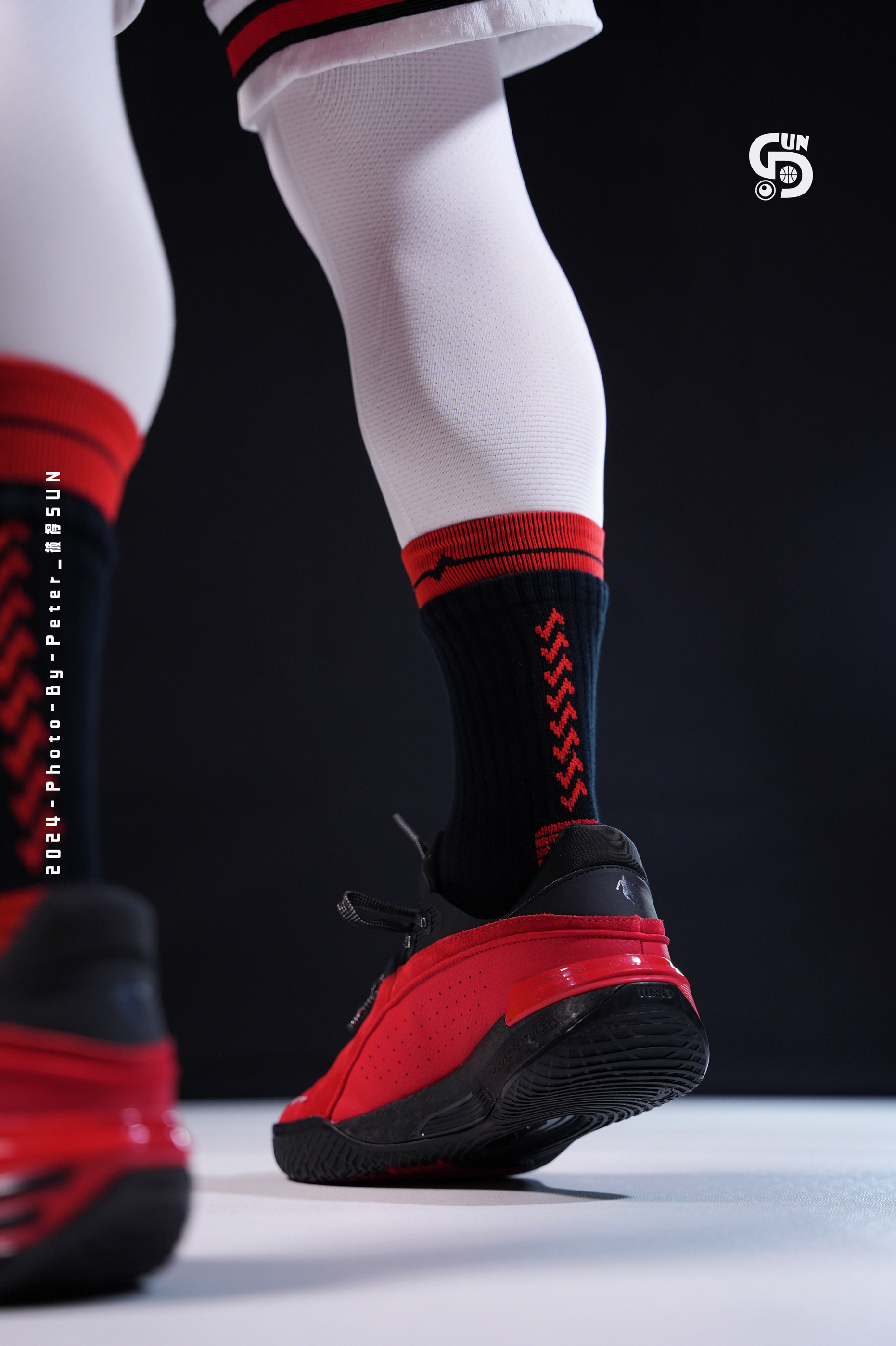 今天上脚展示中乔的FE2.5黑红配色 黑红配色到底是多少人的情怀 配合公牛的比赛短裤如何?