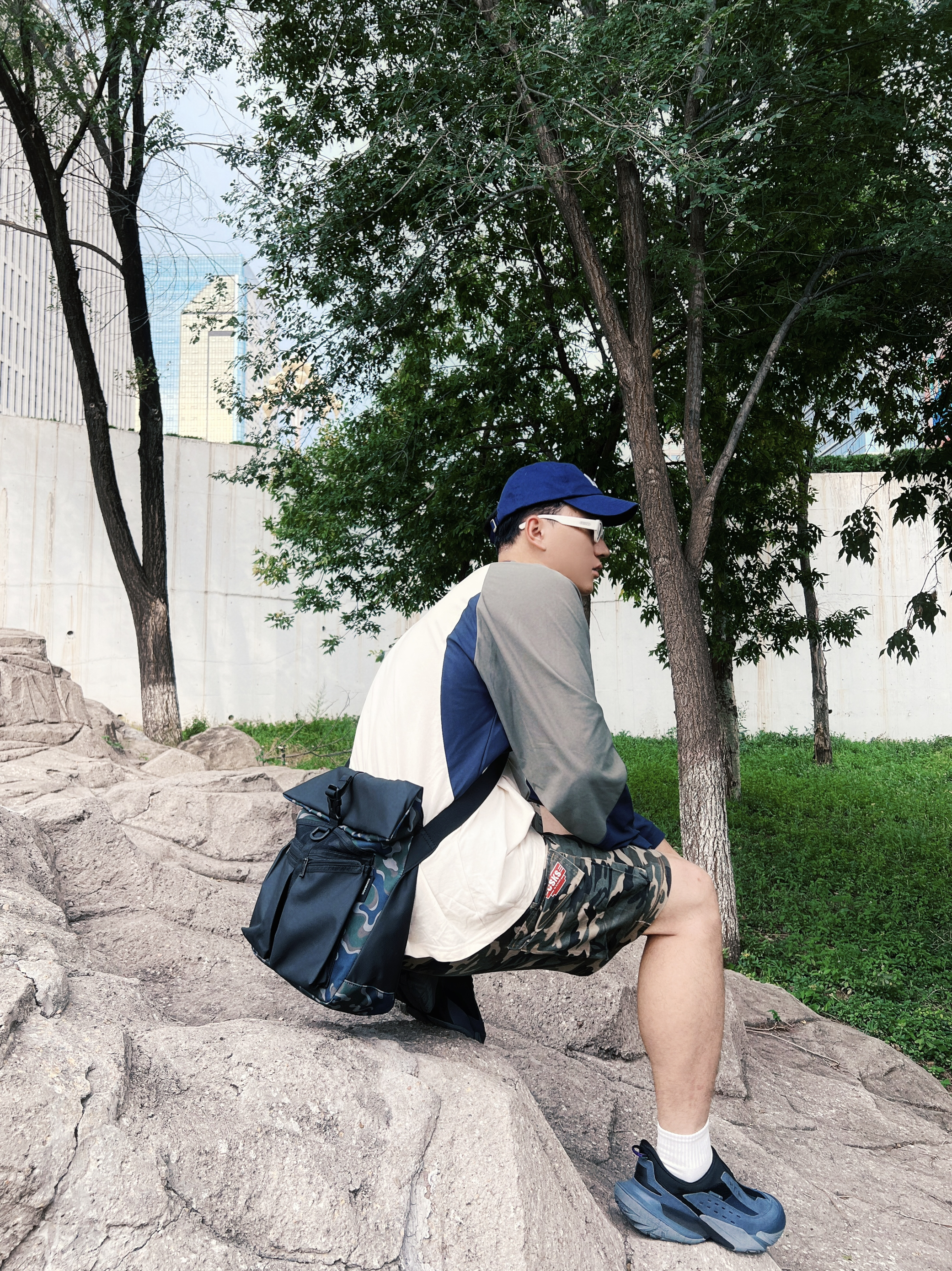 最近hin喜欢去户外🌲 一身休闲山系风太🆒了 上身一件休闲长袖 搭配一条迷彩短裤 上脚一双李宁CF溯系列休闲鞋 鞋子第一眼就hin有山味儿 脚感柔软抓地性好 爬山户外都可拿捏💫 而且黑色耐脏易打理 再来一个山系风的户外斜挎包 一整个休闲住喽🌟