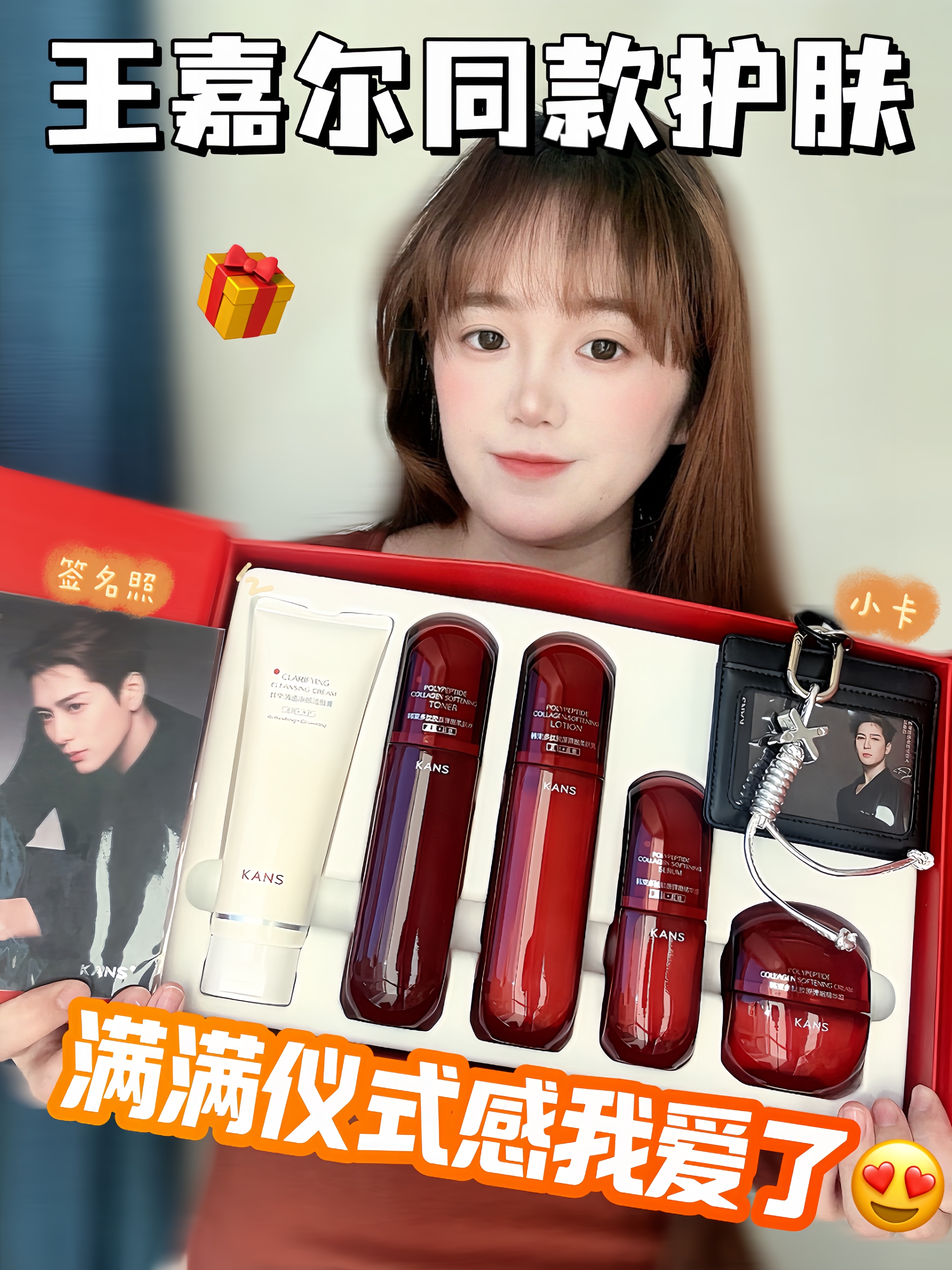 韩束红蛮腰礼盒尊嘟深入我心 红色礼盒包装 满满的仪式感 里面有水 乳 面霜 精华液 洁面 还送了面膜和小样 满满一大盒 这套主打就是抗老抗糖抗氧化 质地都hin滋润清爽 好吸收那挂 还挺适合我这种经常熬夜的人 感觉送礼或者自用都还挺不错的