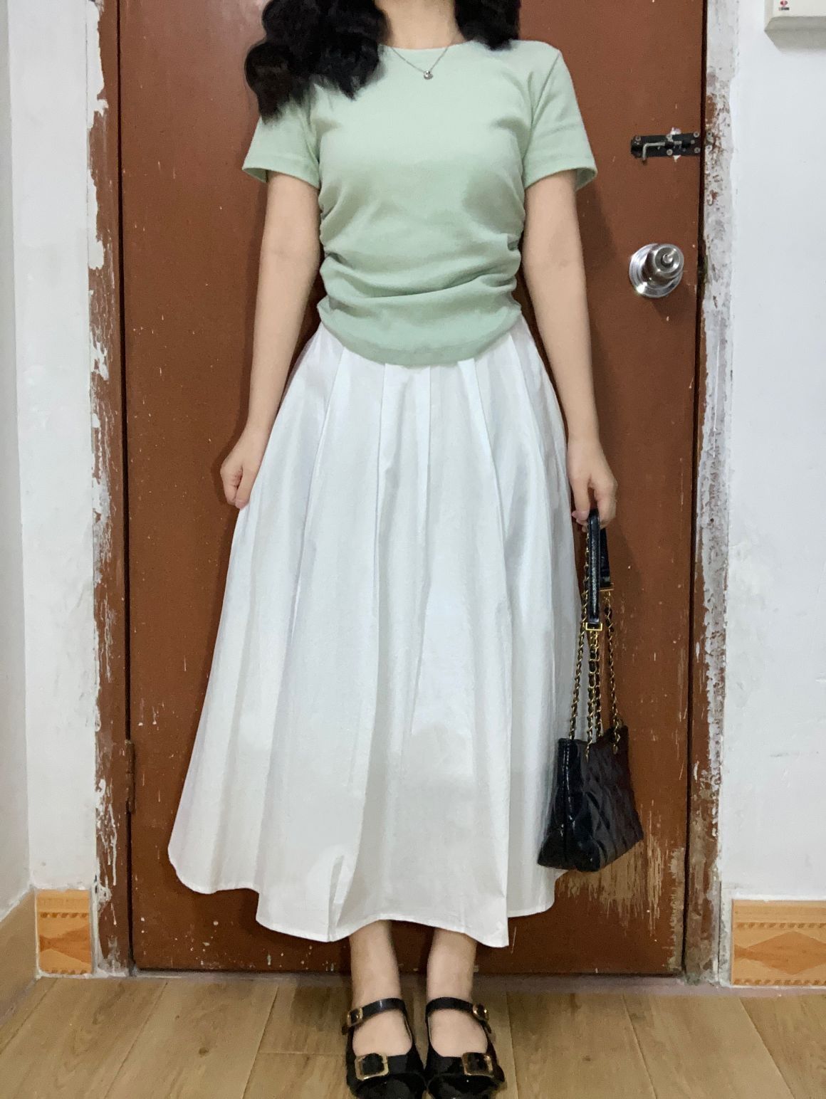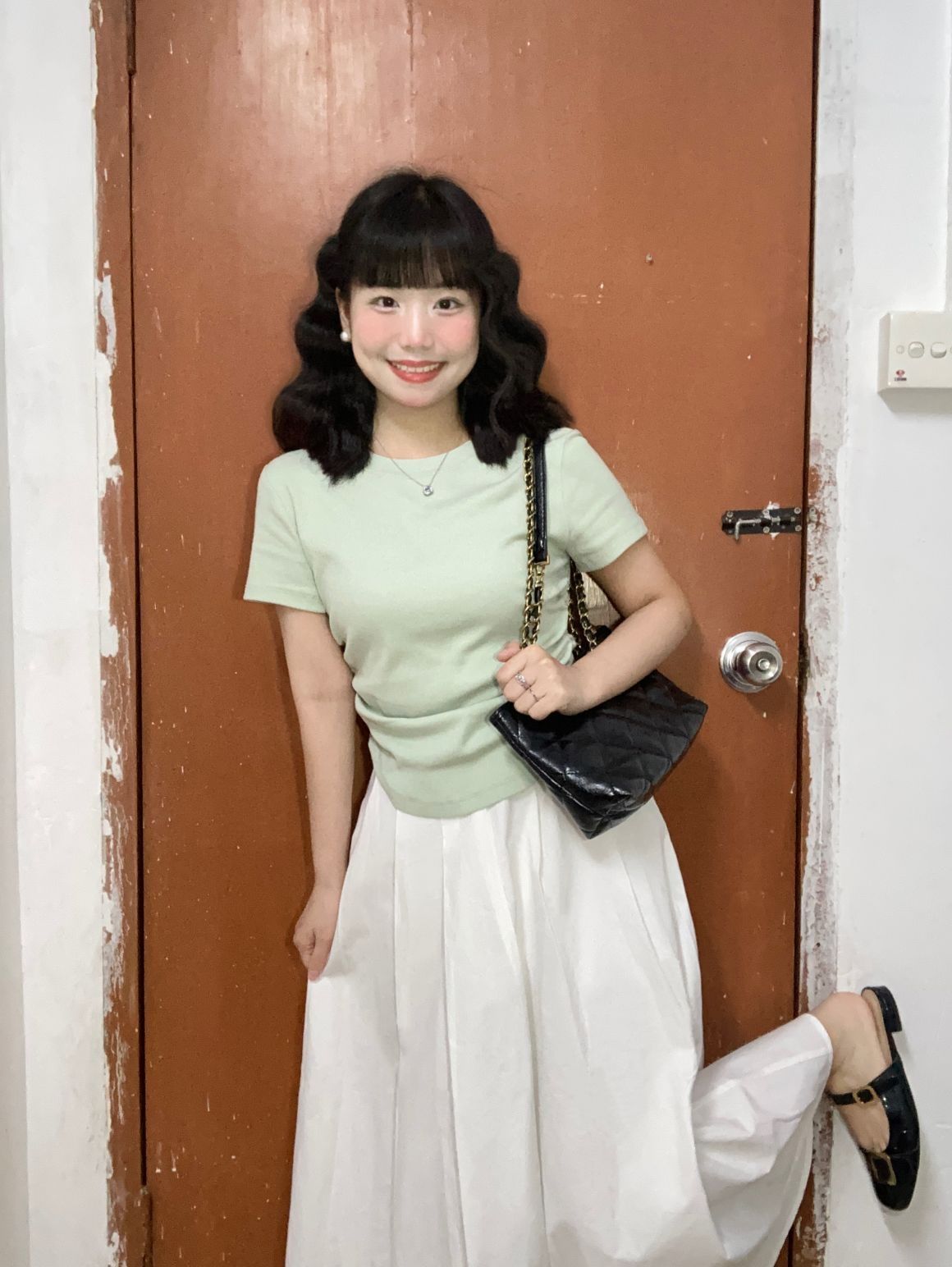🏷️每日小个子的日常通勤穿搭 🙋身高|体重:154|90 🧍♂️ 穿搭风格:今天分享的是适合夏季的实用主义穿搭 👔 上衣:薄荷绿短袖t恤 👖 下装:白色半身裙 👟 鞋子:黑色玛丽珍半拖鞋 🎒配饰:黑色链条包 姐妹们我又来啦🌷今日份分享的这套颜色太适合夏天啦~上短下长的搭配小个子女生穿起来显高又显瘦噢🐈妥妥的温柔气质🍡干净日常又不失精致感🎀通勤约会时小个子女生可以这样穿🍵