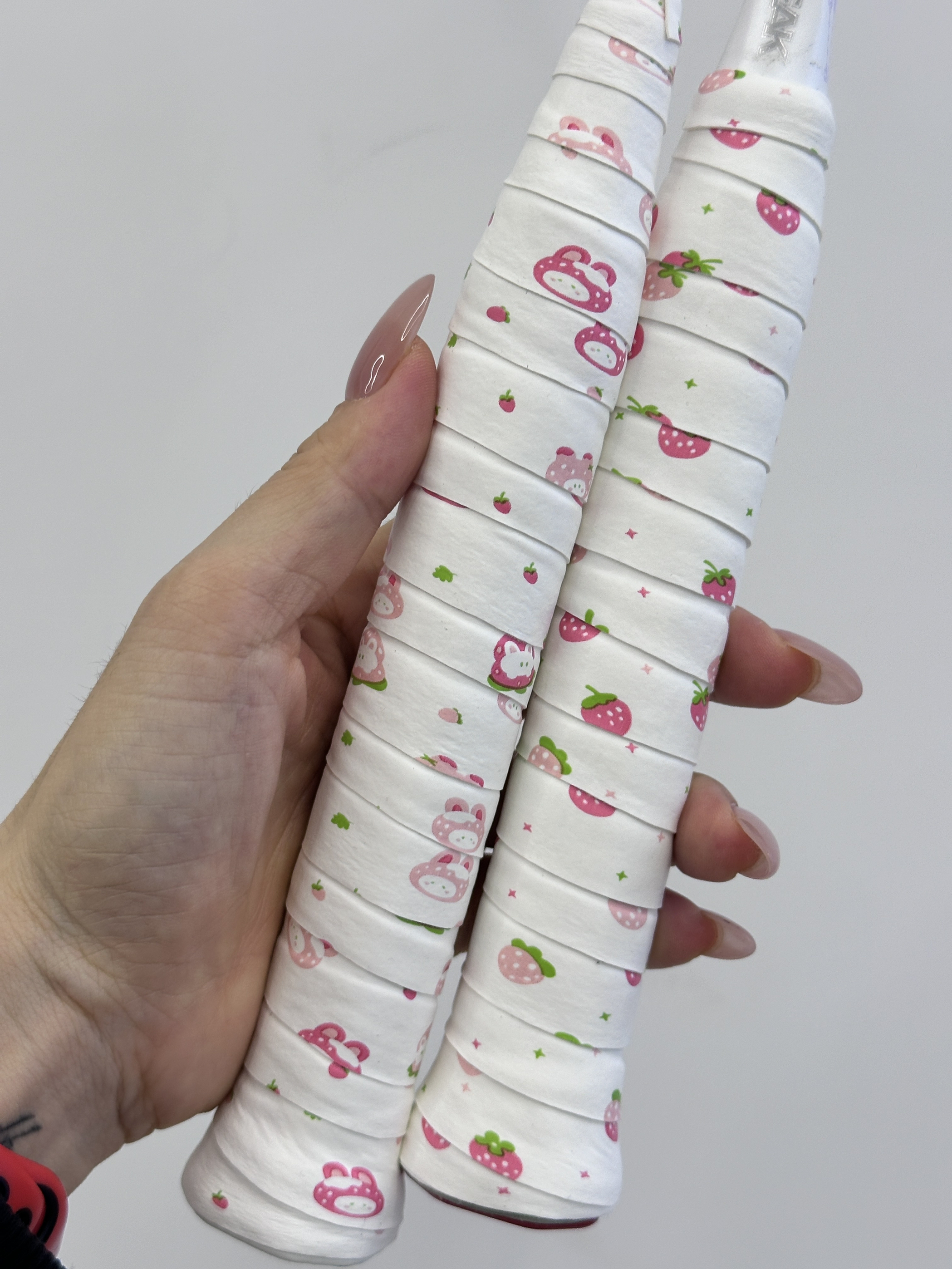 香香软软的草莓兔汁🐰手胶& 跑来报道啦呵 尊嘟超萌超可爱☺️照有一种毛绒绒很粘人的感jio~ 和熊猫手胶一样的厚度O偏粘一点的手感尺寸(1100*25*0.6mm)PU材质防滑吸汗超棒还 “莓”有🍓烦恼海 开心就好!做自己!“莓”关系🍓