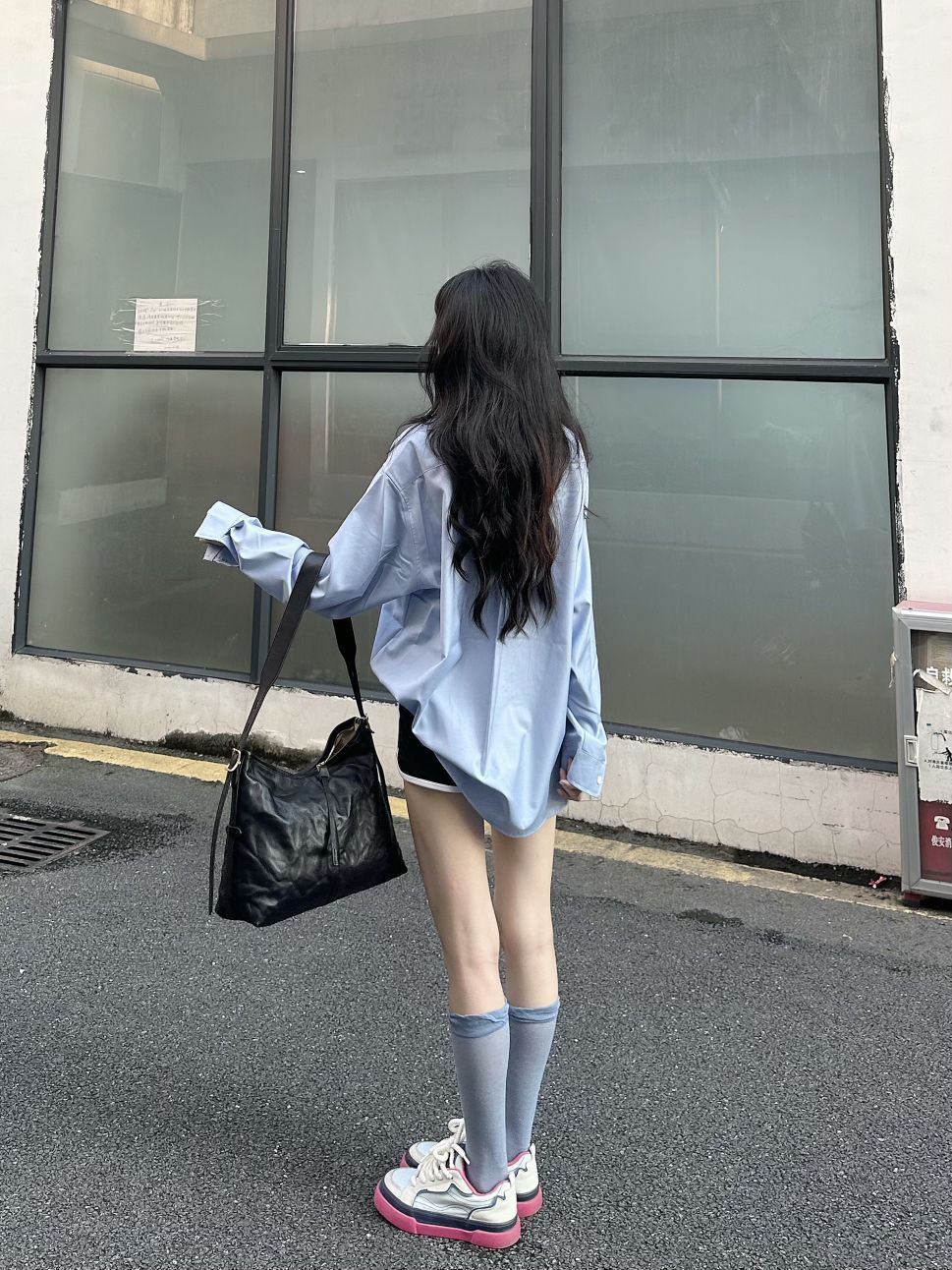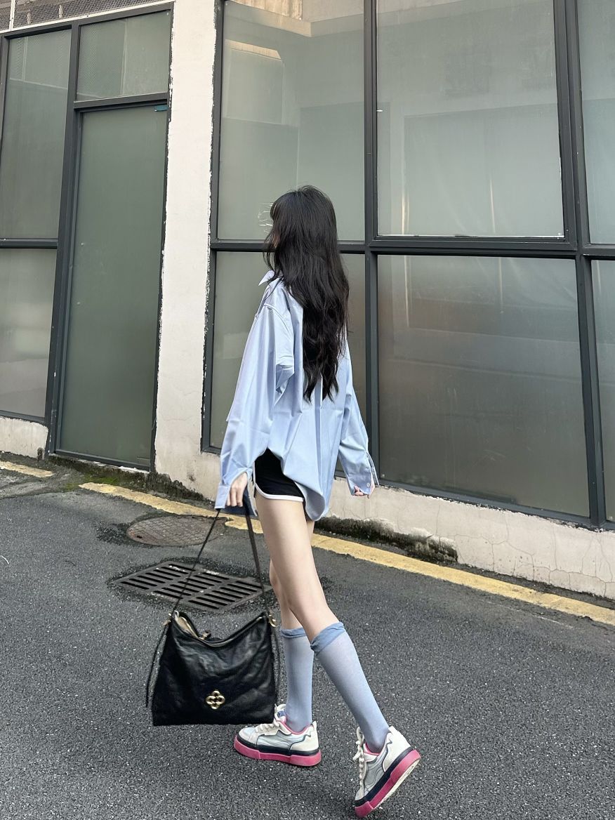哈喽,家人们,今天的穿搭分享来啦,是一套早八通勤回头率百分百穿搭分享~ 上半身: 蓝色休闲潮流时尚衬衫+黑色牛皮托特包 下半身: 黑色休闲短裤+多巴胺潮流板鞋 早八通勤回头率百分百穿搭get~ 尺码参考: 衬衫:m 裤子:s 鞋子:36 包包👜:CASSILE #校供感穿搭 #返校爆改穿搭 #好爱每一个风格的我 #不限穿搭合伙人 #学生党穿搭打卡 #疯狂心动的开学季 #开学秋...