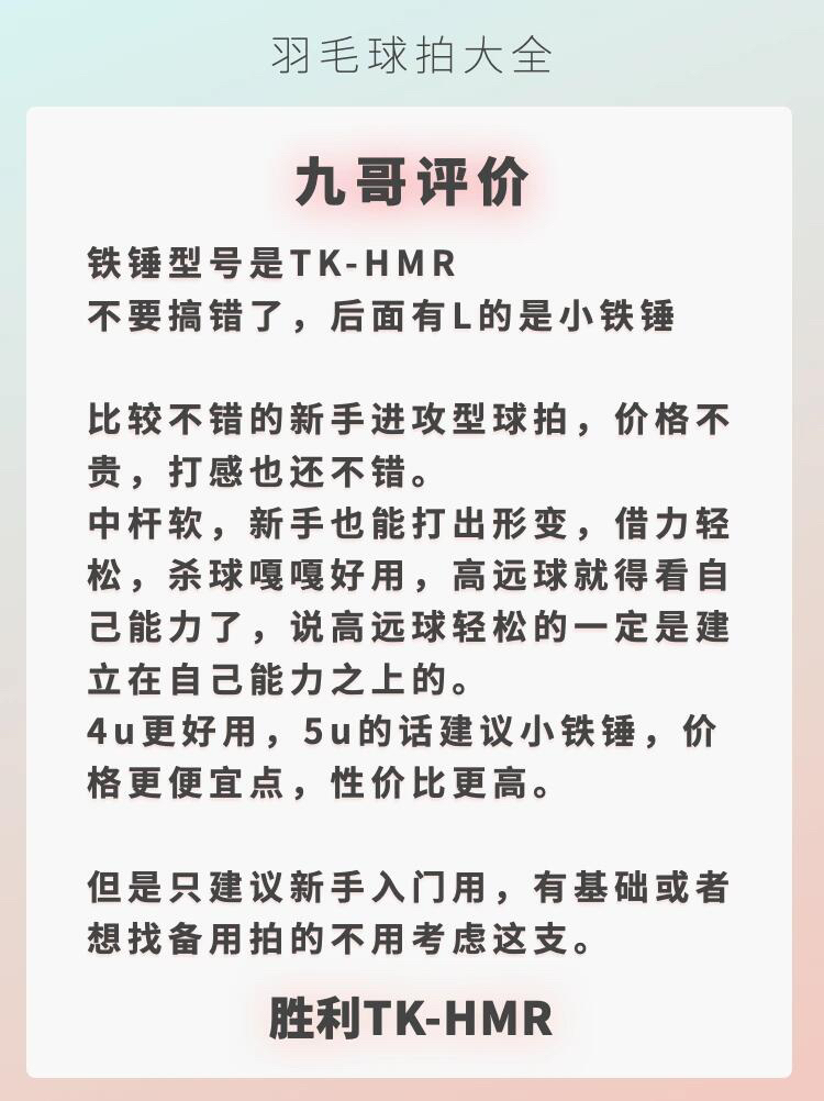 【新手绕不过去的羽毛球拍-胜利铁锤🔥】,由用户 九哥羽毛球 分享,来自广东。这是一篇来自识货社区的真实用户分享笔记。
