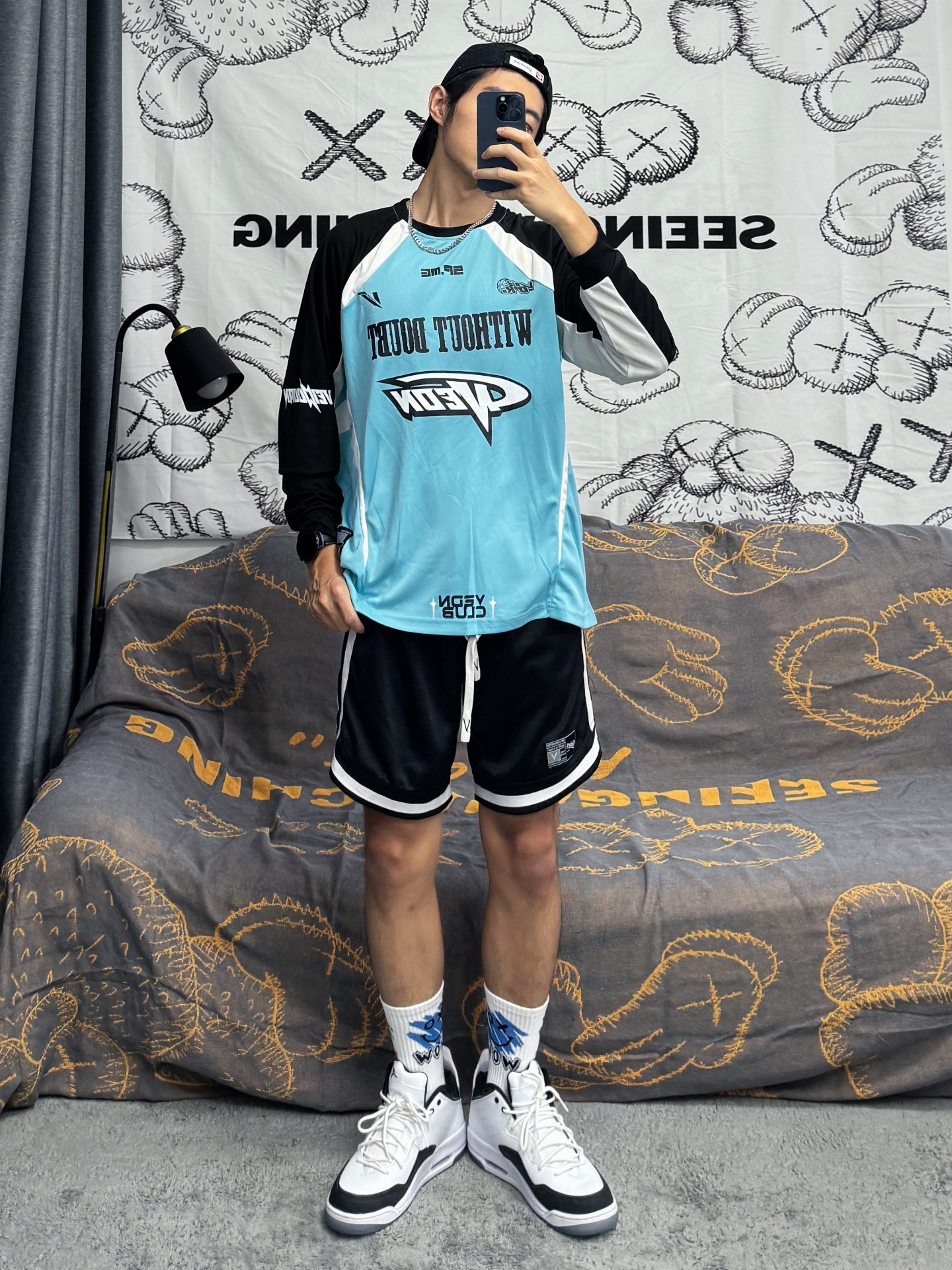 今日份美式街头球员穿搭 上面是一件撞色拼接投篮T恤 天蓝色➕黑色搭配很有潮流感 字母印花设计看起来街头感满满 下面搭配黑边复古投篮短裤 最后加上一双白色球袜和AJ23小藤原浩 这套穿搭整体看起来潮流感满满 快点叫上你的男友来抄作业吧🔥 – #看看你的美式街头穿搭 #美式街头篮球 #今日份篮球穿搭 #篮球男孩日常穿搭 #美式街头运动风 #街头穿搭潮袜 #今日份美式街头穿搭 #今日份穿美式街头穿搭 ...