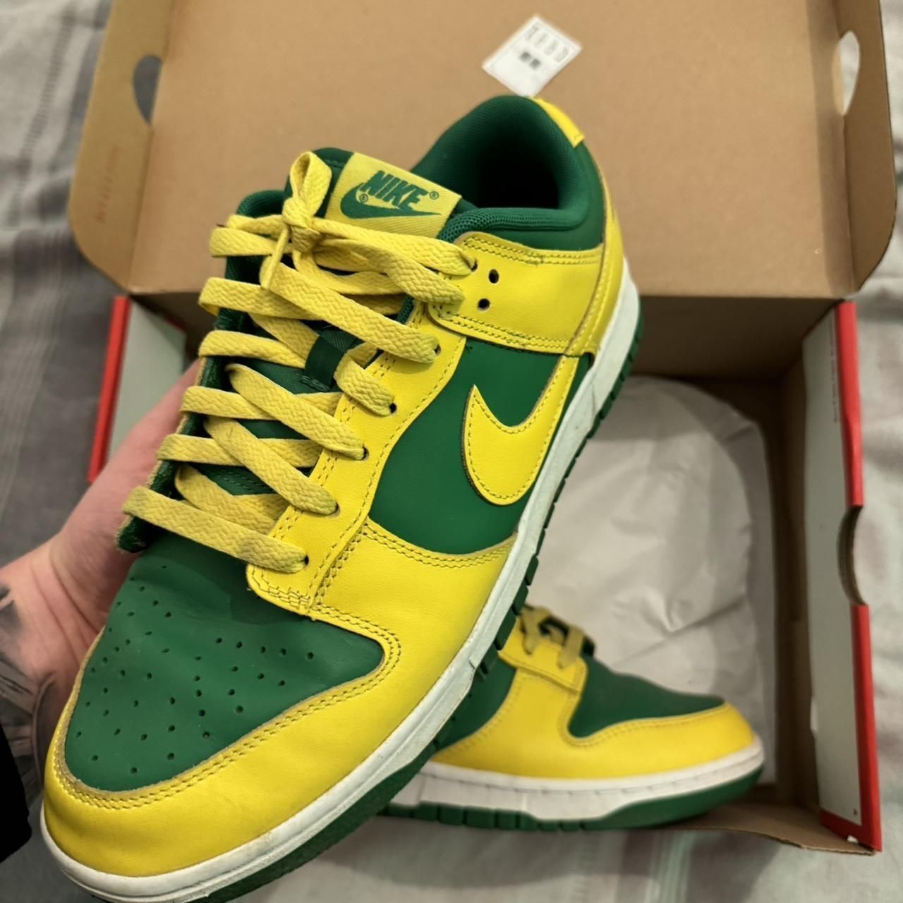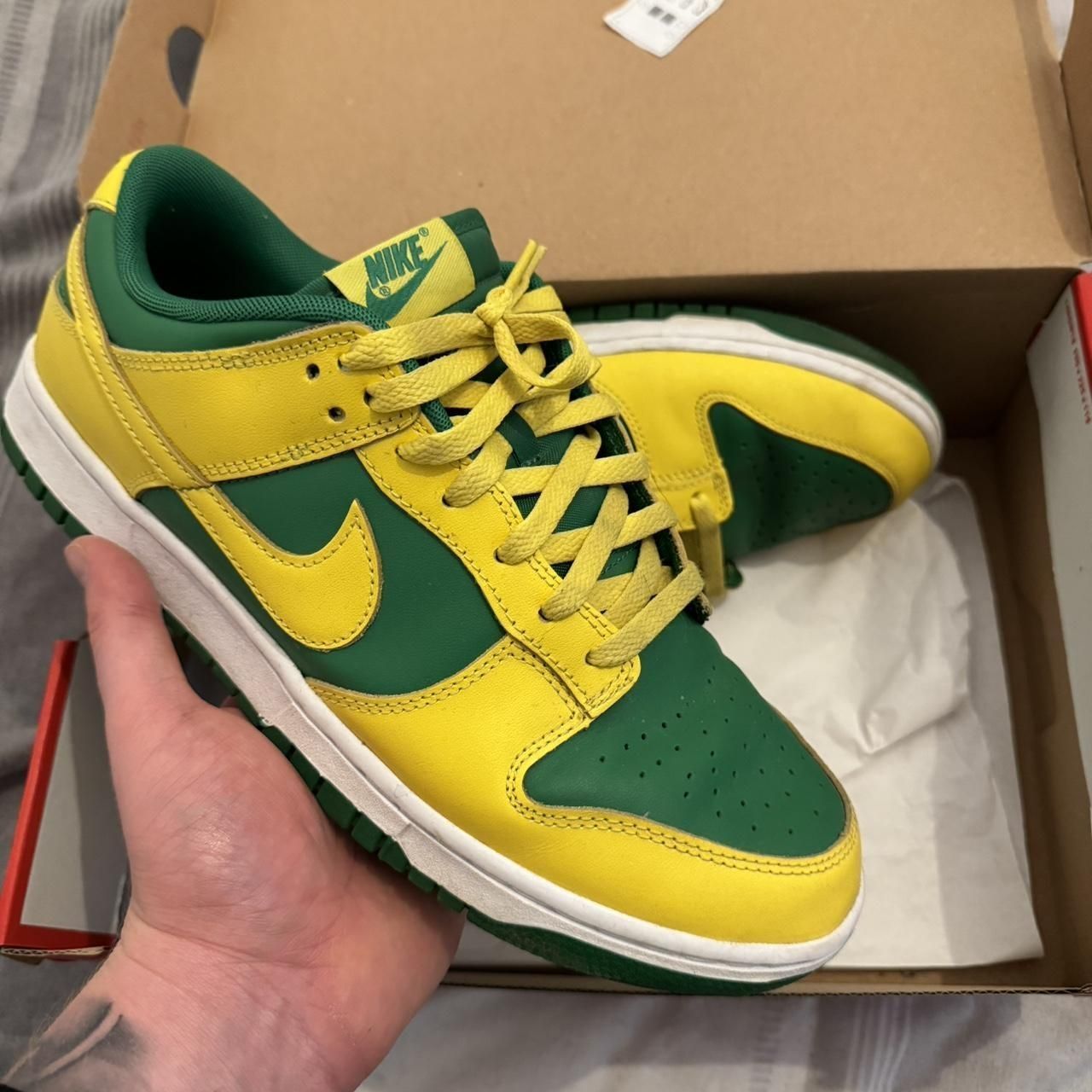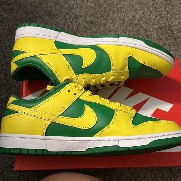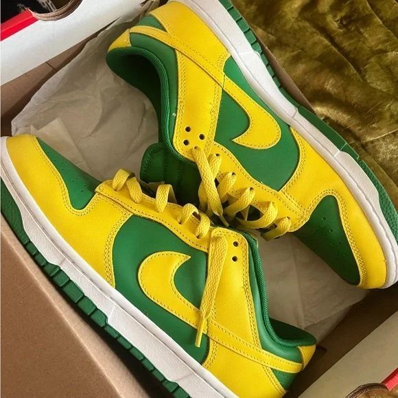 Nike Dunk Low "Reverse Brazil",感觉这双鞋真的很棒!首先,黄绿配色非常抢眼,完全就是街头潮人的必备款。这个“反转巴西”的设计真的很特别,既保留了经典,又有新意。 鞋子的舒适度非常高,低帮设计让脚踝活动自如,不会有束缚感。鞋底的防滑性也很不错,走在各种地面上都很稳健,不用担心打滑。鞋子整体很轻便,穿起来特别舒服,长时间穿着也不会觉得累。 总的来说,Nike Dunk L...