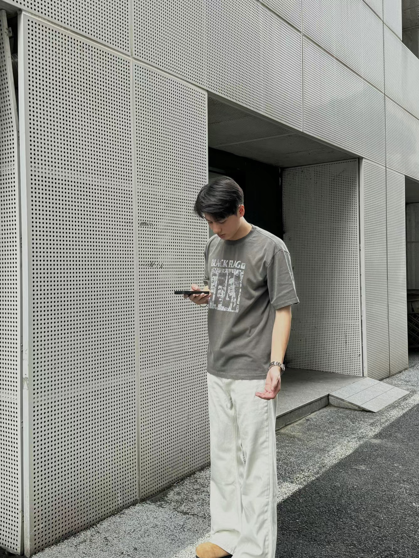 让我看看是谁还没有一条白色牛仔裤!! 今日上身清凉感穿搭 🌟白色牛仔裤搭配水洗灰短袖 版型完完全全就是我想要的 复古微喇版型实在强骨白色加做|蓝就特别夏天 🤍穿白裤子当然不能怕脏啦‼️搭配水洗做旧灰的乐队T恤短袖 只能说 vintage味十足➿材质夏季穿着根本不闷热 而是也是属于质感满满🔘勉强算是黑白搭配 也是出乎意料地适合炎热的夏 天