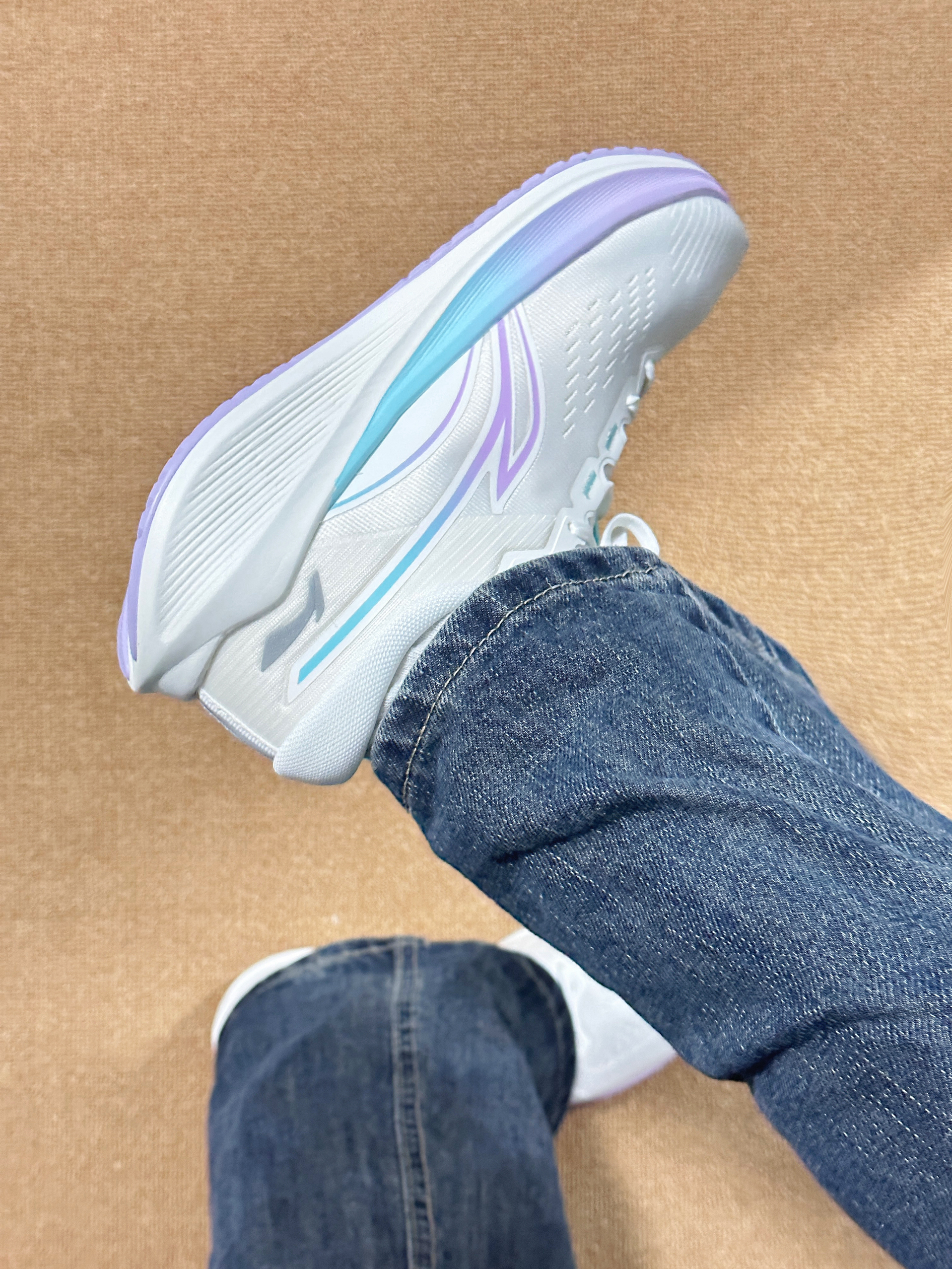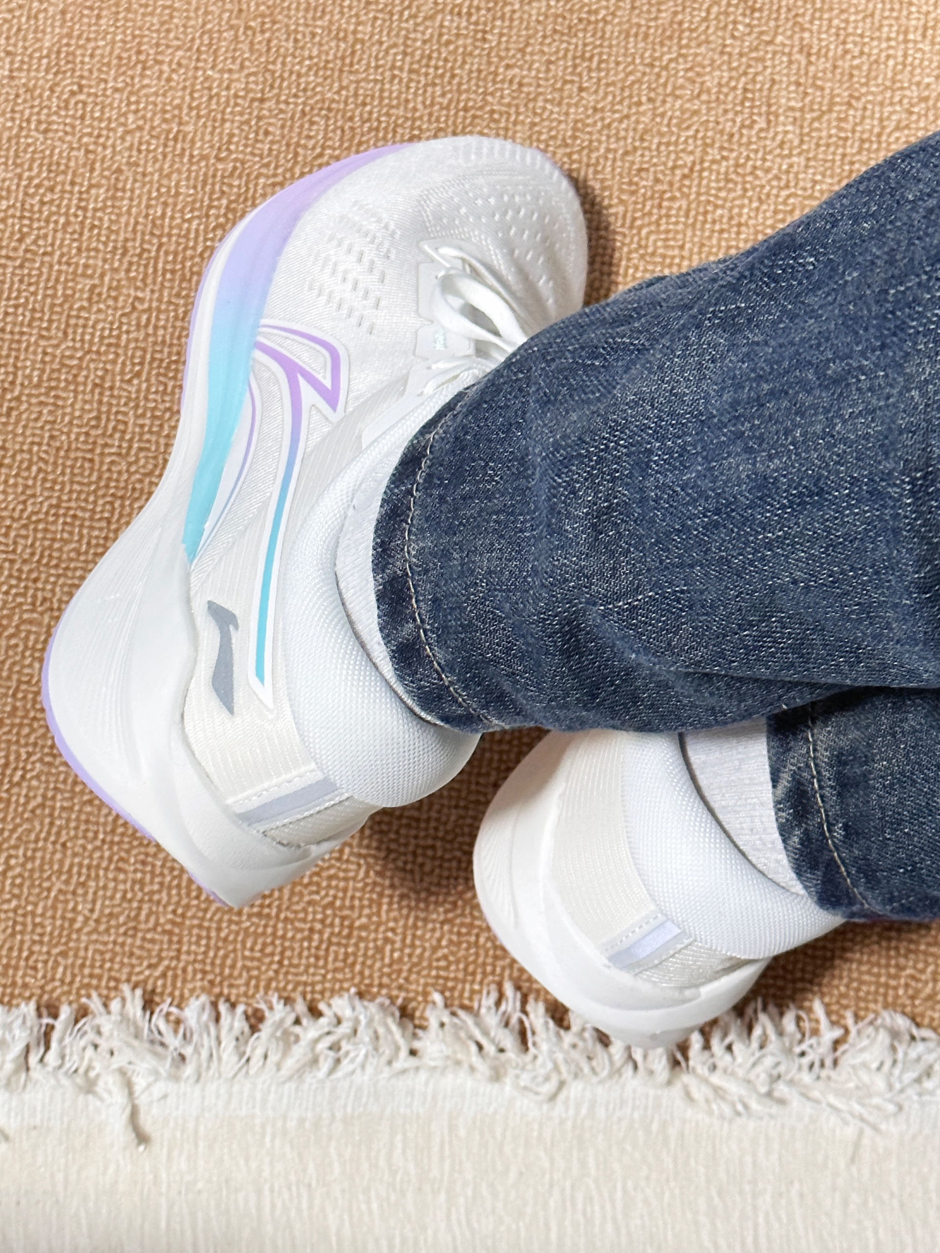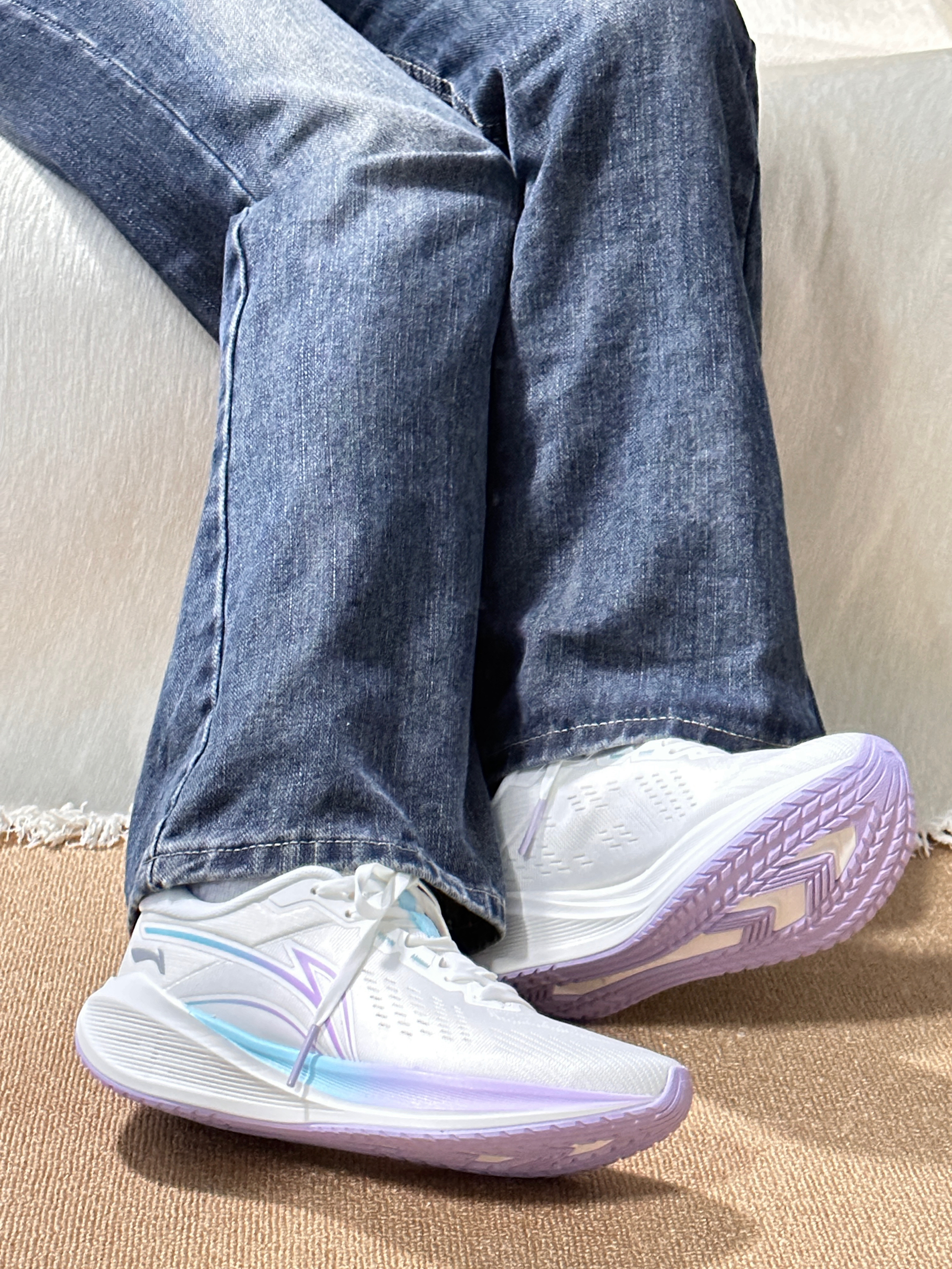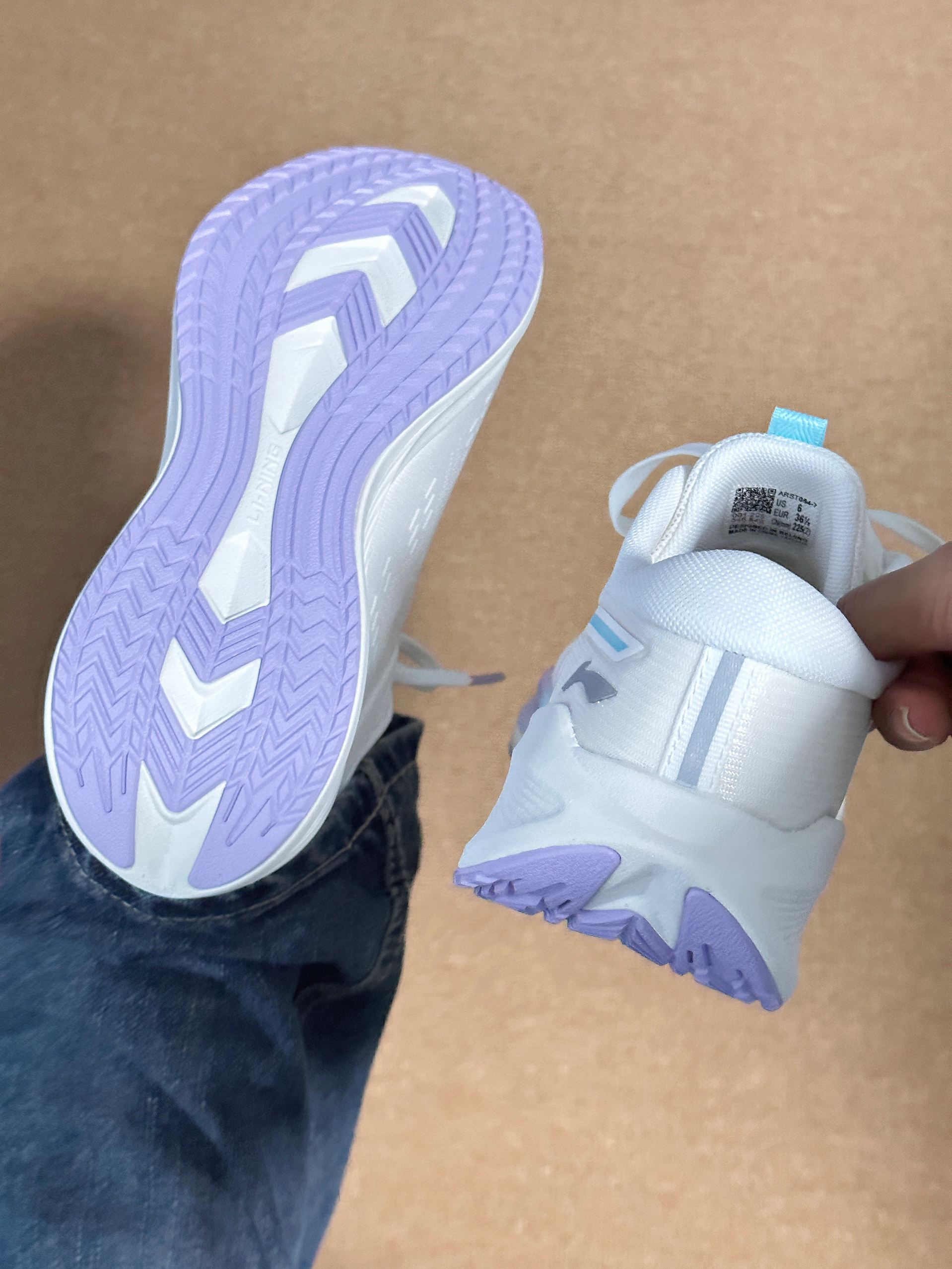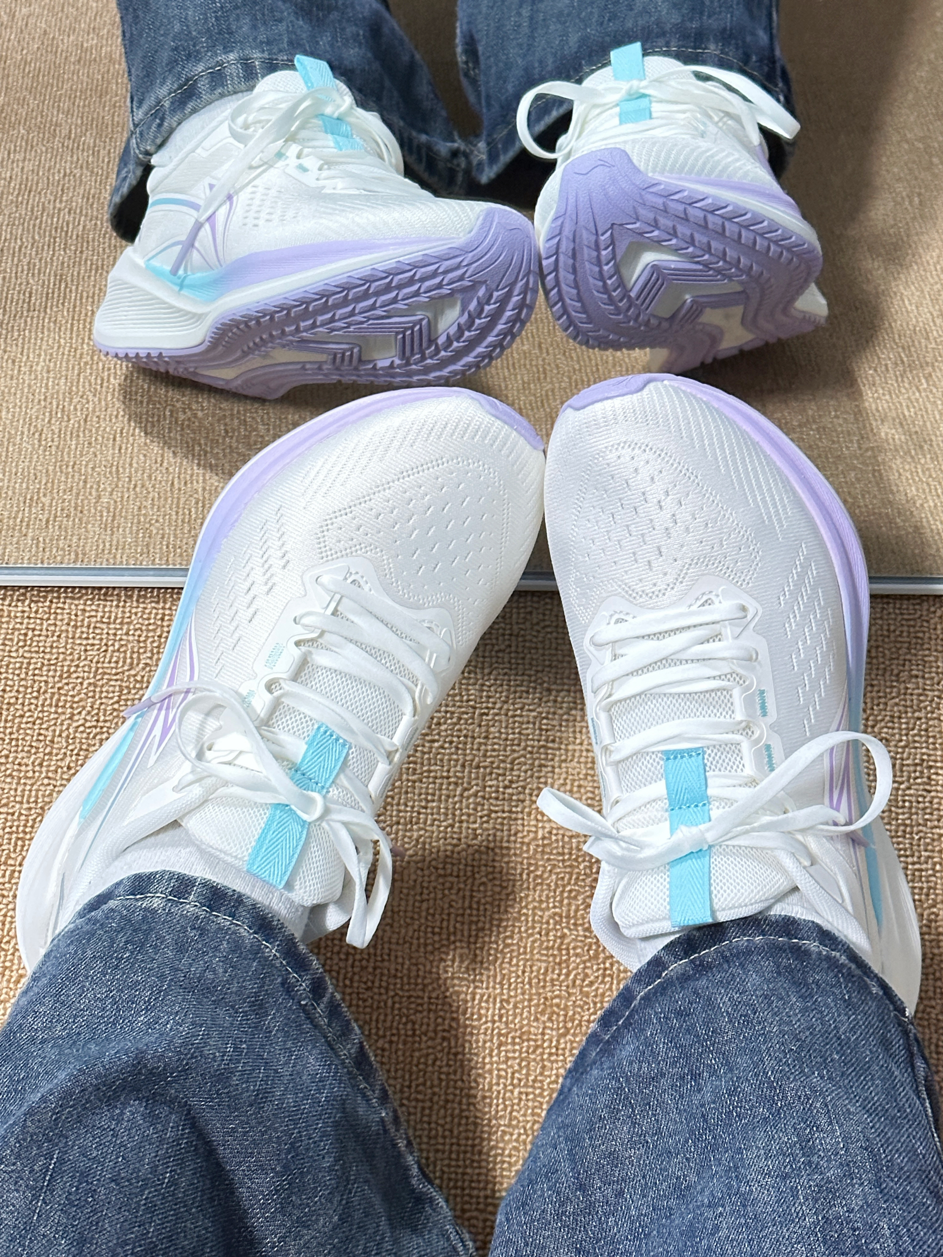 李宁好会设计啊 绝绝紫运动鞋 颜值高就算了 我感觉上脚超Q弹的! 尺码不偏 跑步就靠它啦!!
