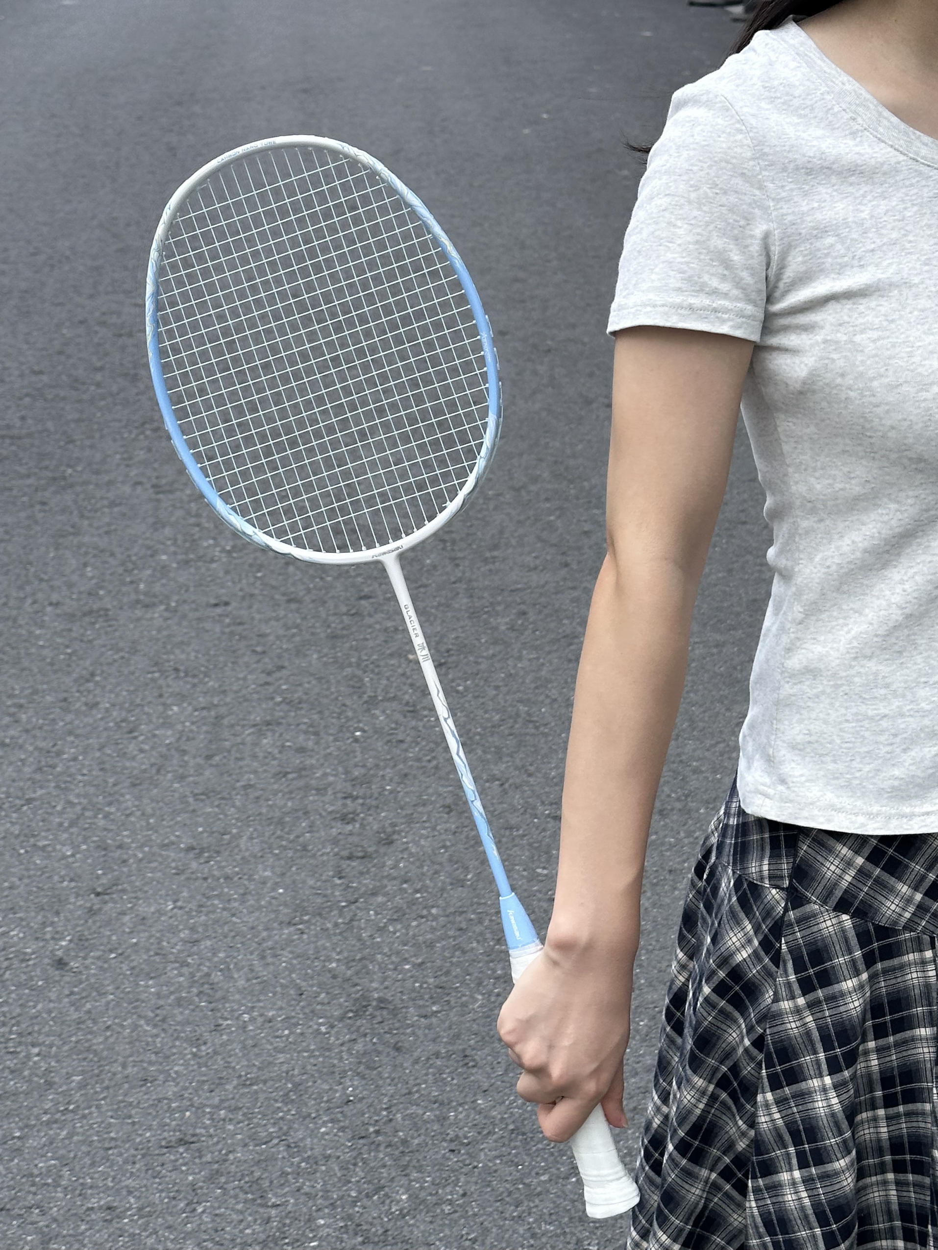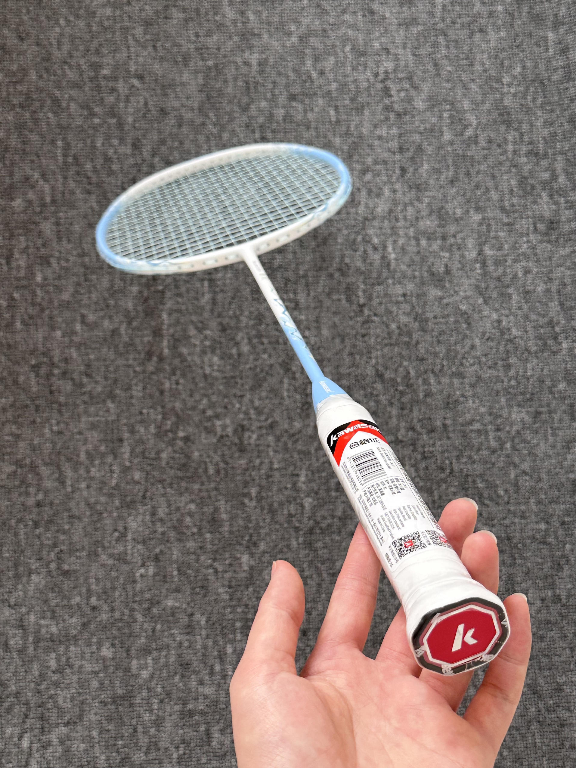川崎冰川也太好看了叭 蓝色看起来很清爽 拍子拿在手里蛮轻盈的,不累手 大甜区拍框,控球击球命中率都up! 新手用也很顺手