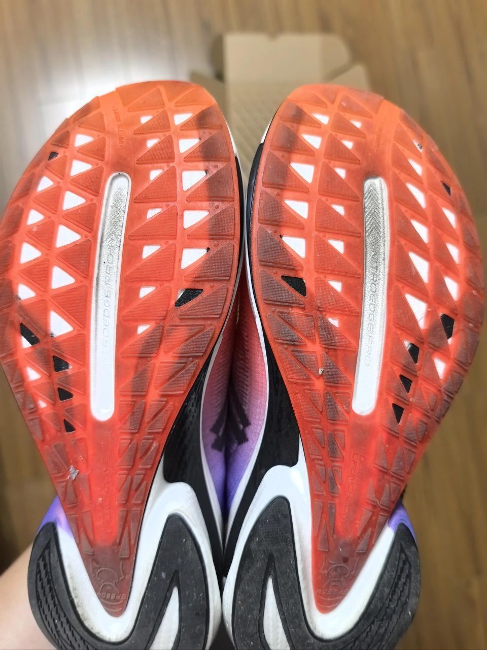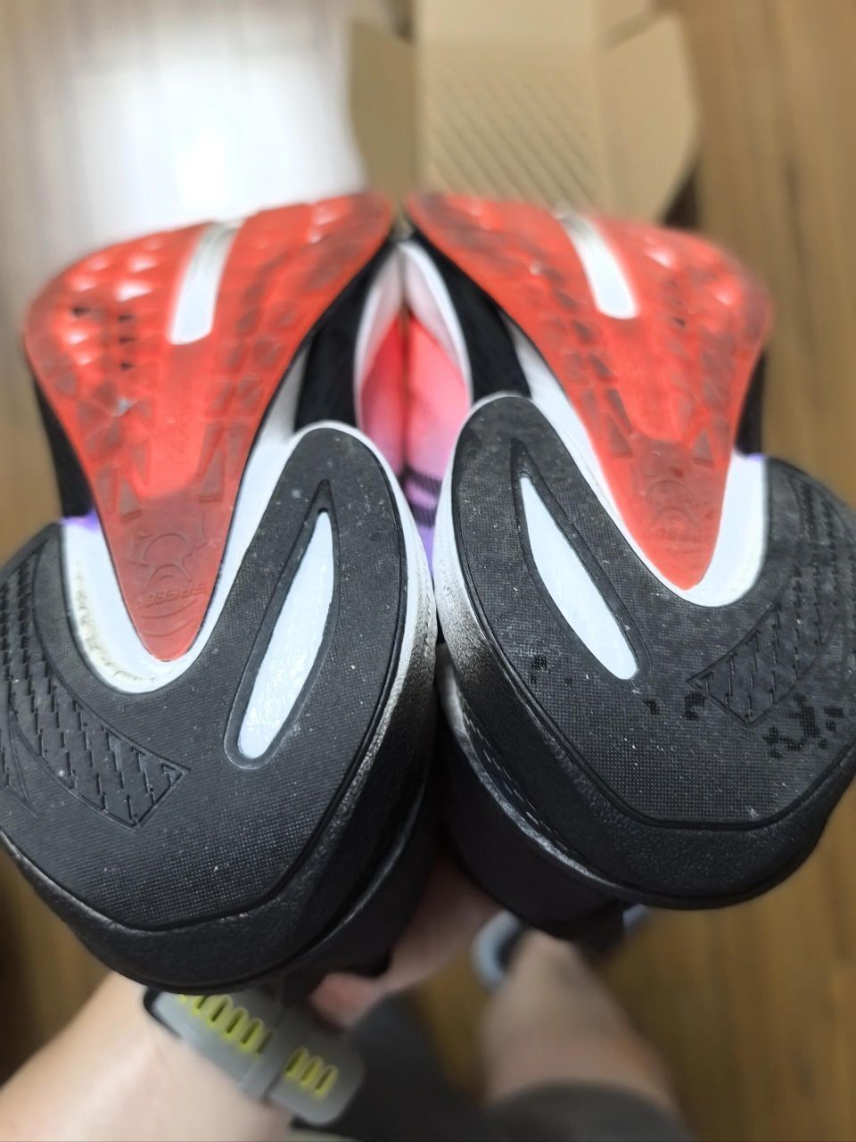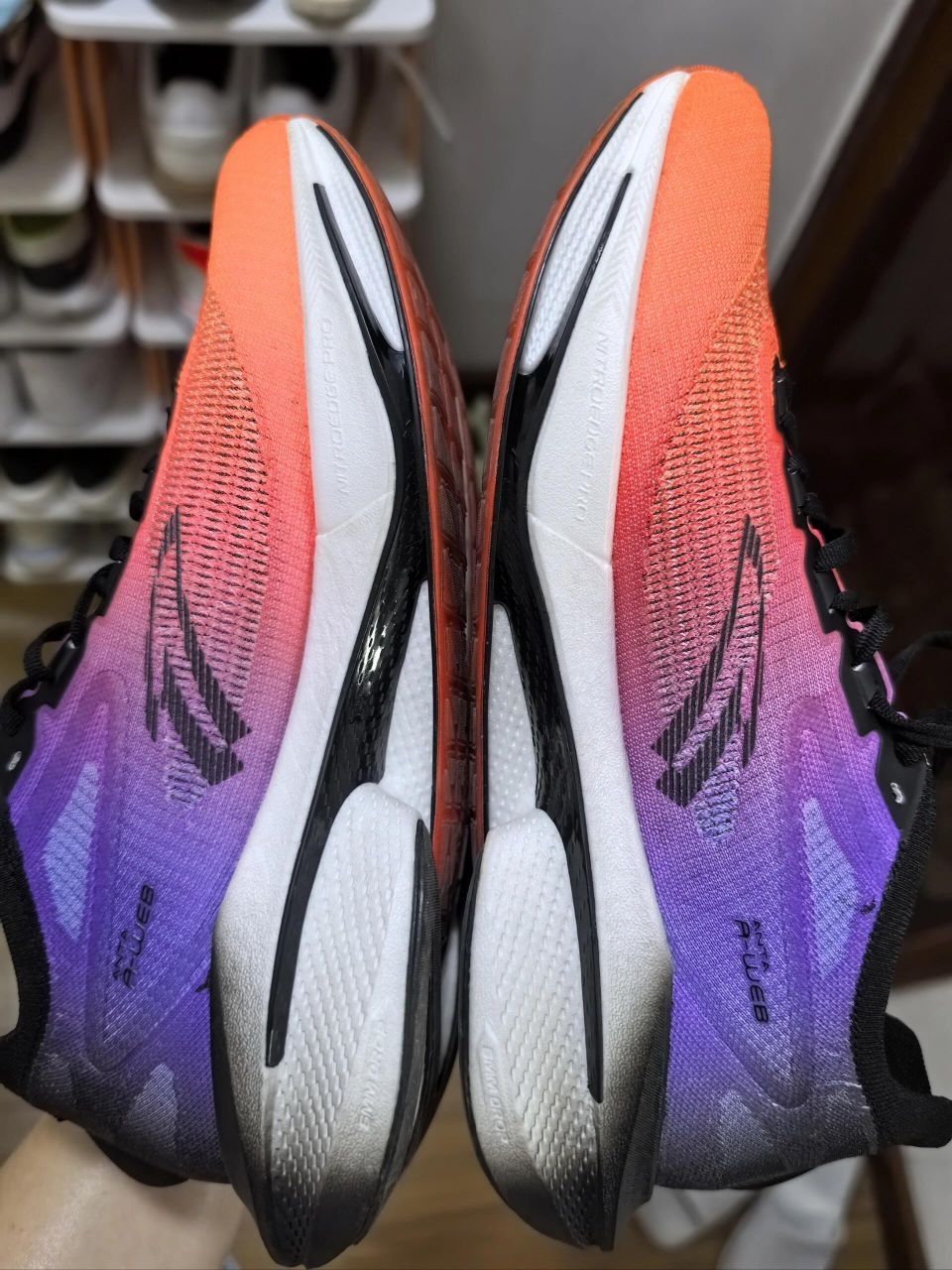 鞋面:tpu纱混合编织,前掌和鞋舌柔软度透气性韧性和用料质感都很好,到了足跟部分材料就改为普通编织,脚趾防撞很充足,包裏除了脚尖留了一点空间活动外别的部位都压的很低,包裹很紧,足弓处收窄,后跟塞入很大的港宝,缝了一块皮质尾翼。尺码偏大,往nike鞋码的上一级鞋码选择,尺码非常重要 中底:前掌板材发泡tpu氮pro,后跟珠粒发泡氮脂肪族tpu,放置位置很有趣,nitro pro在前掌外侧是处于下层位...