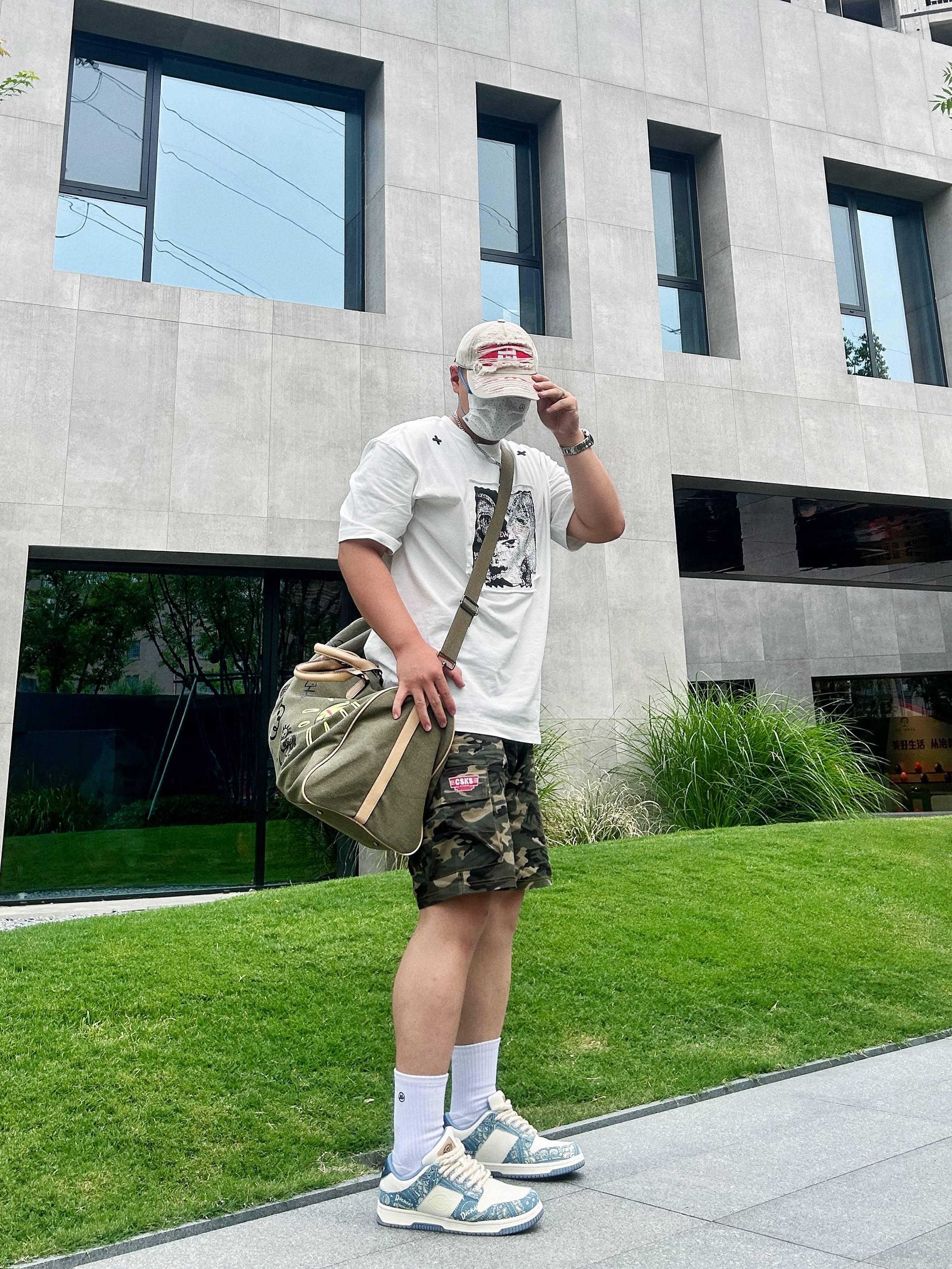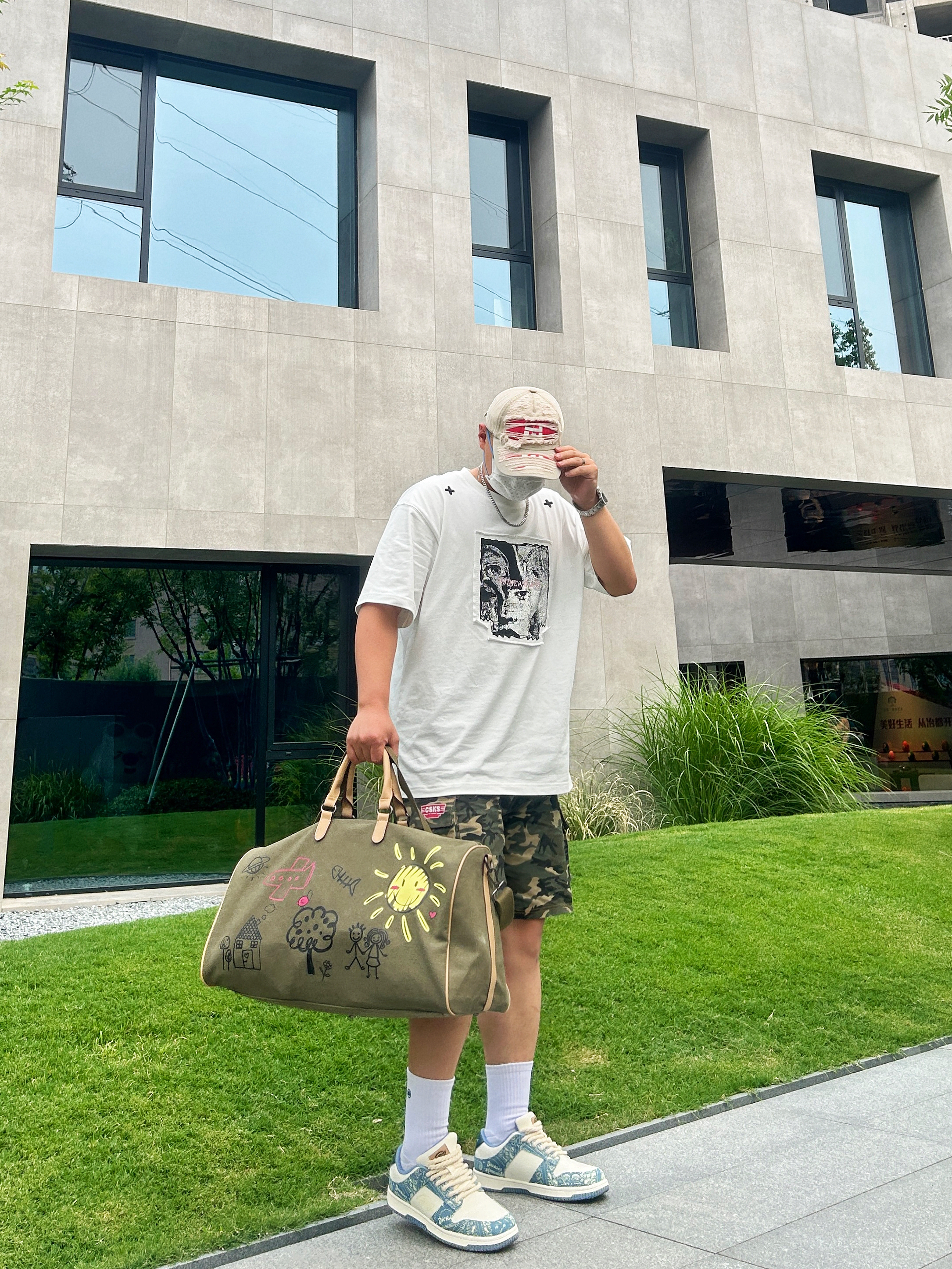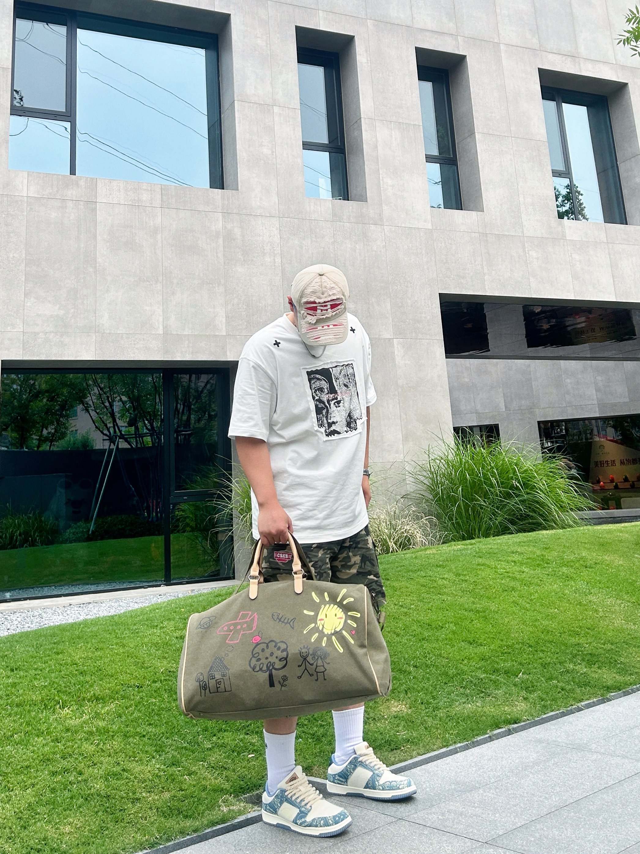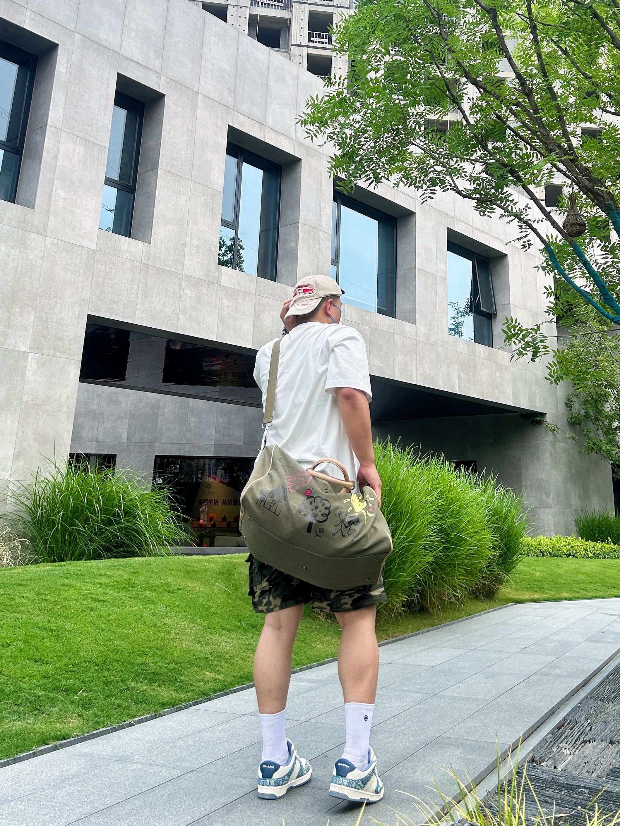 出游旅行,健身都适合的一款大容量斜挎健身包 橄榄绿🫒很清新的配色  这款健身包的图案设计比较出众 色彩搭配属于撞色系 平时出门搭配宽松T恤 一条迷彩的短裤就可以出街了 健身包容量很大,出门旅游也可当作旅行包🧳 平时健完身带几件换洗衣服👕👖大容量的水杯不用担心装不下啦