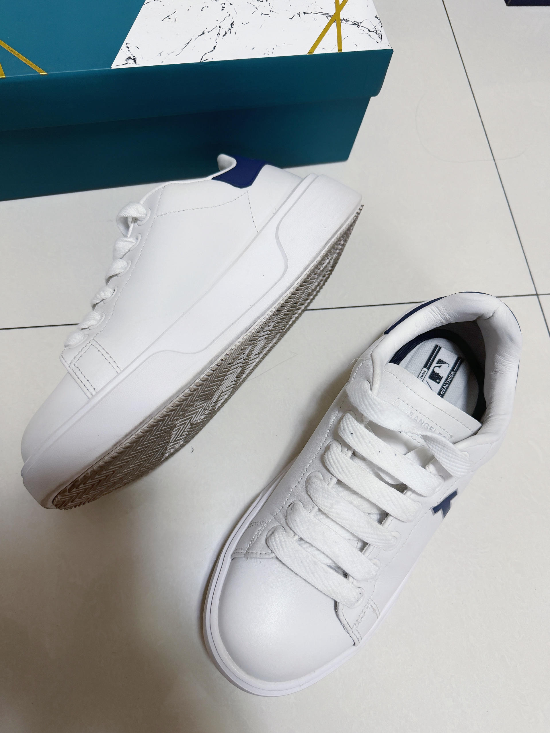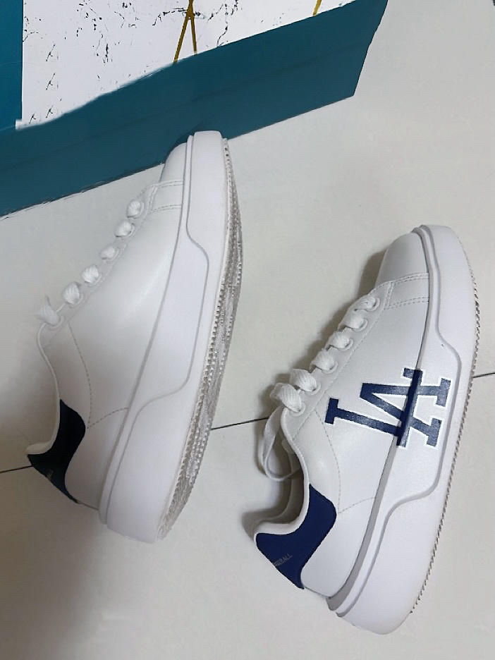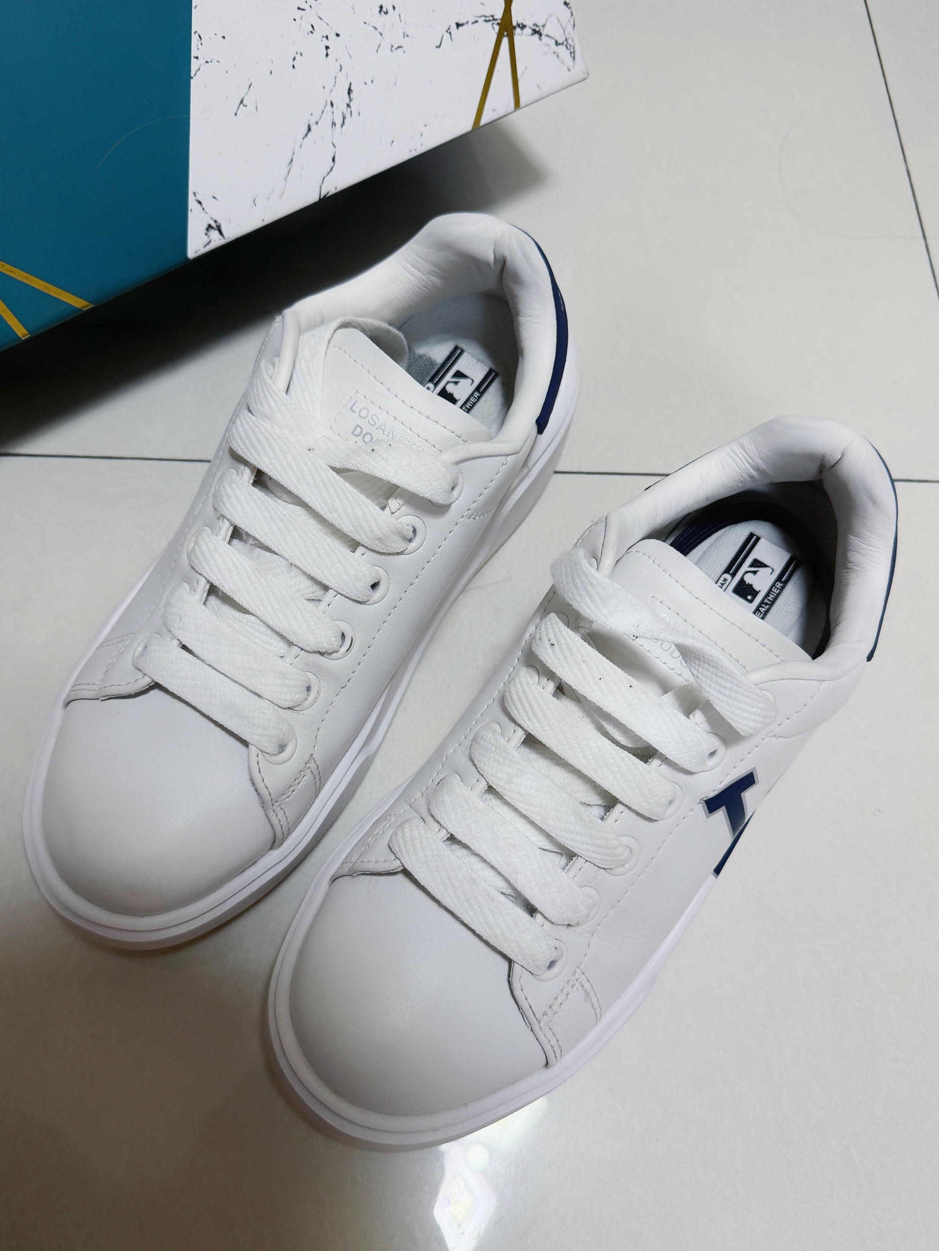 🌵又又又掉进MLB的坑了,这已经是我买的第二双MLB白色板鞋了,穿起来真的很干净 🍒这双板鞋蓝白相间,鞋侧的蓝色logo简单大方,鞋底是一贯的设计,真的很漂亮,鞋子穿上不仅增高还显腿长,鞋底还很软,鞋子穿上还是一样的舒服 🍊平时我喜欢搭配牛仔裤穿,偶尔穿裙子也好好看,很青春