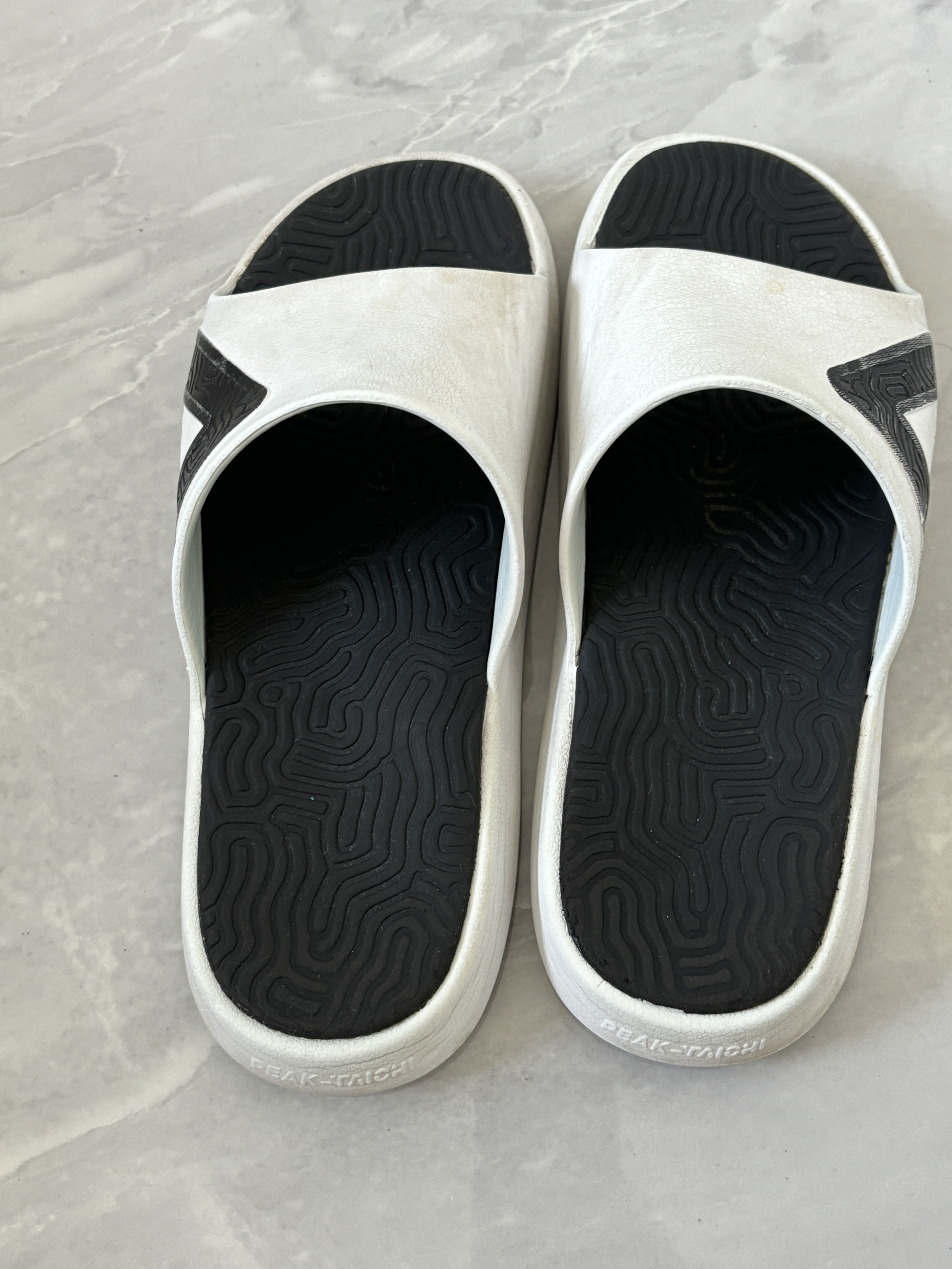 🩷鞋子的配色方面呢,是白色和黑色经典的太极配色 🤎节日的舒适度方面,我这里的评价是非常高的,鞋子很固定脚型,鞋面适应脚面👟 ❤️价格方面的也是比较适中,性价比很高的和市面上¥10 ¥20的拖鞋完全不一样👟