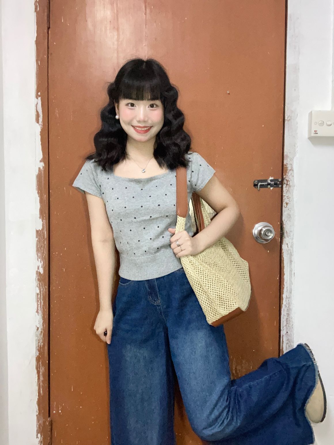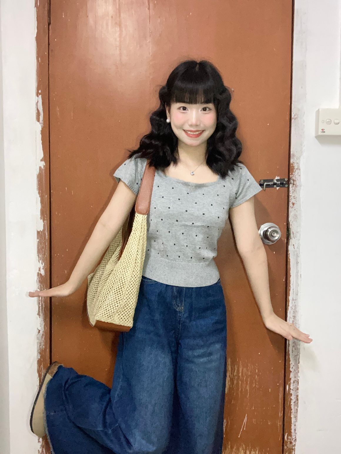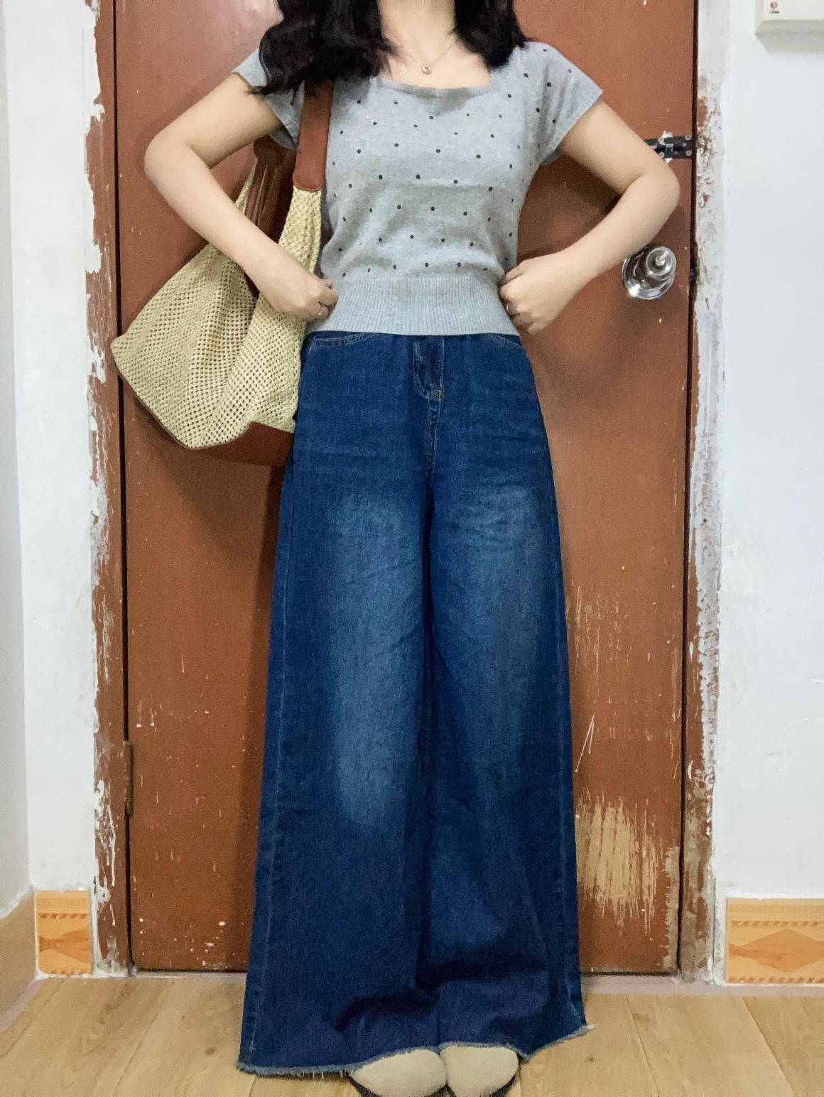 🏷️每日小个子的日常通勤穿搭 🙋身高|体重:154|90 🧍♂️ 穿搭风格:今天是简单舒适穿搭 👔 上衣:灰色波点方领短袖 👖 下装:复古蓝拖地牛仔裤 👟 鞋子:勃肯鞋 🎒配饰:草编包包 📋姐妹们好呀🧸今日份这套穿搭松弛不费力~上短下长的搭配好显高❗❗轻轻松松拉长比例啦🥳而且简约日常中带点精致🎀通勤约会时小个子女生可以这样穿🫐
