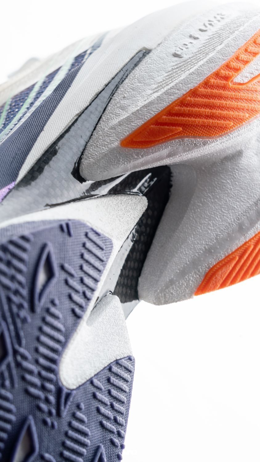 前一段紧密的行程, 导致发布速度也降下来了。 今天跟大家聊聊这双飞飙2, 从外观上能明显看到, 2代的鞋底明显做了加宽, 碳板在后跟内侧的下翻外露,外侧足弓处的上翻, 以及调整后的加强筋, 这些都是在稳定性上下的功夫。 中底上层胚膜,下层珠粒发泡, 双密度也是升级的重点。 鞋面换成了强度更高的碳丝, 整体克重更轻。 总结一下,就是飞飙2相比1代, 中底碳板推进过渡更合理, 稳定性加强,脚感提升,重...