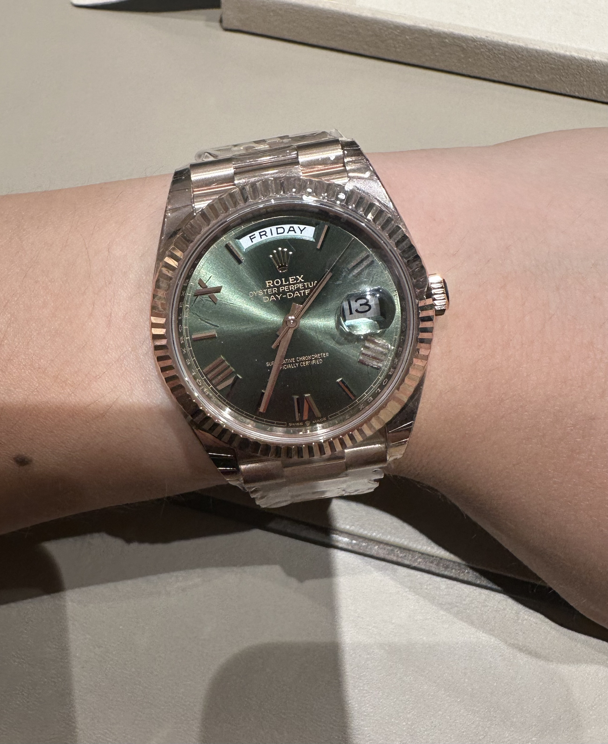 🛒好物名称:劳力士雪碧圈 🤔推荐理由:雪碧圈发了这么久,第一次在店里试到板带款,黑绿的表盘还是相当耐看的,尤其是深绿的颜色,一对比都感觉手上的绿水鬼不香了,深绿色还是好看,唯一的可惜就是左撇子,要出了右撇子肯定无敌,最近价格还降了,感觉可以冲了
