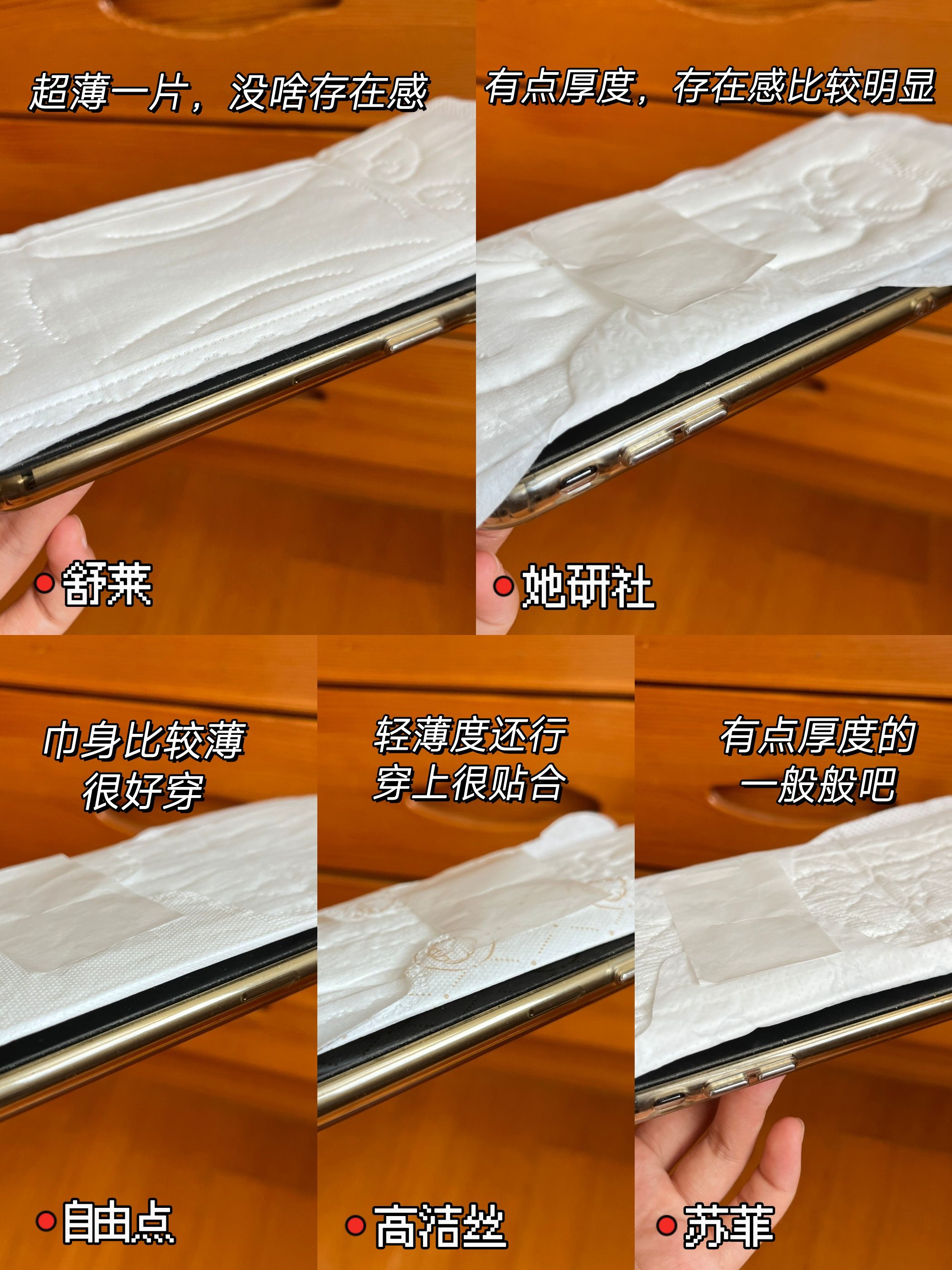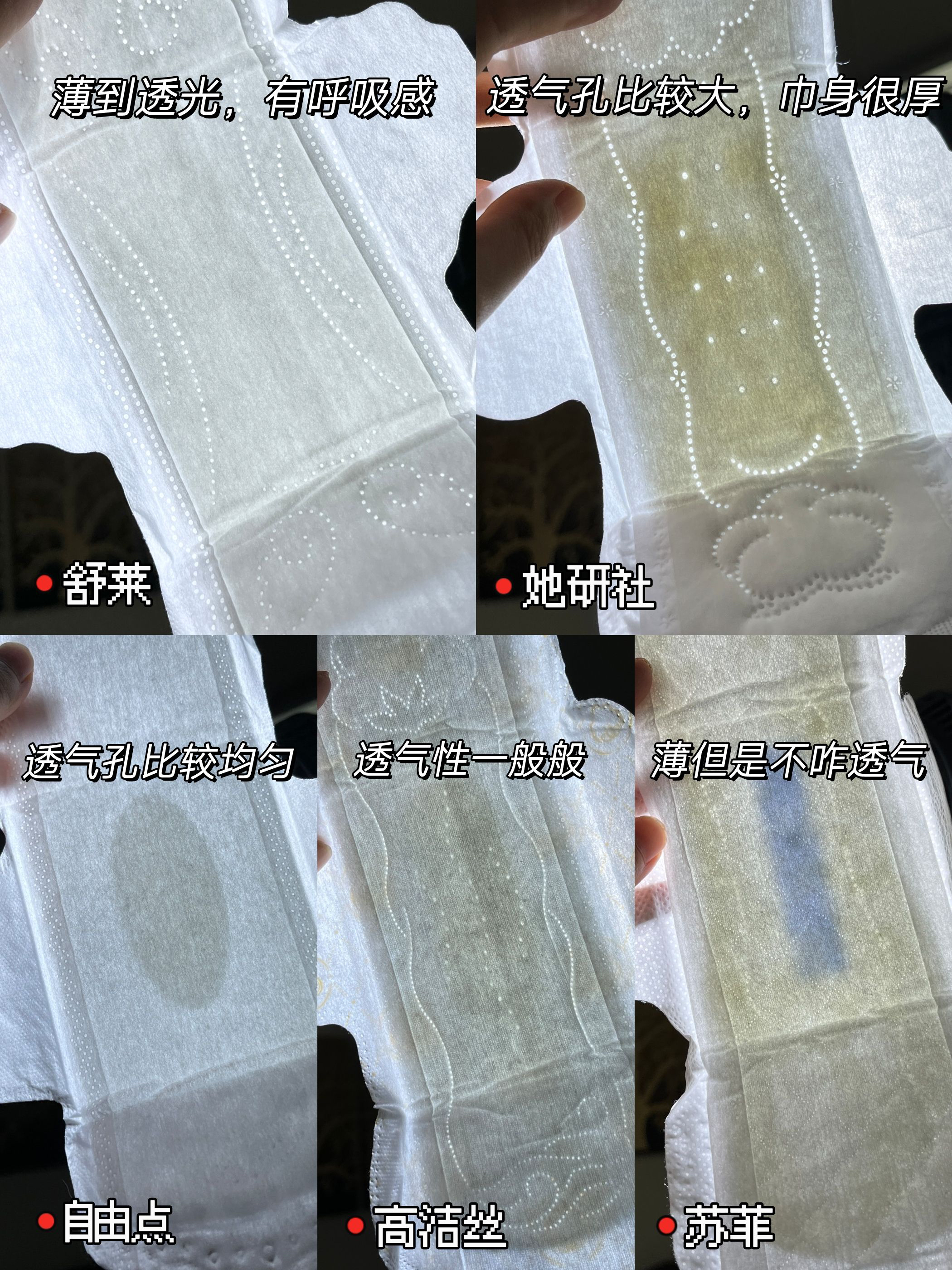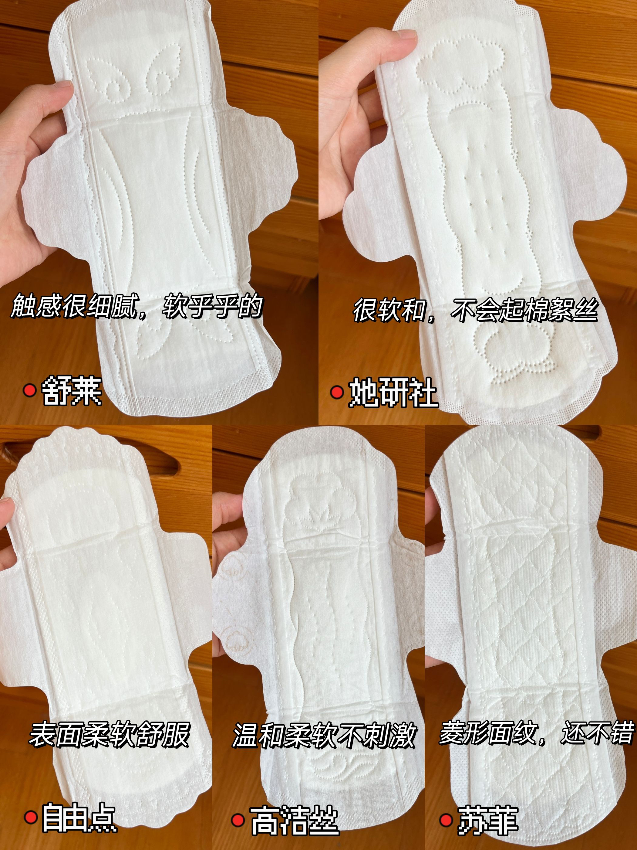 现在要买个好用的卫生巾好难啊😭 每次买跟开盲盒一样 乱七八糟,又闷又容易翘边,弄得私处过敏泛红 你们商家有考虑我们女性的真正需求吗!? 受不了!!自费买了五款回来测评 我不信买不到好用的卫生巾!!! 我的日常需求总共有以下四点 📍轻薄度 巾身和吸收芯越轻薄越好 要不存在感很明显,穿上很别扭 而且凭我的个人经验,越薄的越不容易卷边 像那种厚重的不仅容易变形,还会磨大腿根 📍透气性 每个面层都要有透气...