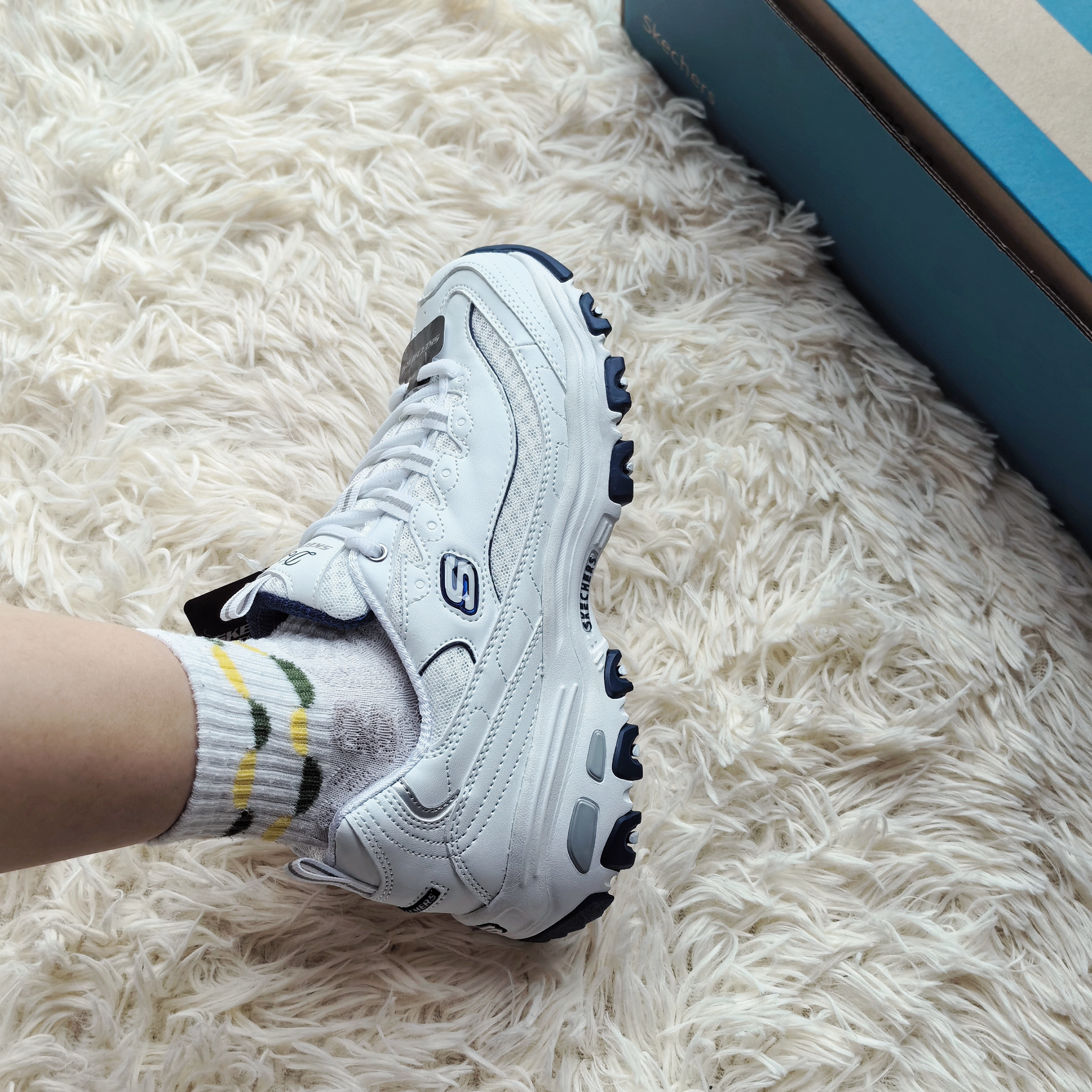 本篇笔记关联了Skechers/斯凯奇 D'Lites 1.0 奶茶熊 熊猫鞋 老爹鞋 闪穿鞋 厚底增高复古缓震百搭 低帮/女款/白色/海军蓝等商品,为用户提供真实的使用体验和购买参考。