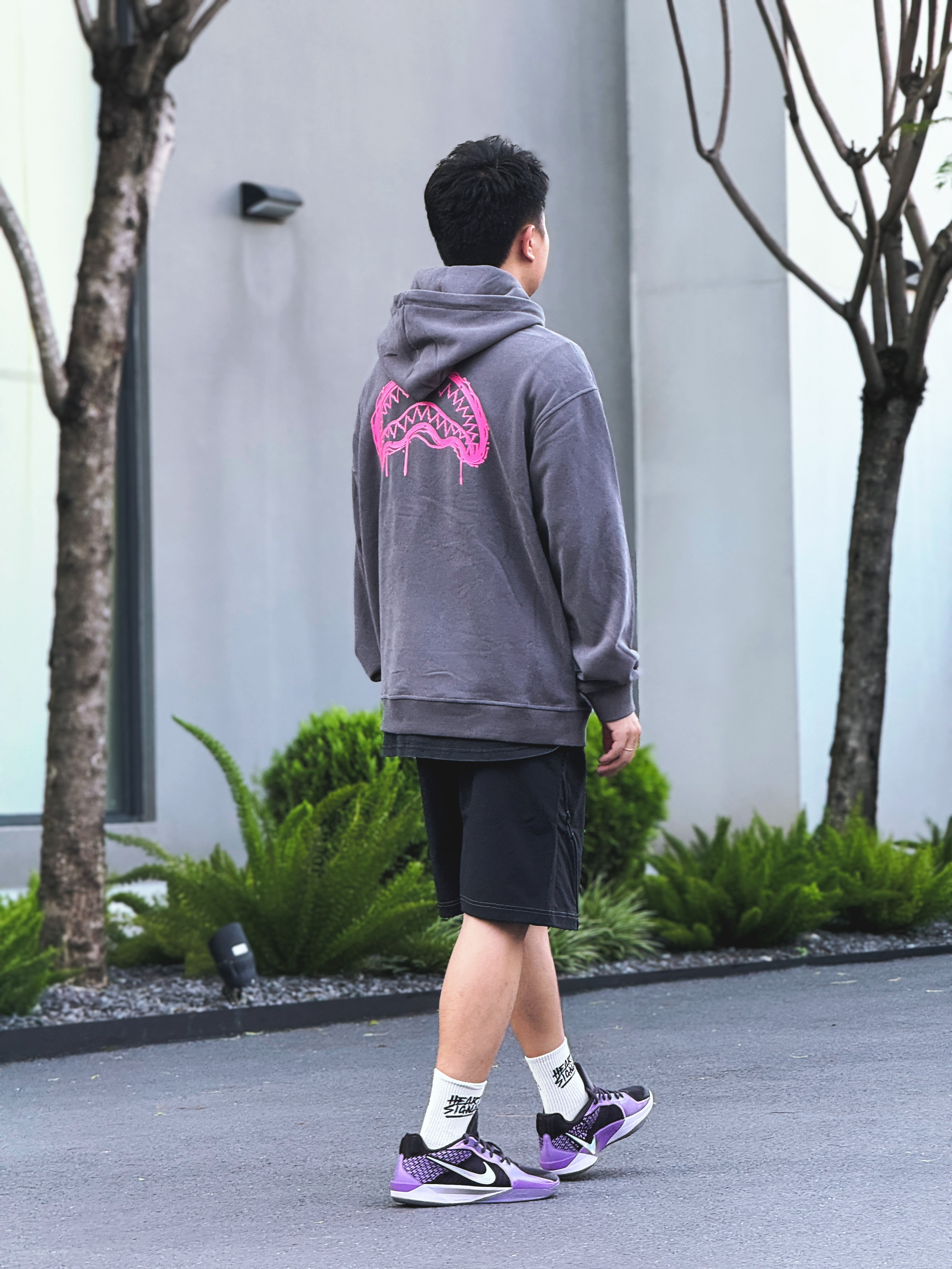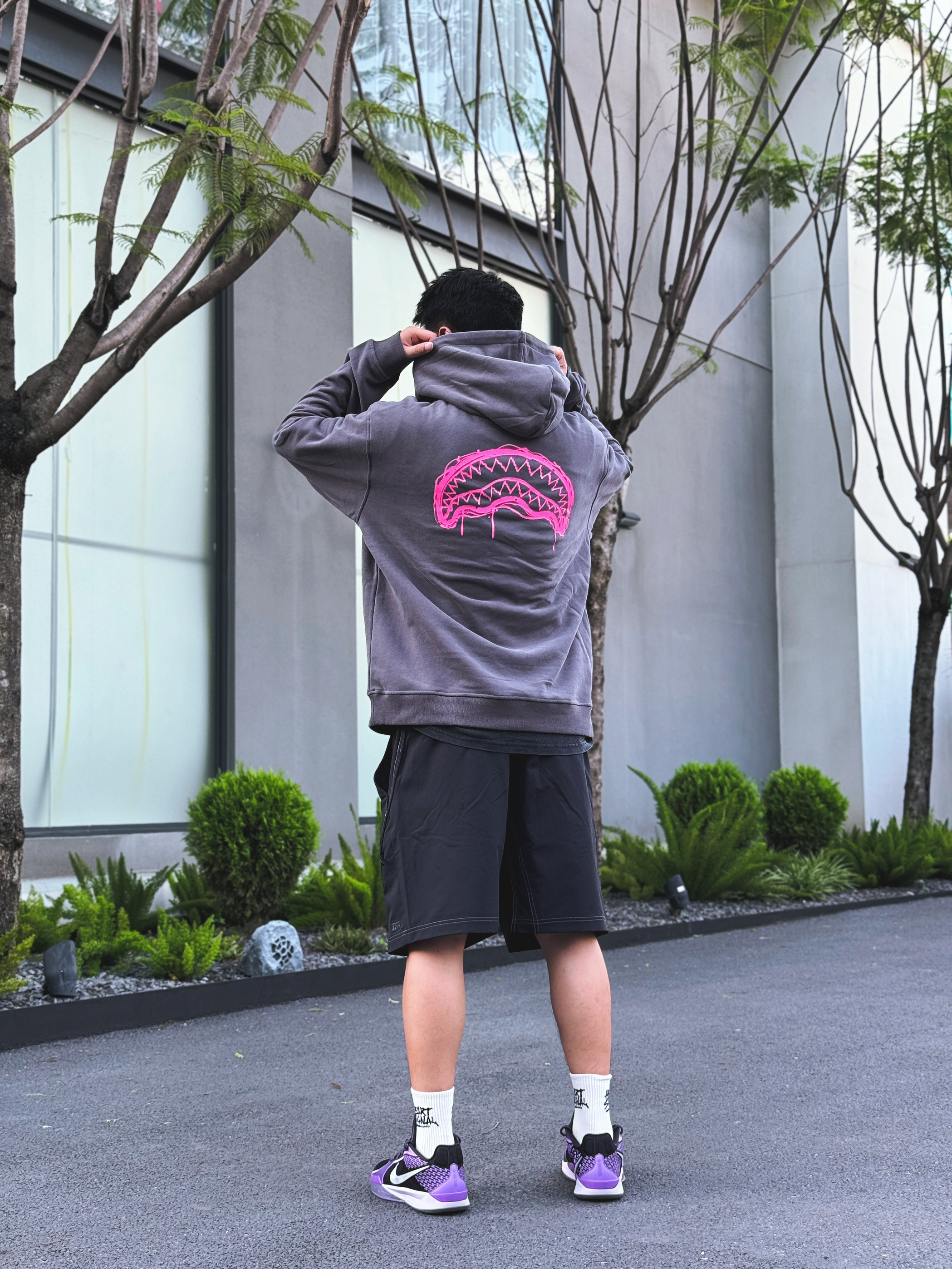 连帽Hoodie搭配短裤🩳 绝对是每个男生都应该学会的搭配之一 内搭叠穿一件T恤衫 可以增加整体造型的层次感👌 夏天虽热🔥 但基本呆在空调房的时间偏多 特别是办公室冷气开得太足反而还会有点冷🥶 如果你也有这样的经历 不妨尝试下夏日叠穿搭配吧😍 今日份穿搭🧍 上身这件Hoodie来自SPRAYGROUND的新品🦈 上身版型是偏Oversized的 就算内搭打底衫也不会觉得臃肿👀 深灰色系也非常百...