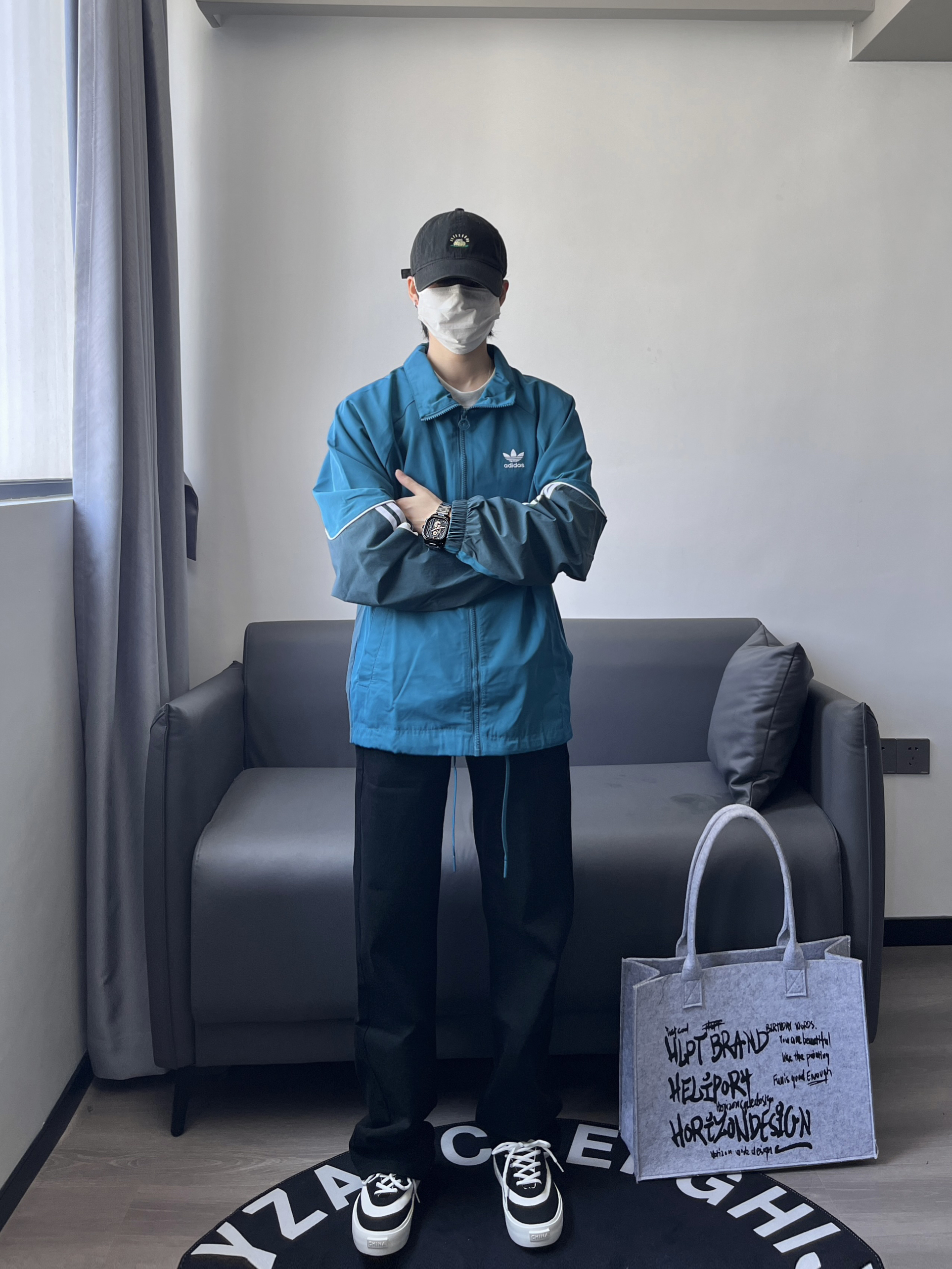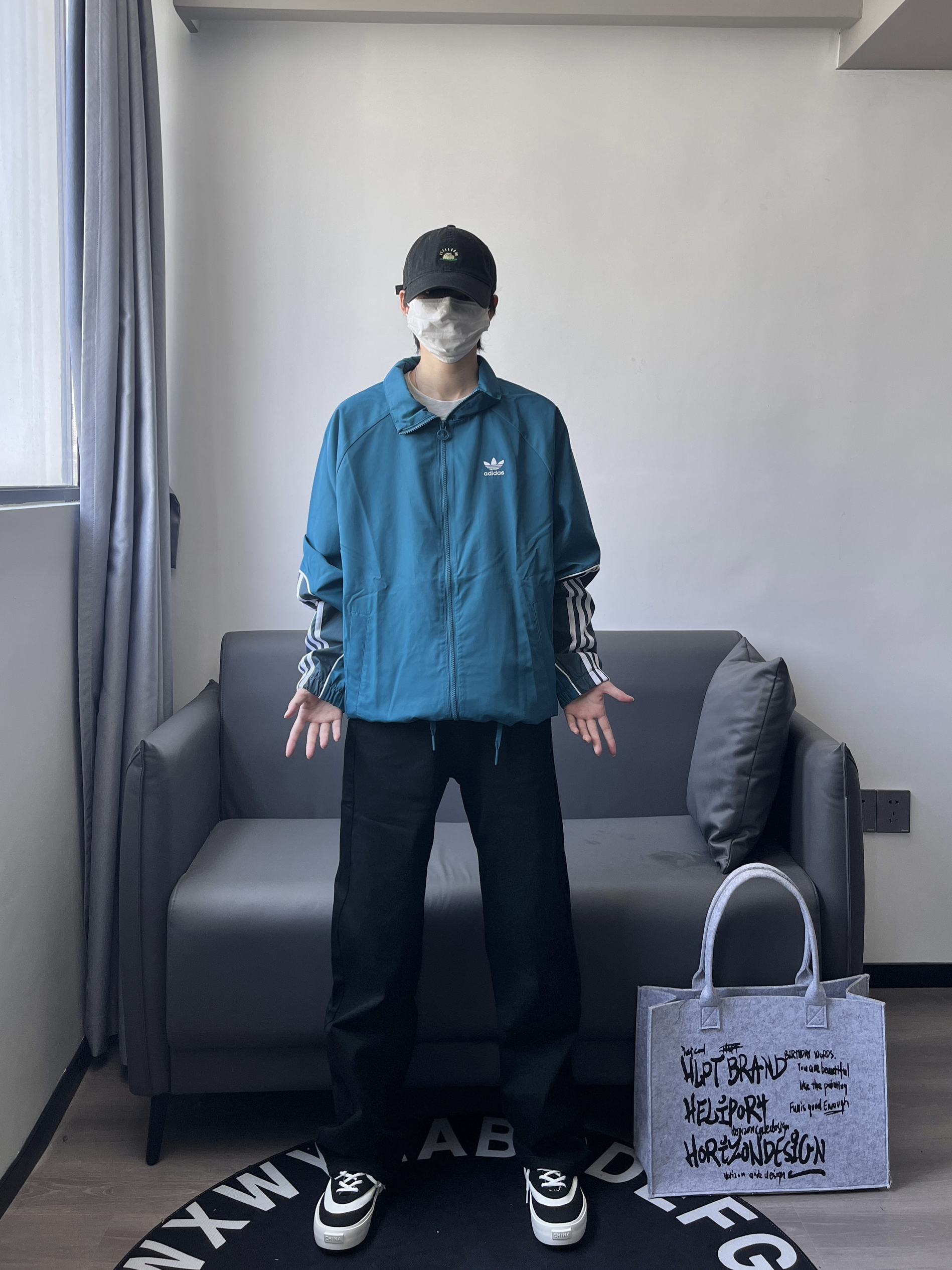 上身一件daidas搭配一条黑色直筒裤👖 今天的一套比较显高又显瘦 相信我!大学生这么穿回头率超高