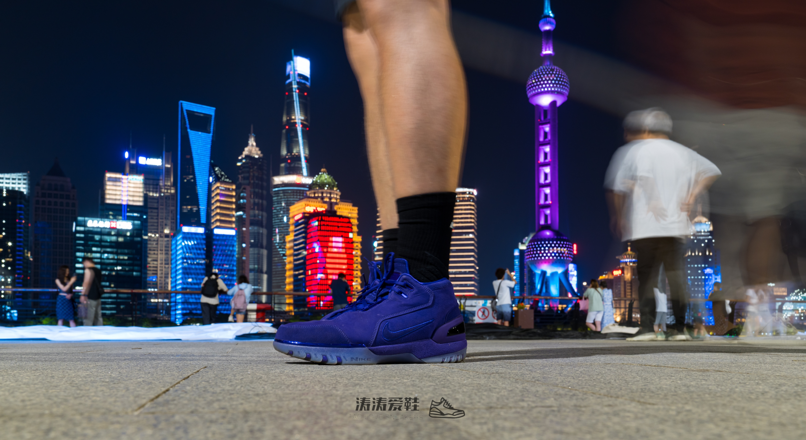 这个AIR ZOOM GENERATION紫色和湖人队的客场球衣配色应该是最相衬的~配上东方明珠的灯光更没得说了👍👍👍