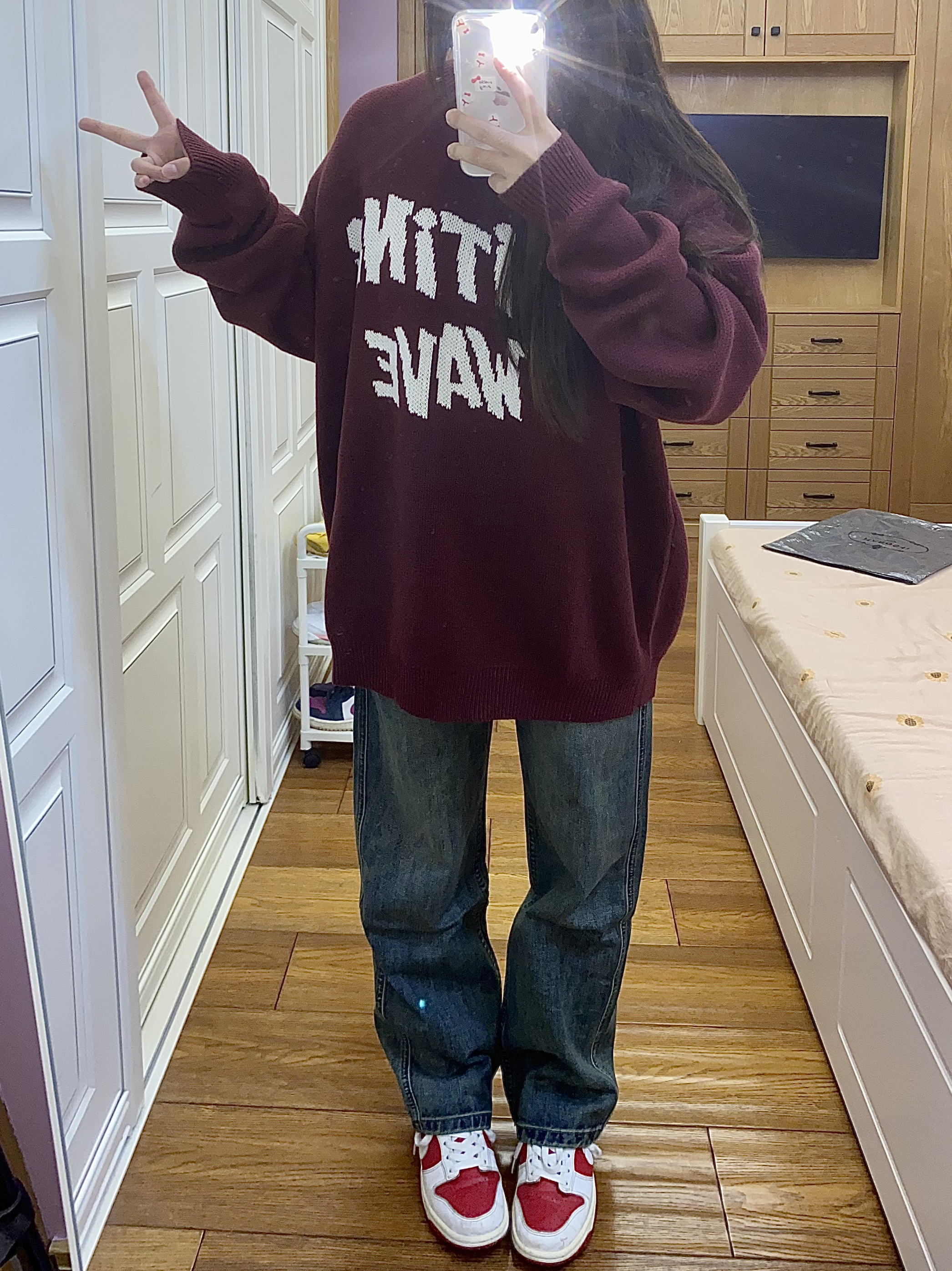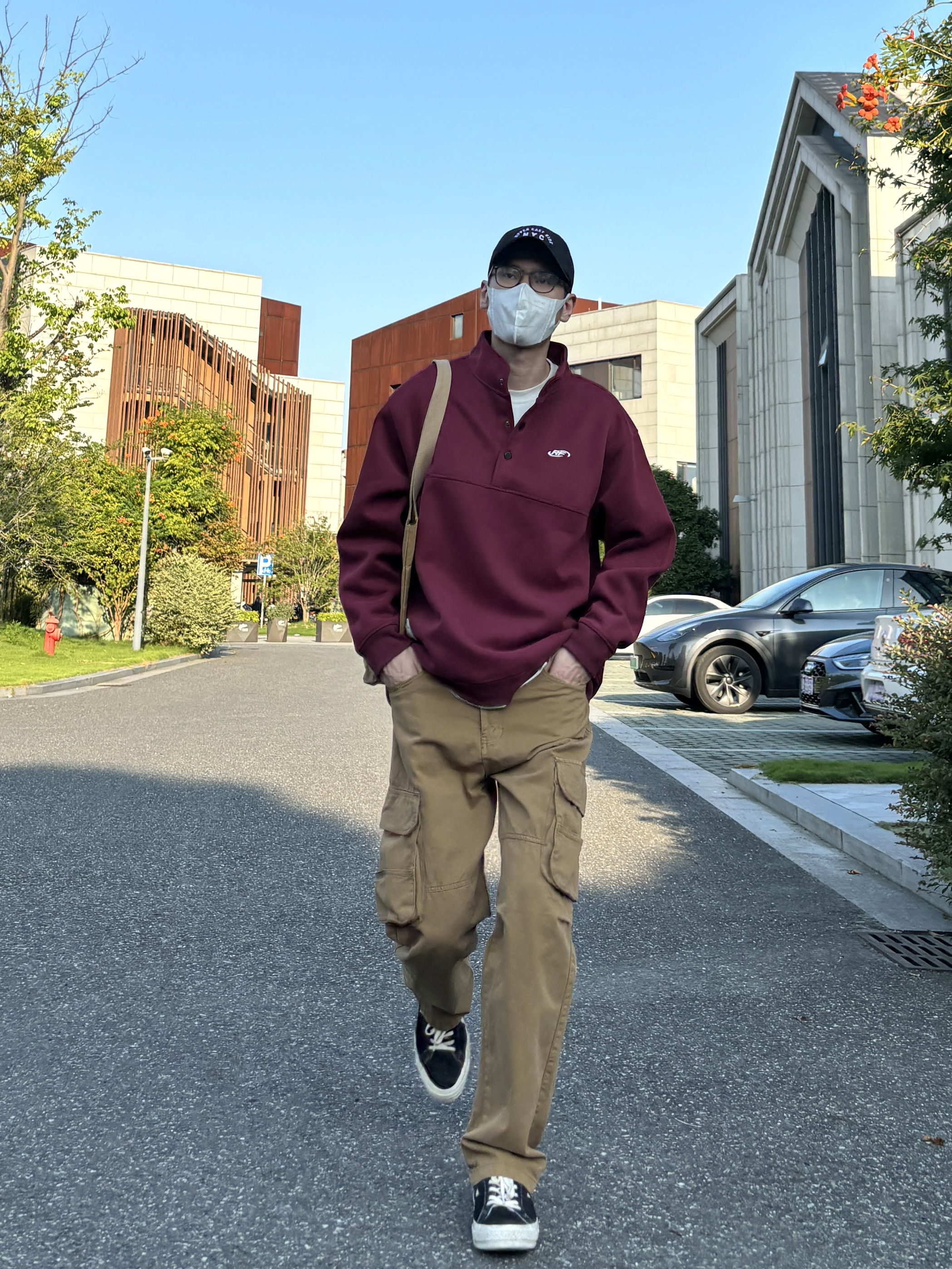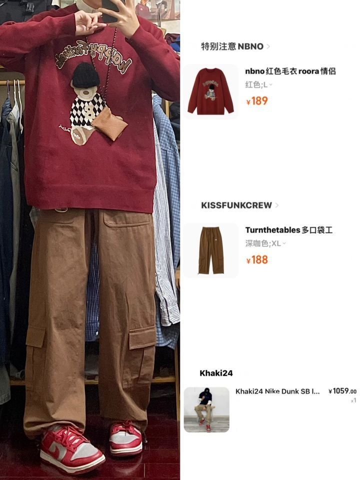 今天这套上衣穿了一件酒红色宽松阔版开胸立领卫衣 ⬇️ 裤子选择卡其色直筒水洗做旧多口袋工装裤 ⬇️ 鞋子上脚经典百搭的匡威one star ⬇️ 最后背一个轻便的油蜡帆布托特包 - 今日搭配 衣服裤子:NICE LILI 鞋子:匡威ONE STAR