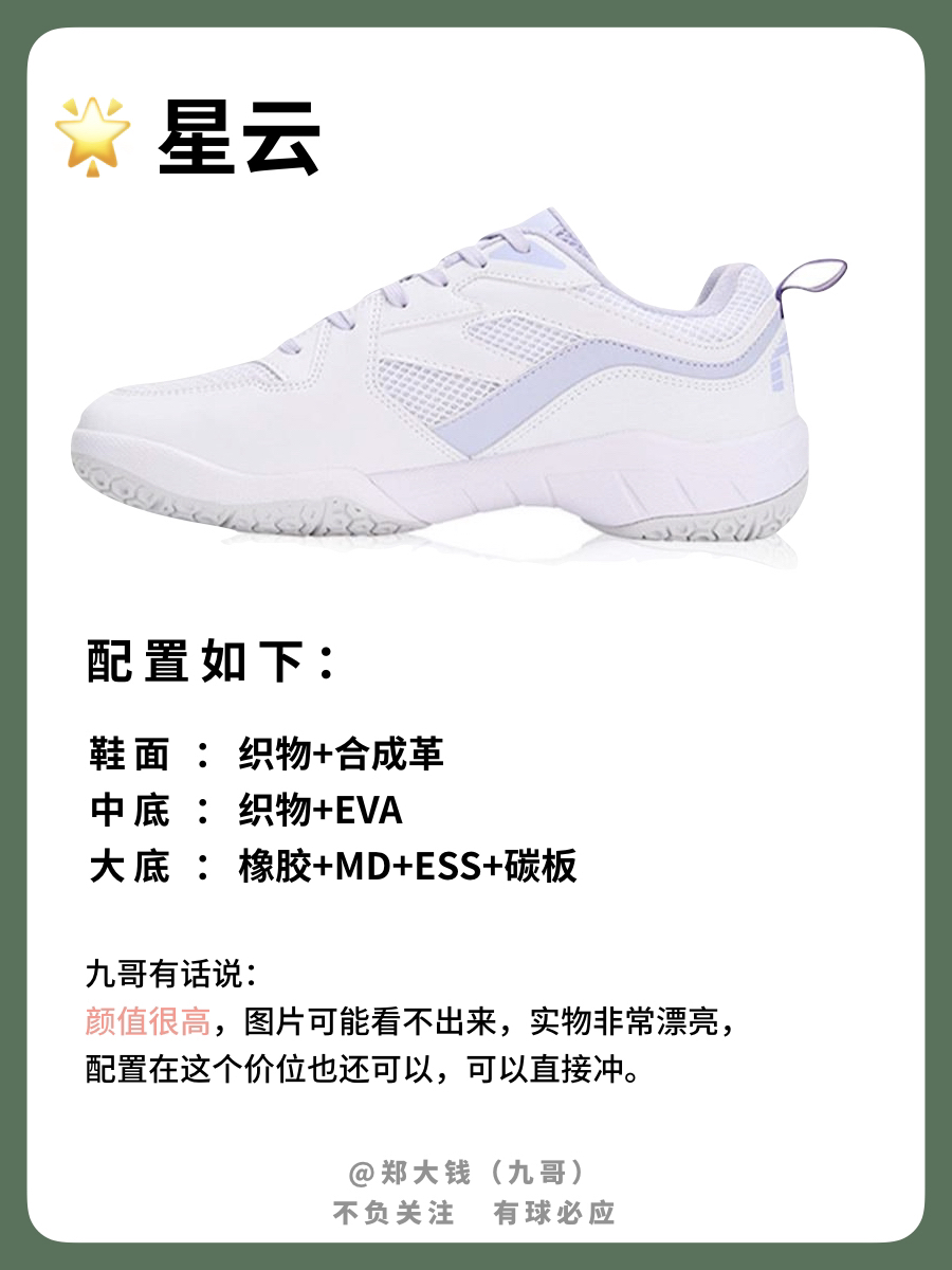 去年也写过这个话题,今年又更新了不少装备,后台问的也多,所幸就出一期。 先出一篇羽毛球鞋和羽毛球拍的合集 如果你有 300 预算,我会建议花 200 买羽毛球鞋,100 买羽毛球拍,因为羽毛球鞋在这项运动中很重要。 200左右羽毛球鞋 星云、缤果 这两双颜值都很高,也比较便宜,新手业余完全够用,适合对颜值有要求的同学。 9200三代td 、闪电 这两双在清货,配置很高,价格很低,性价比拉满,...