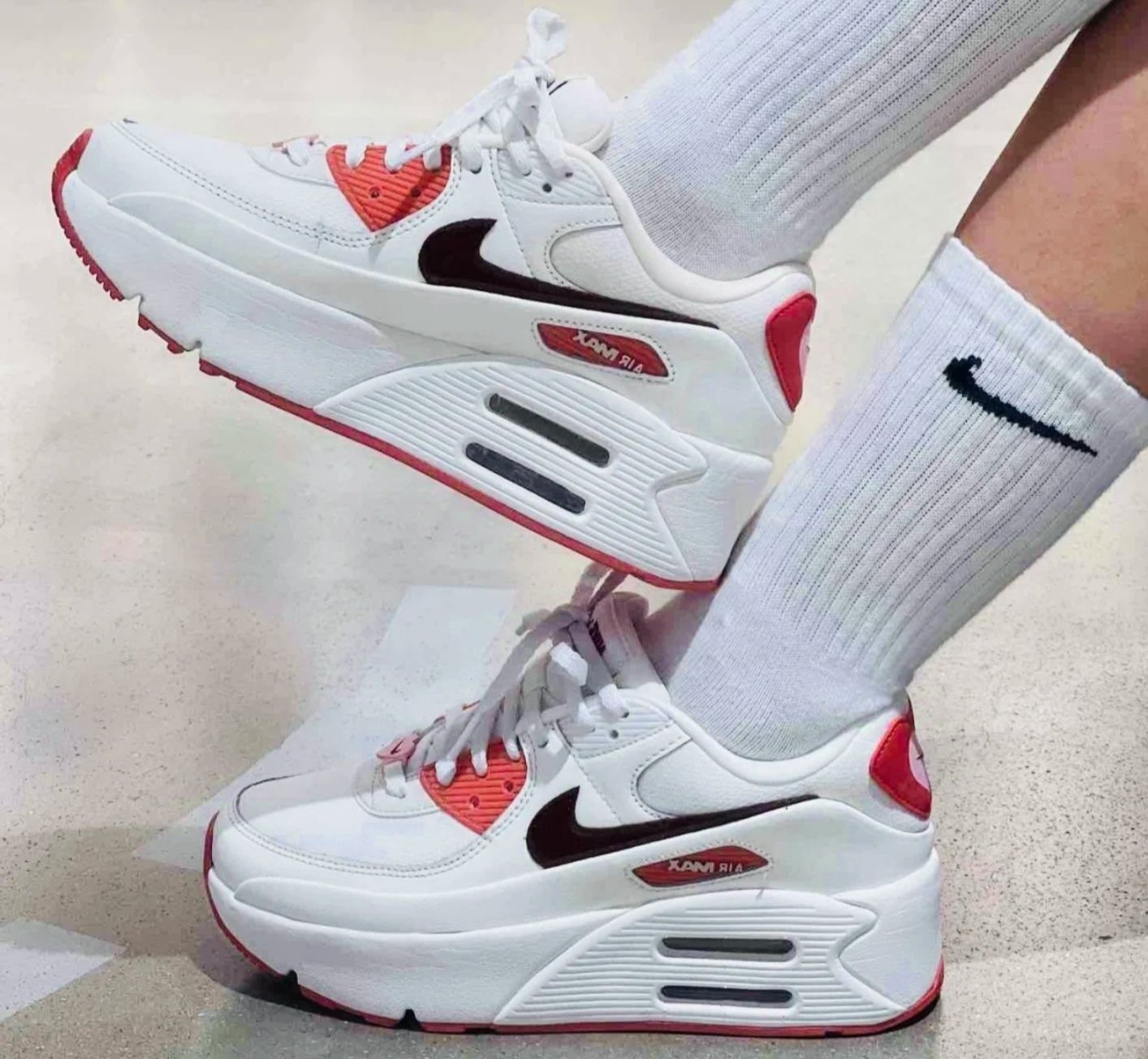 本篇笔记关联了Nike Air Max 90 跑鞋 气垫合成革缓震透气复古增高圆头贴合拼接 LV8/帆白/暗队红等商品,为用户提供真实的使用体验和购买参考。