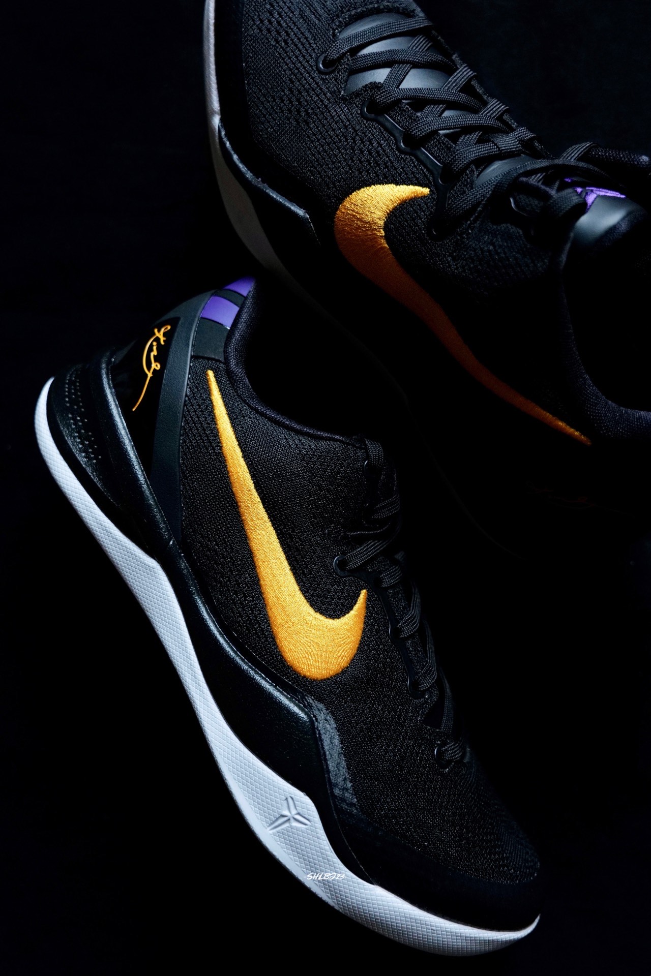 科比8代的配色越来越多啦,继9代Halo配色后,8代带来了紫金客场Lakers Away配色。 这双鞋子配置和工艺上和Halo配色保持一致。配色上致敬了当时的好莱坞之夜,以黑色为主,swoosh和后跟科比签名的湖人金色十分醒目。后跟的紫色剑鞘也有着点睛之笔。 鞋舌和元年的不同,采用了加厚的设计,所以在尺码上有些偏小。 #kobe8紫金 #今天只晒鞋 #打篮球当然要穿实战鞋 #我永远都是科比门...