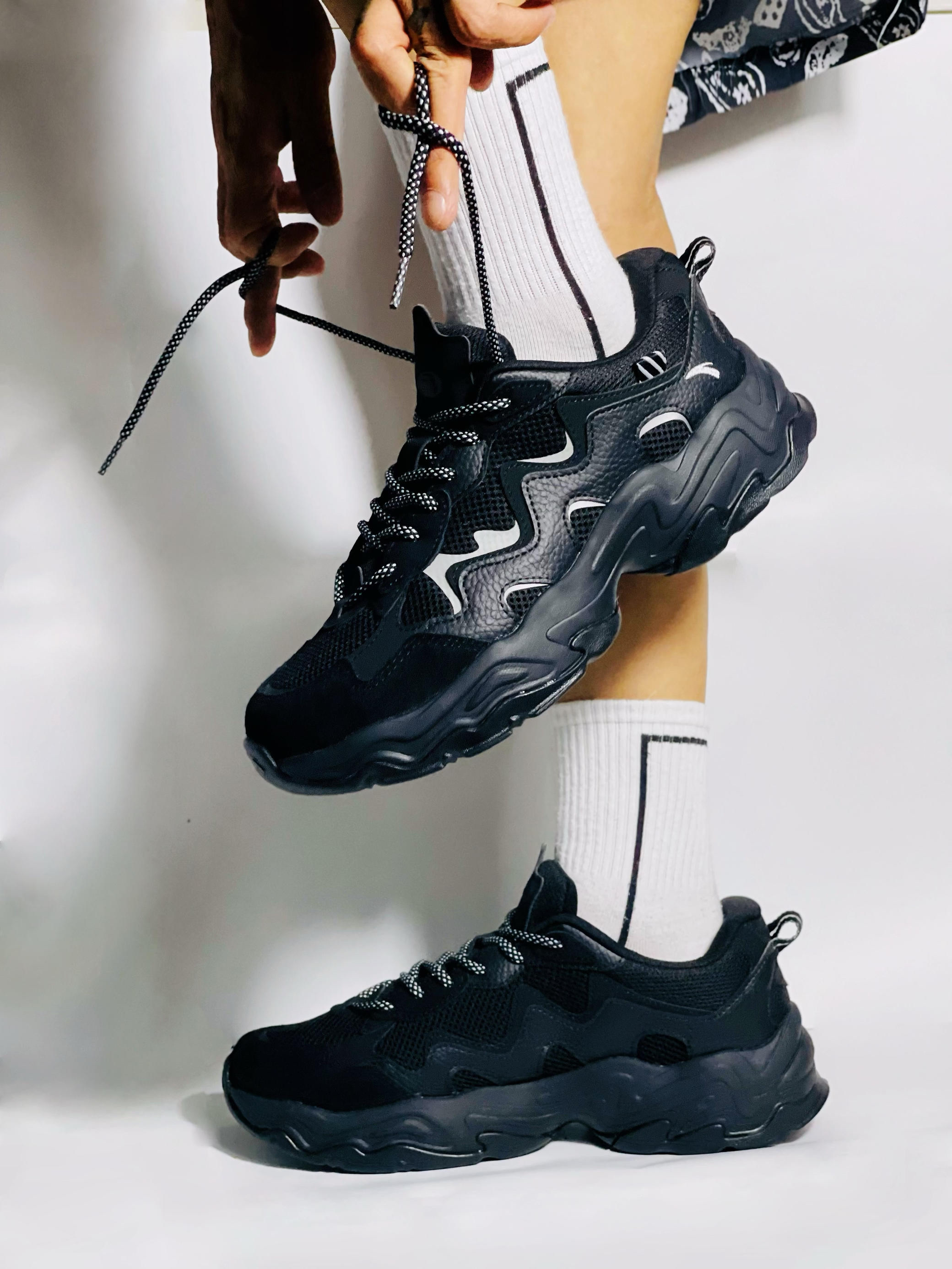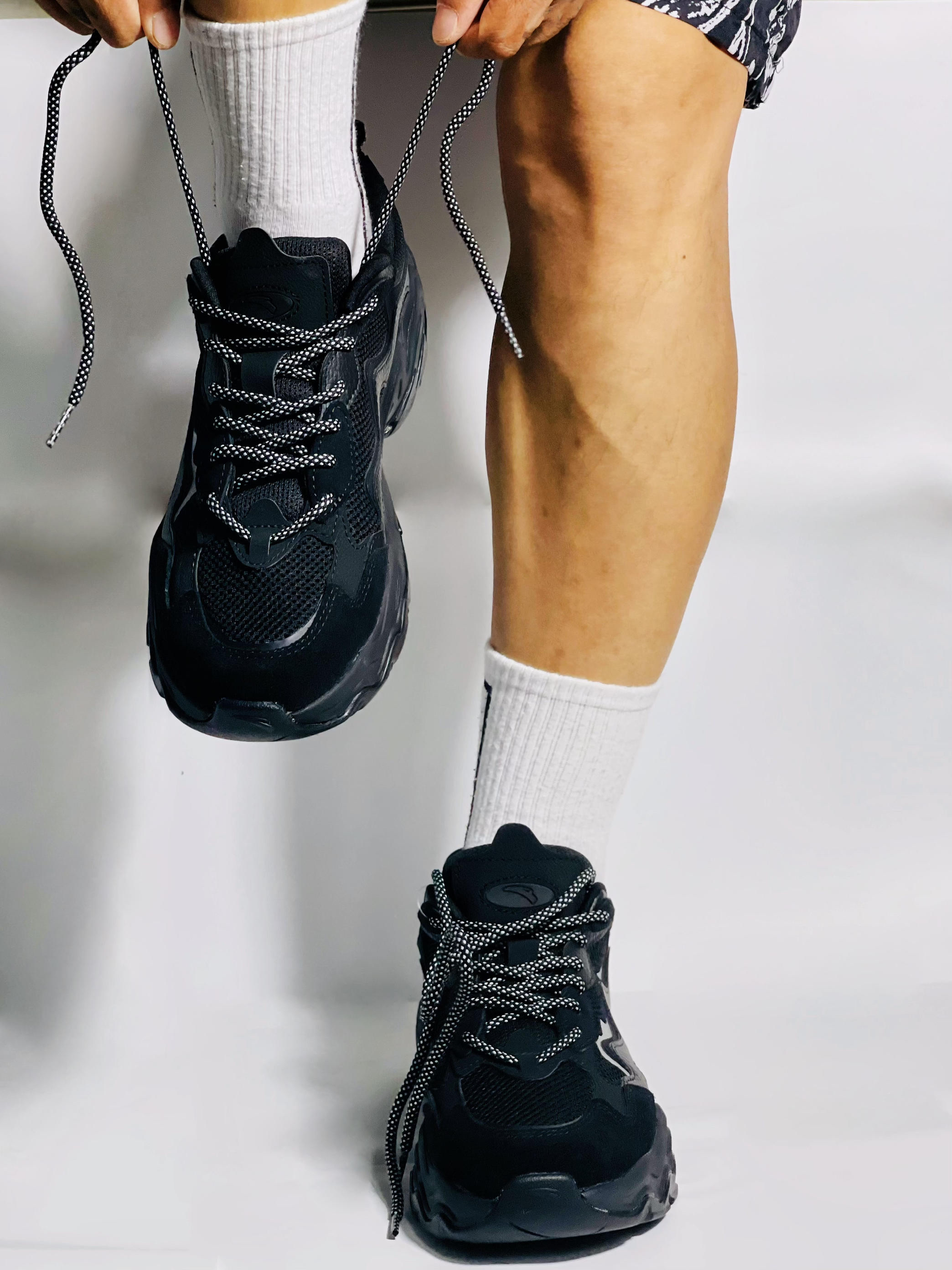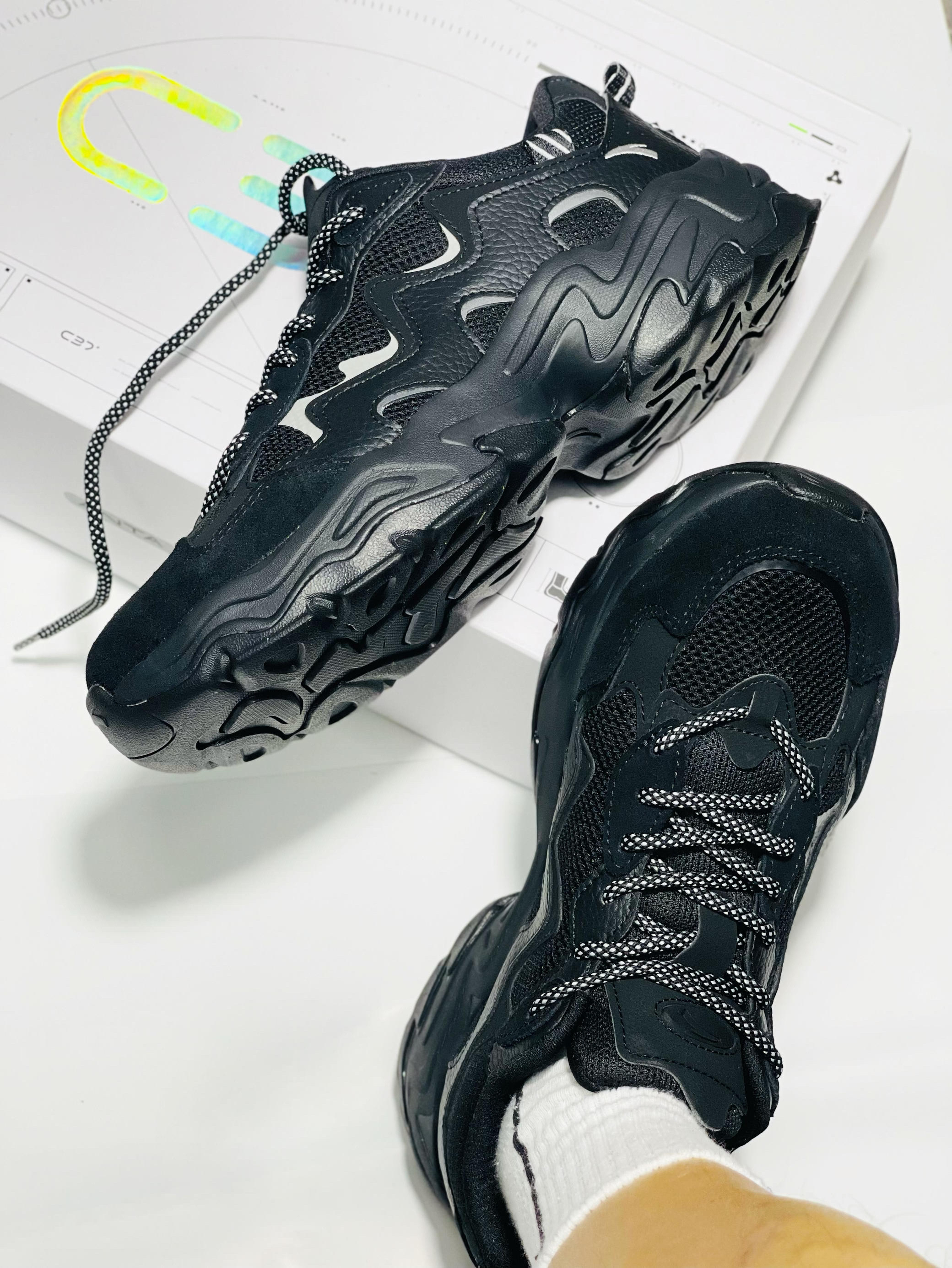 ☑️马上开学了,最近提前准备了这双运动鞋,上脚非常舒适柔软,百搭又很酷炫妥妥大爱~ ☑️整双鞋以通体黑色为主,采用皮革和网面织物及麂皮拼接,质感和透气性非常好,鞋侧的3M反光效果非常出色,中底的纹路和加厚设计,穿上踩感十足增高效果非常不错,橡胶外底防滑耐磨。 ☑️日常穿搭简约大方,任何衣服都能驾驭,通勤或运动穿都很适合,性价比也很高,很适合入秋自穿的国潮好鞋。