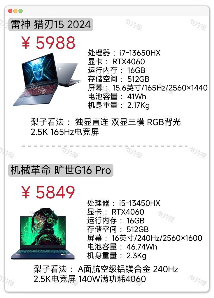 本篇笔记关联了MECHREVO/机械革命 旷世G16Pro RTX4060显卡 2023款 16英寸 游戏本 满血 大屏 高性能 电竞 灰色、MECHREVO/机械革命 蛟龙16Pro RTX4060显卡 2023款 16英寸 游戏本 满功耗 电竞屏 光追 高性能 高刷 白色、ThundeRobot/雷神 猎刃15 RTX4060显卡 2024款 15.6英寸 游戏本 电竞屏 独显 满血性能 编程 高刷 移动工作站 灰色等商品,为用户提供真实的使用体验和购买参考。