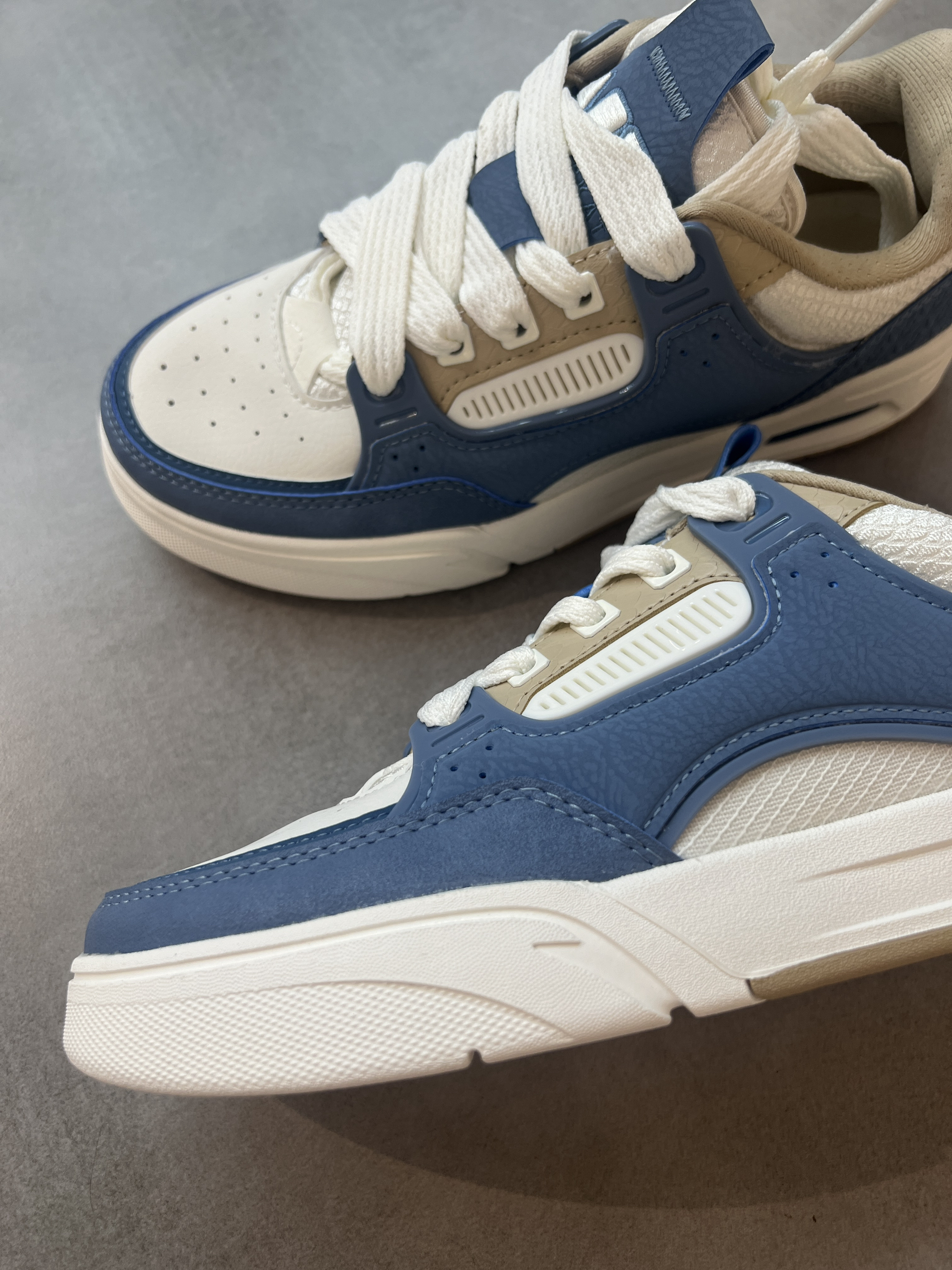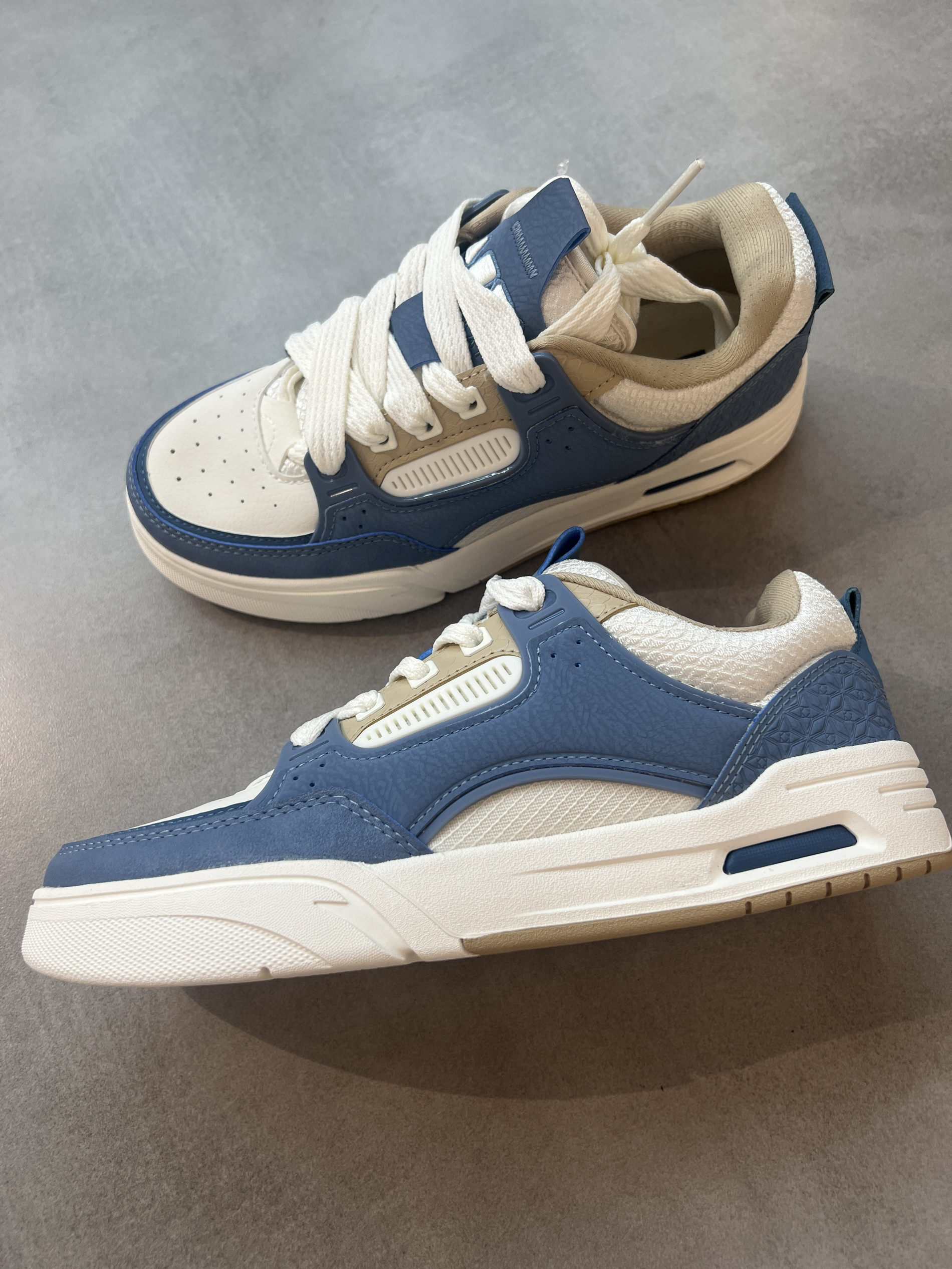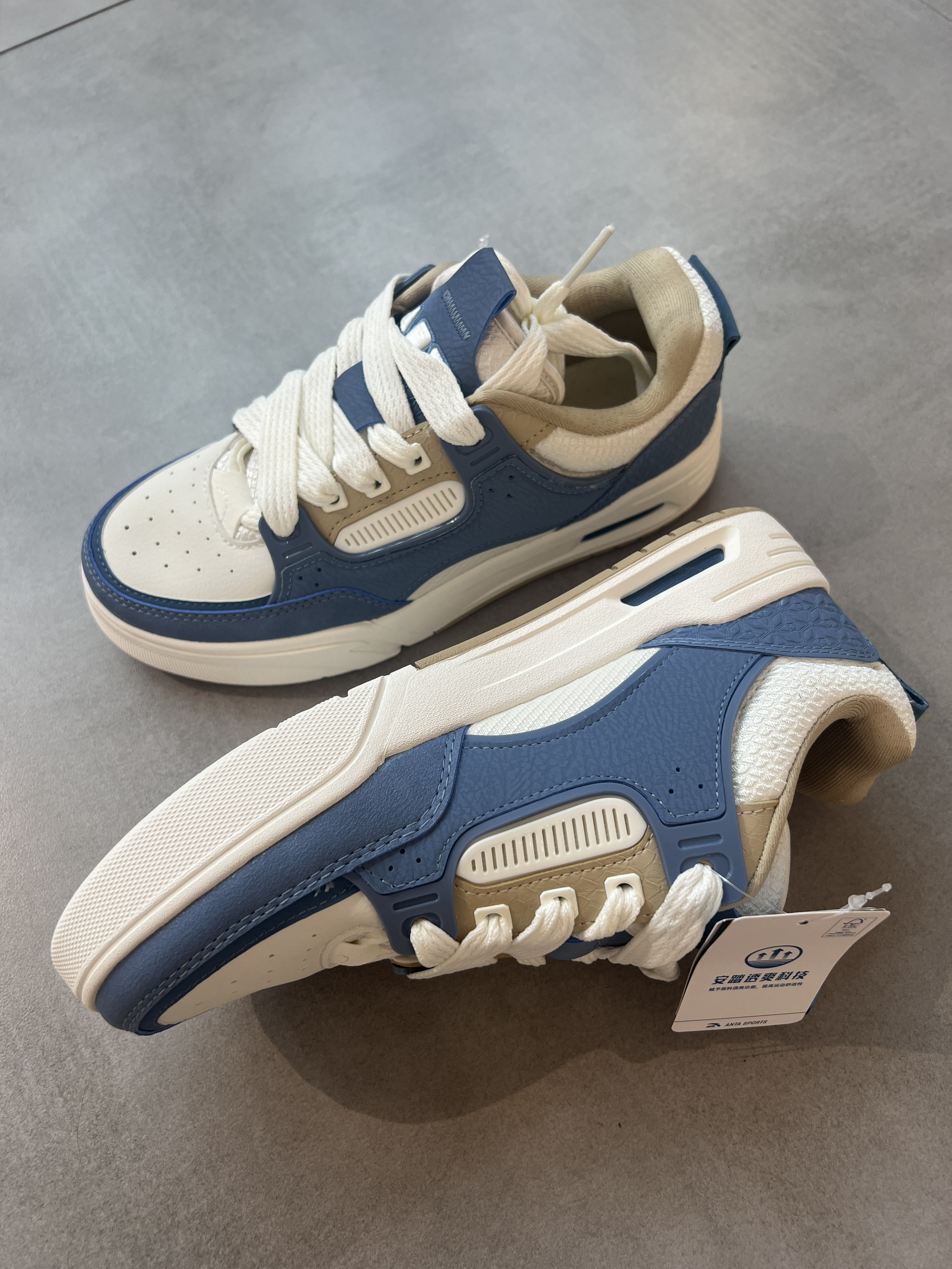 这双安踏骜杰潮流休闲板鞋还不错哦! 蓝白配色好看百搭,面包板鞋即视感,宽脚也能穿,上脚很舒服,日常搭配压马路稳稳的👍 秋冬不怕没板鞋穿咯,妥妥拿下👍