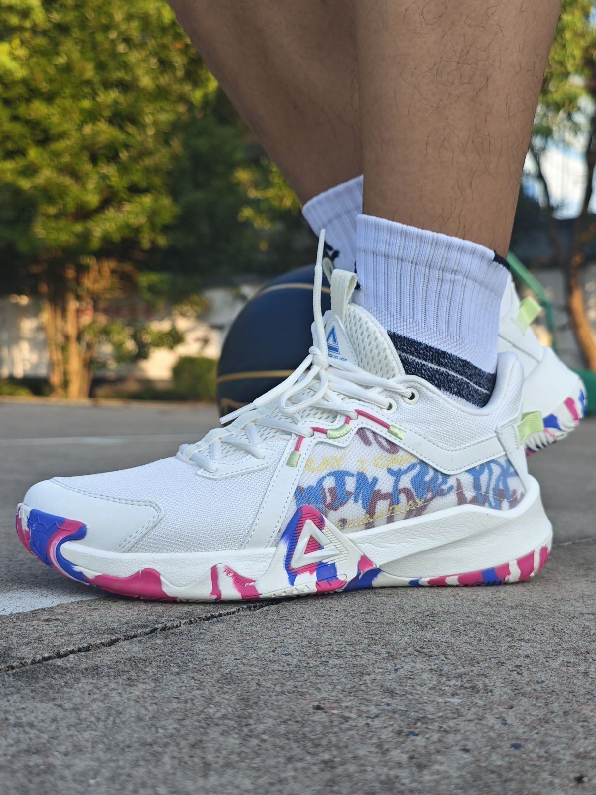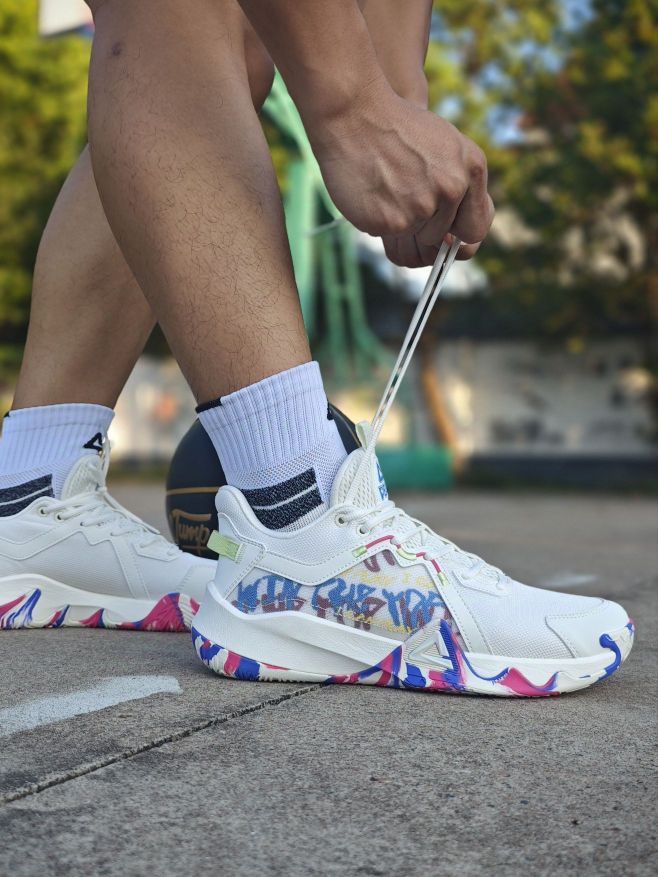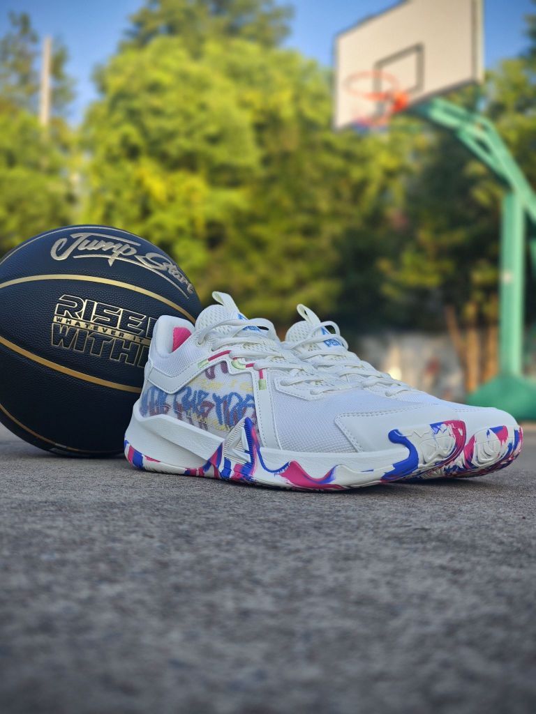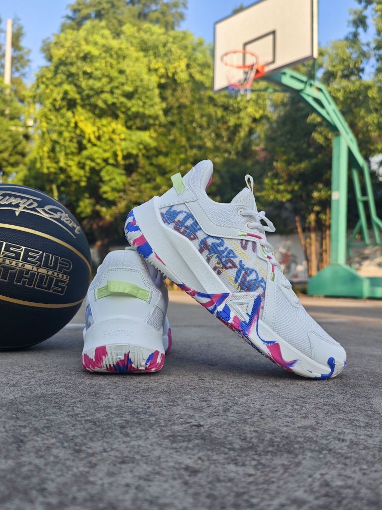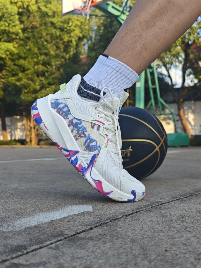 学生党性价比外场篮球鞋选什么?这双匹克狂想曲了解下! 这双缤纷桶配色颜值你打几分?采用的街头涂鸦风格,炫彩纹路设计还挺好看的 鞋面织物搭配皮革材质,透气性也不错, 中底采用的超级魔弹科技,脚感韧弹,比较适合小快灵后卫 橡胶外底,纹路很深,打外场首选 尺码方面建议拍小一码更合适