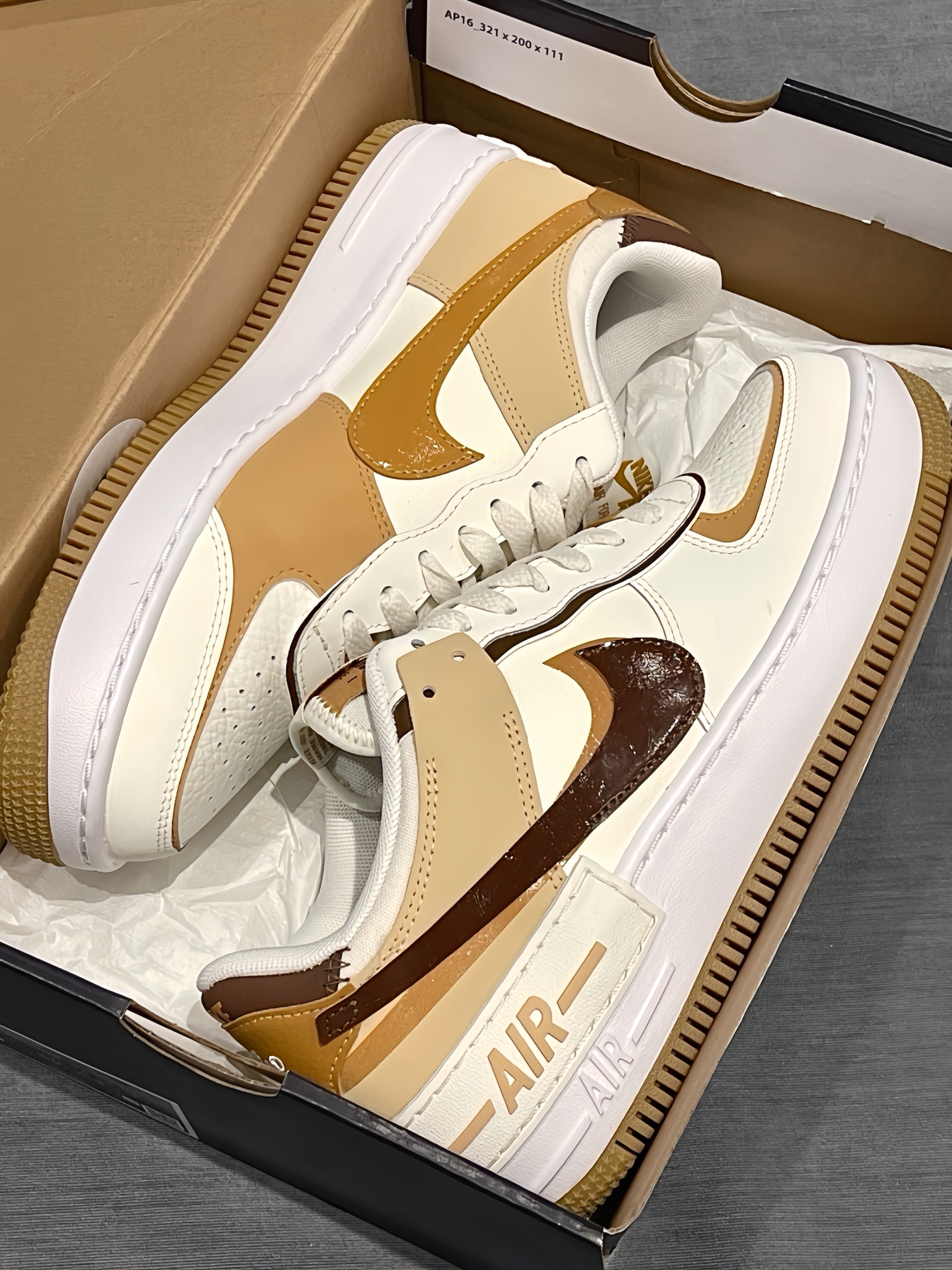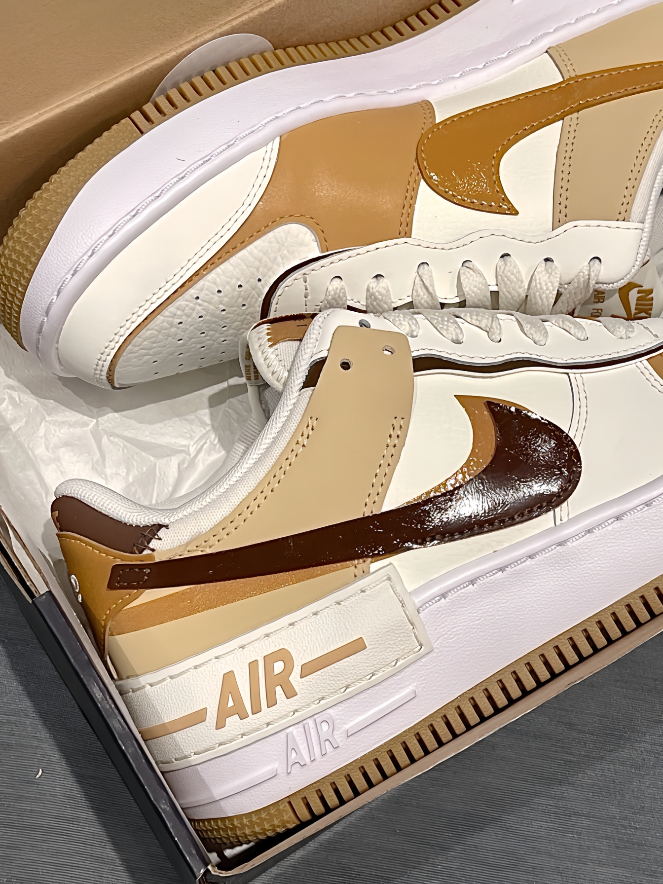 很适合秋季穿搭的白棕AF1 ! ❗️开学季来临 ❗️ 今天开箱一双女生专属款Nike Air Force 1低帮板鞋 👟鞋款整体以白色为主色调 辅以深浅不一的棕色妆点 👟清爽又耐看 柔软的皮质鞋面,舒适还易打理。 👟加厚中底还具有很好的增高效果 这双鞋属于百搭的那一类 搭配牛仔裤或是休闲运动装 都OK!!尺码也不偏 正常码✅