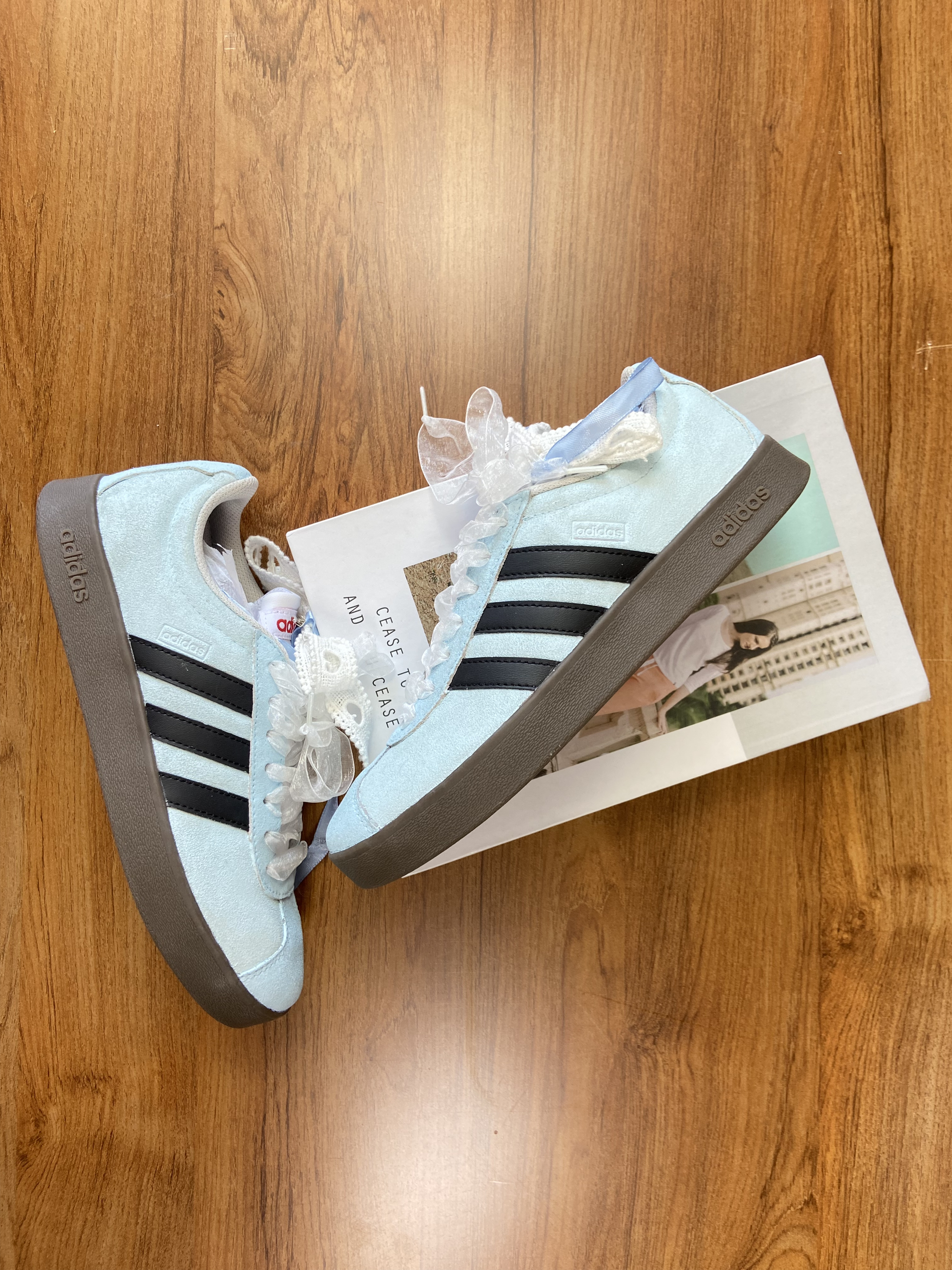 🎉阿迪达斯贝壳头,不只是鞋,它是少女的梦幻魔法棒!💖 月半湾丝带遇上芭蕾风,低帮板鞋也能跳出优雅旋律~ 🎶 穿上它,每一步都散发甜甜魅力,开学变身校园最靓的崽!✨"