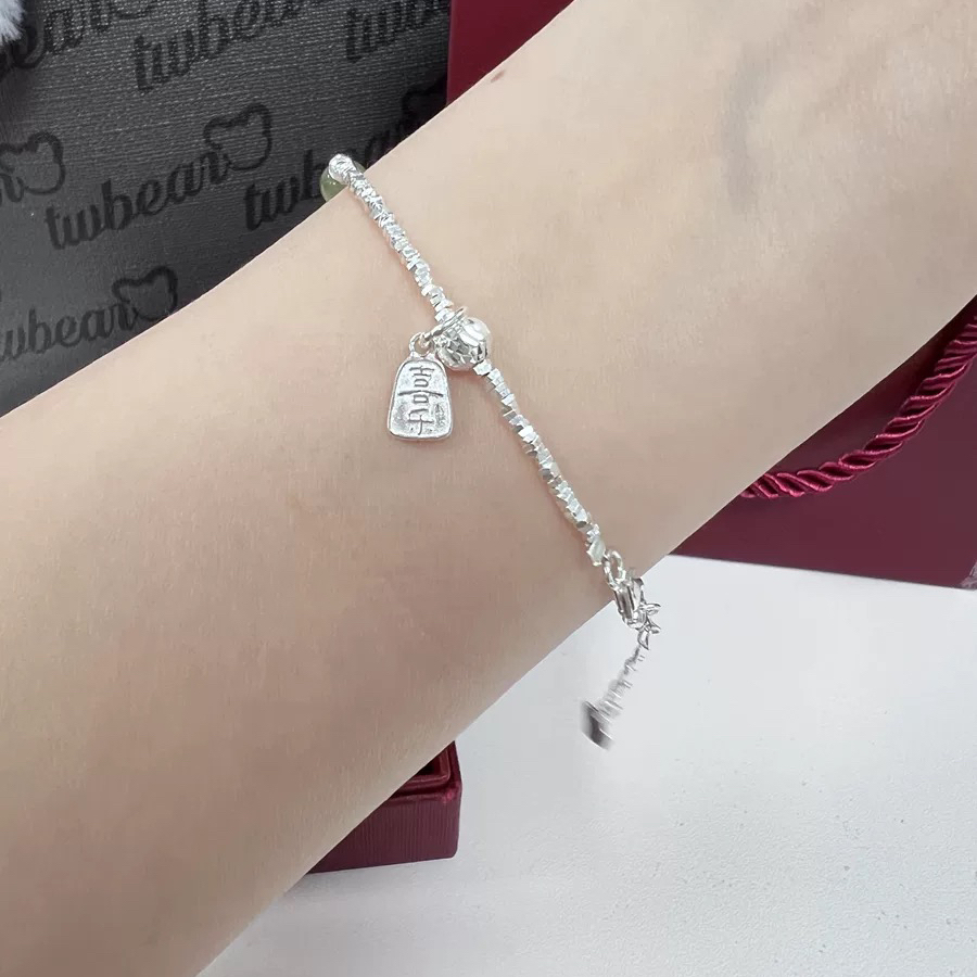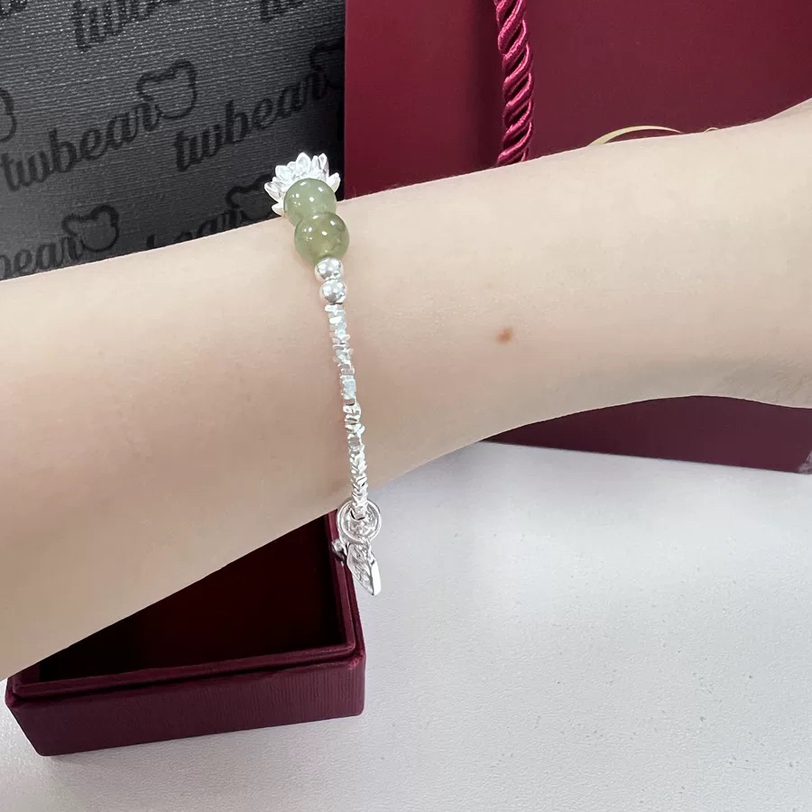 碎碎银的很大气,也很精致,^_^😅和田玉品莲花相互承托很棒✨手链的款式时尚大方 真的是很难不喜欢呀~材质的色泽也很亮,碎银闪闪的,戴着手都显的更白了,喜乐牌的寓意也很好,特别满意💕💕