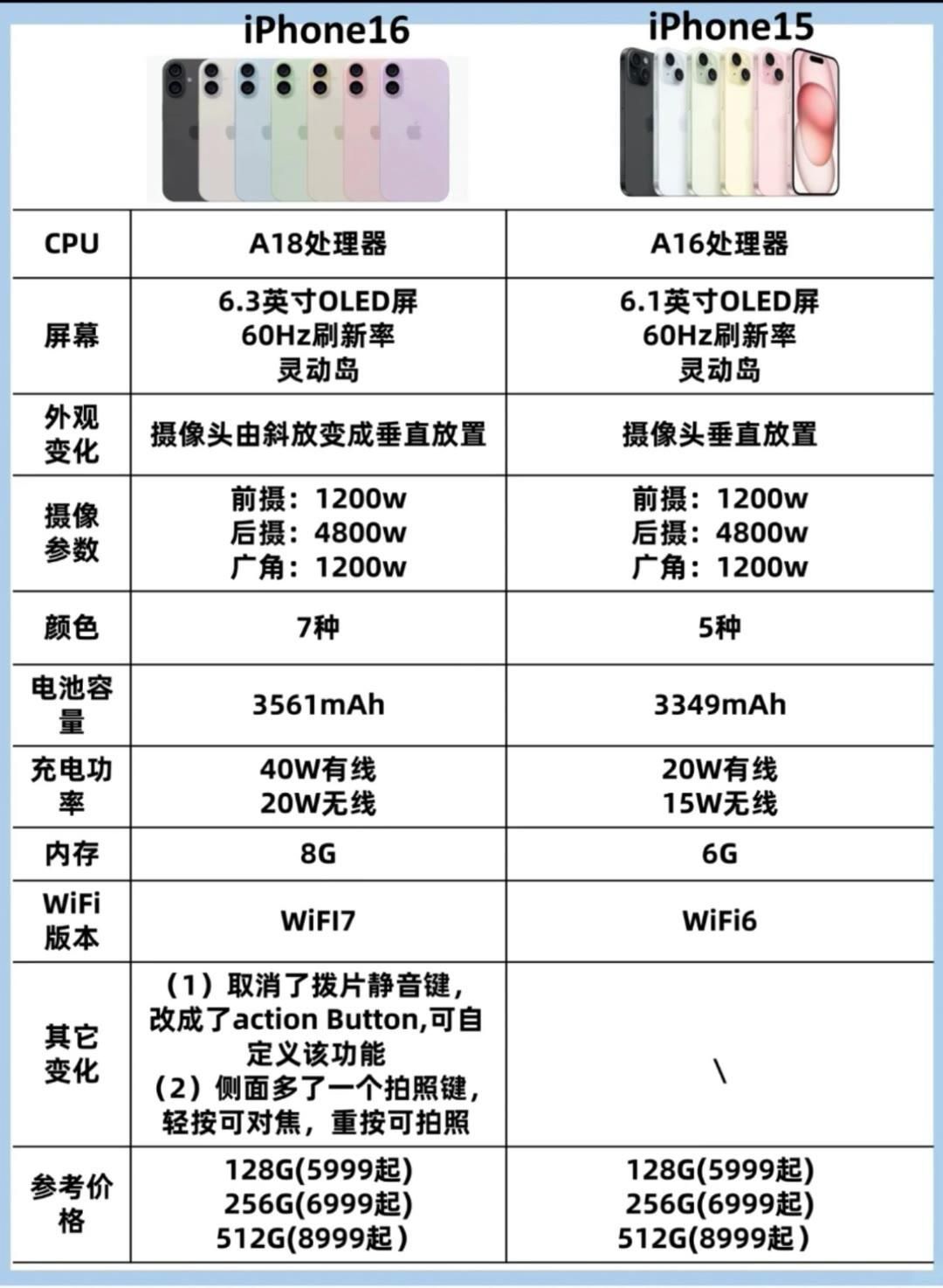 📱iPhone 16 和 15 系列对比来啦!性能与价格全知道😎 🎈性能方面: - 处理器:iPhone 16 预计将搭载更先进的 3nm 工艺 A18 芯片,比起 iPhone 15 所配备的 A16 Bionic 芯片,在运行速度、操作体验上会有显著提升,无论是运行大型应用、复杂计算还是玩高帧率游戏都能更轻松应对。 - 摄像头:iPhone 16 可能在细节捕捉和暗光环境拍照方面有提升。而 i...