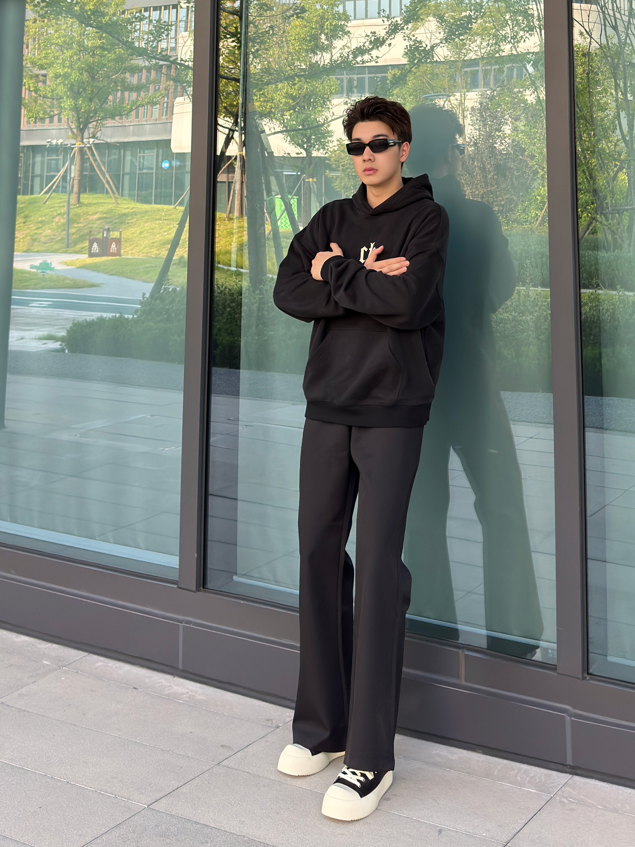今日穿搭分享来啦🎉 👔 CHINISM 连帽卫衣 衣服面料摸着很有质感,版型上身很宽松,样式设计 穿出来很简约大气,这个初秋穿这件简约帅气的连帽卫衣真的太合适不过啦~ 👖 KREATE 微喇西裤 裤子厚度适中,面料摸着很轻柔,上身很贴身,微喇的版型穿出来更修饰腿型,显高显腿长,初秋的黑色系穿搭少不了这套😍 👟 KREATE 厚底板鞋 今天的分享就到这儿啦🎉