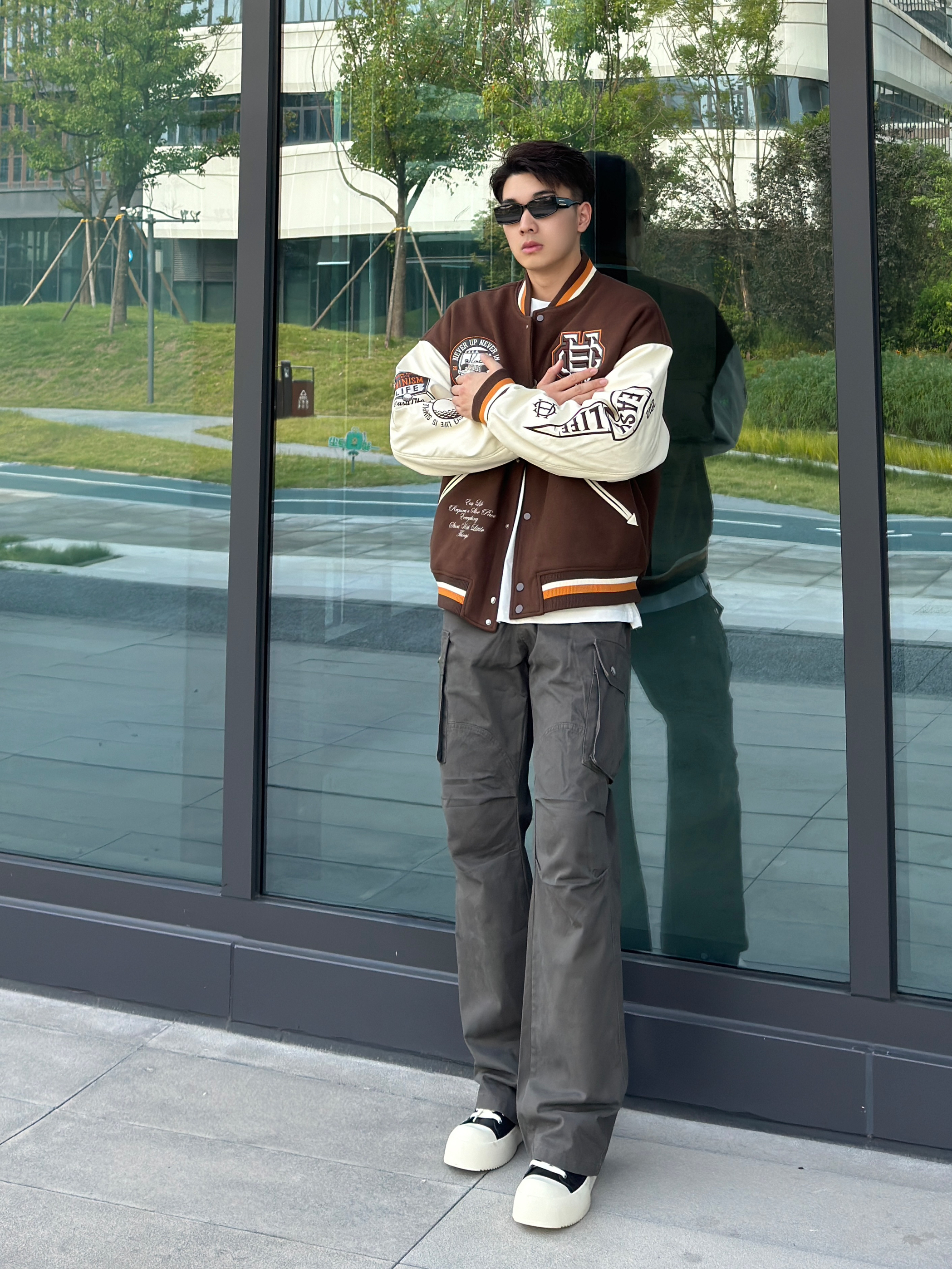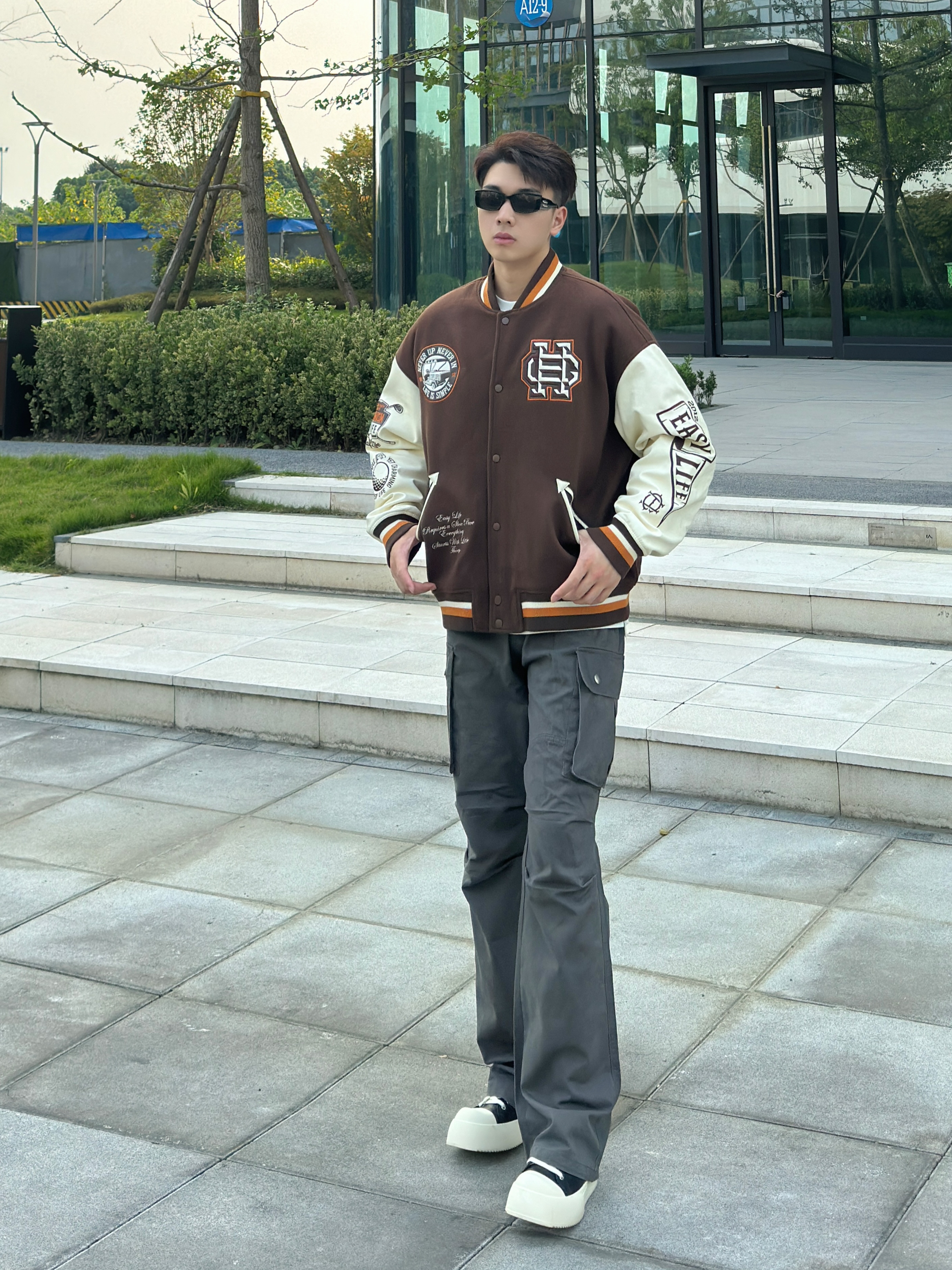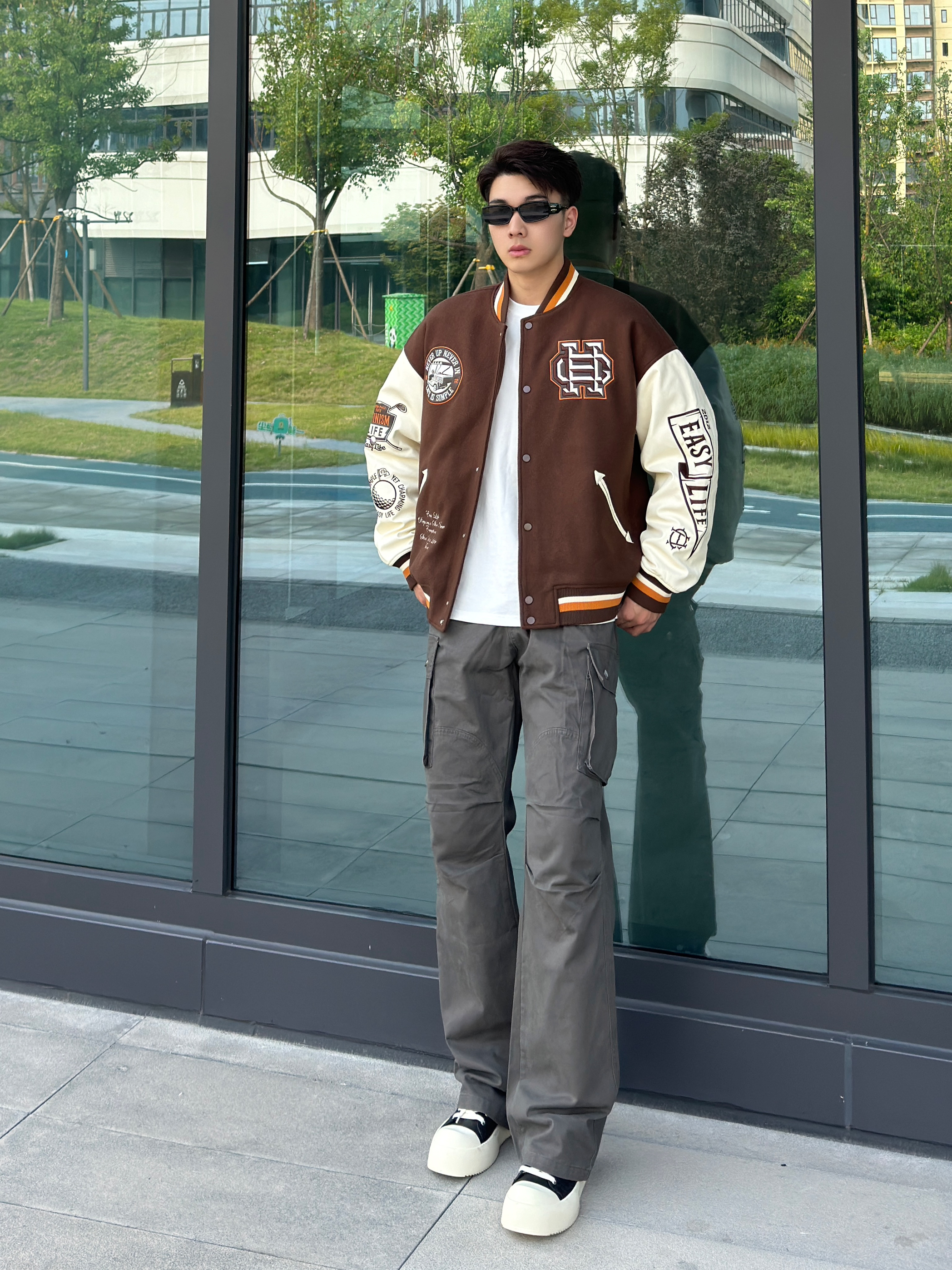 今日穿搭分享来啦🎉 👔 Chinism 刺绣棒球服 衣服质感上身很棒,面料摸着很舒服,颜色上身搭配出来显白又显帅,穿出来有点美式复古的感觉,尺码版型很宽松,搭配一条显高的微喇工装长裤,初秋这样穿帅就完事了~ 今天的分享就到这儿啦🎉