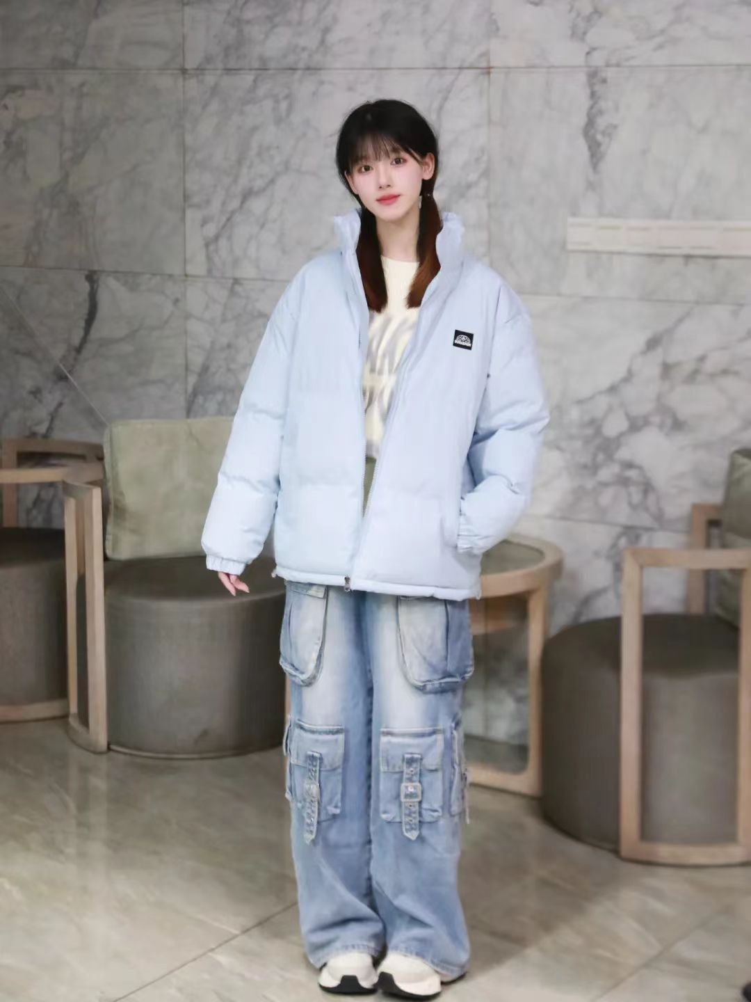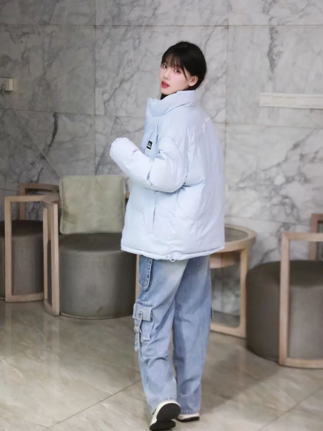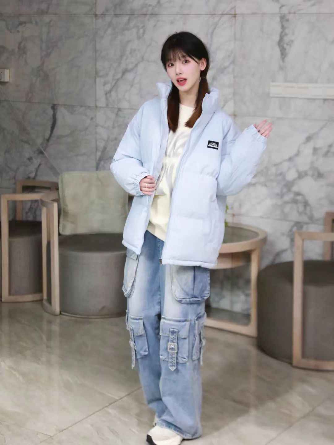 面包棉服+牛仔裤 这样穿太chill啦 视觉系小清新配色好爱呀🧊 秋冬棉服也可以好看又保暖~