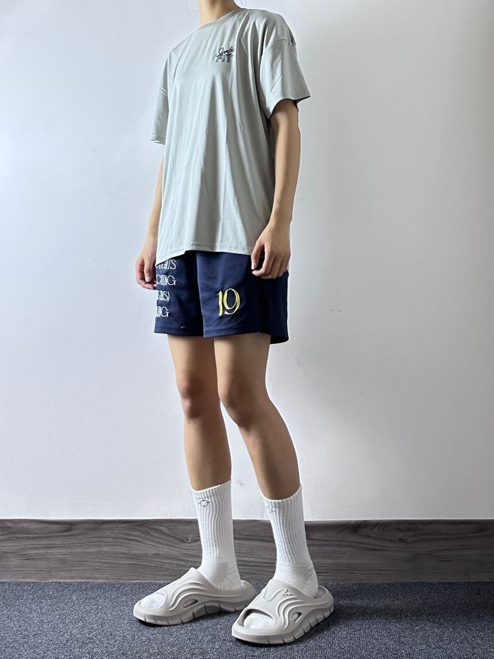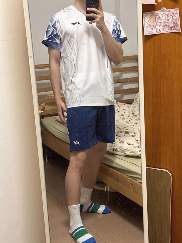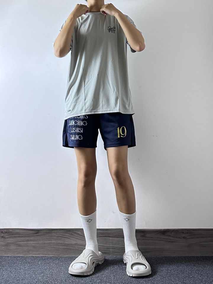 『今天搭配的是投篮服➕短裤』😜 👔: slamble ▪️上身选择一件灰色投篮服 前面小logo 简约大方 很喜欢这个灰色 挺高级滴 速干面料 小领口 舒适亲肤 轻盈透气不闷热 ▪️下身搭配一条蓝色短裤 一套下来出门打球很棒噢~ 171cm&58kg丨👔丨M码 (图片来自博主:吴家鱼)