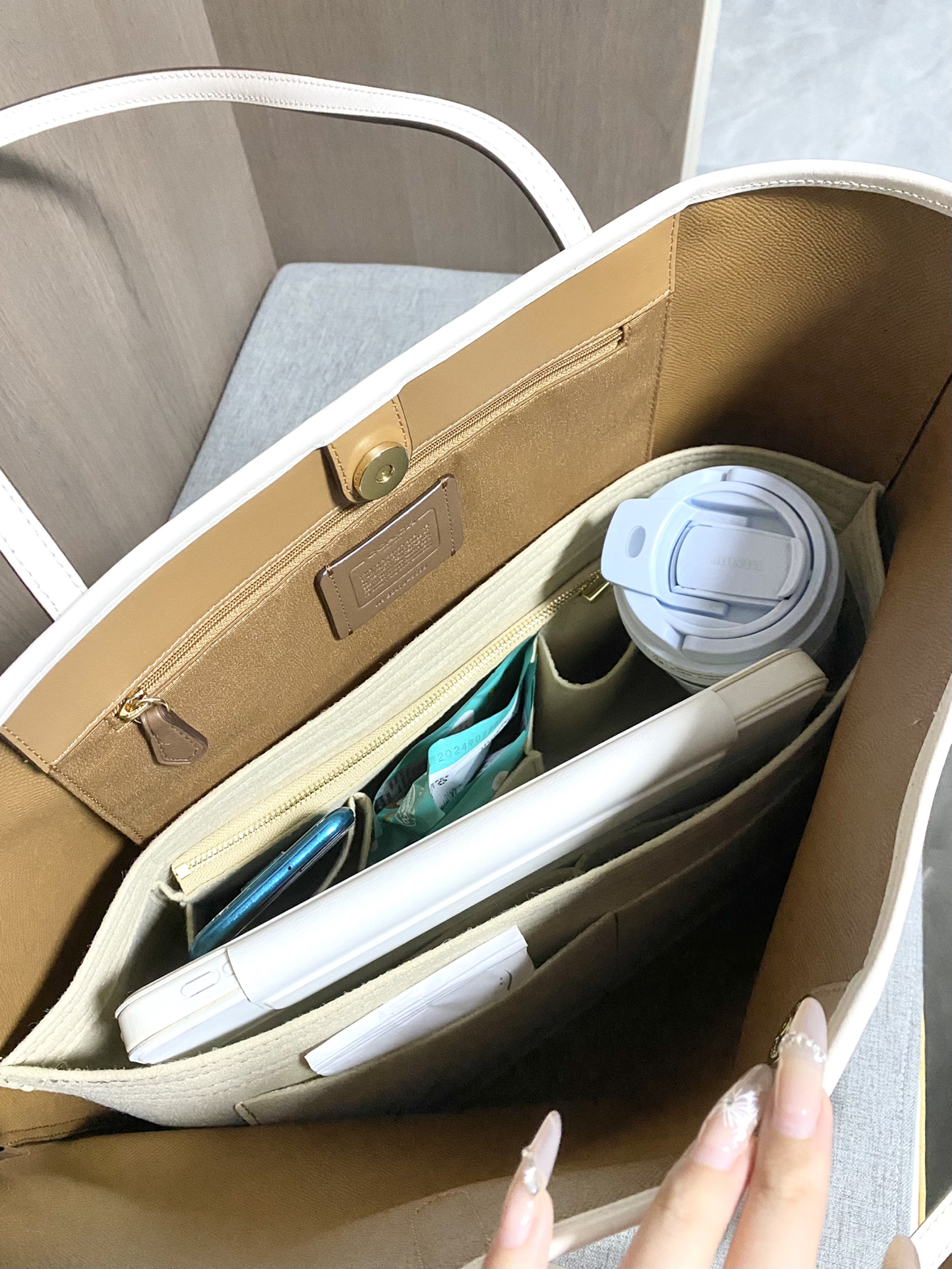 是近期背的最频繁的包包了~ 就是这个包包太软了!!很容易塌底 视觉上面太丑了~ 朋友推荐买的内胆 包包就硬挺多了 而且里面隔层很多 装的什么东西 都一目了然 再也不用担心找不到东西了‼️